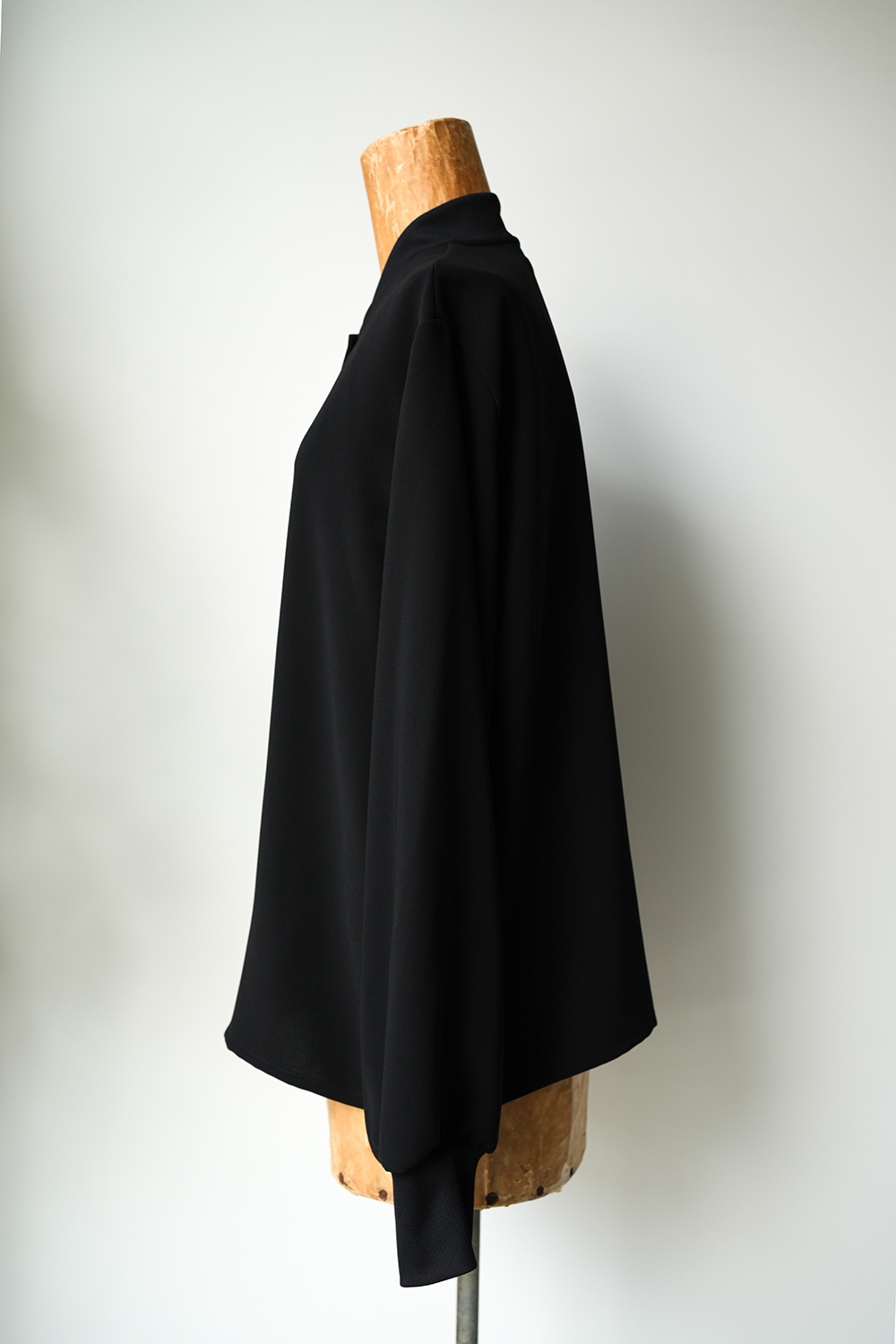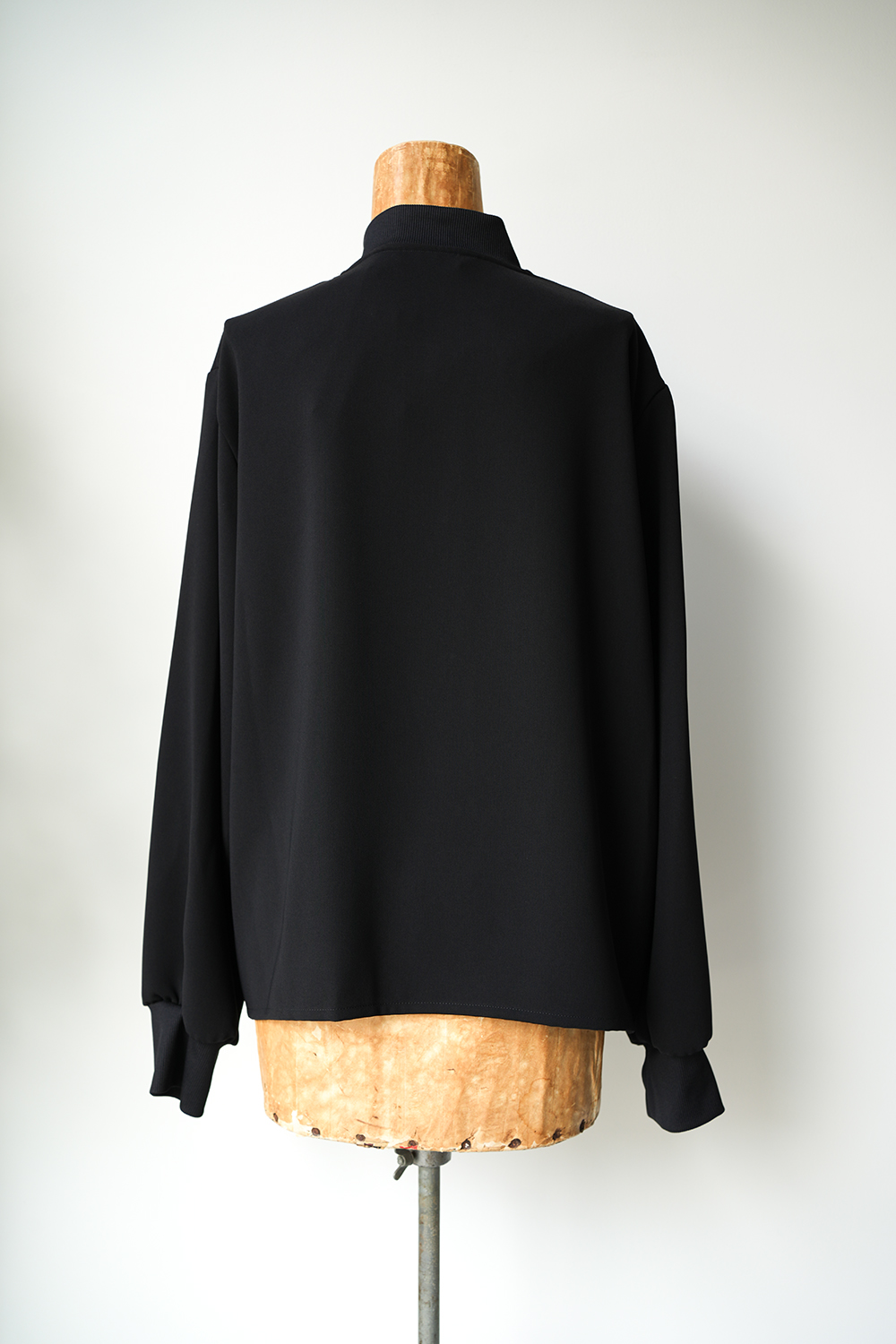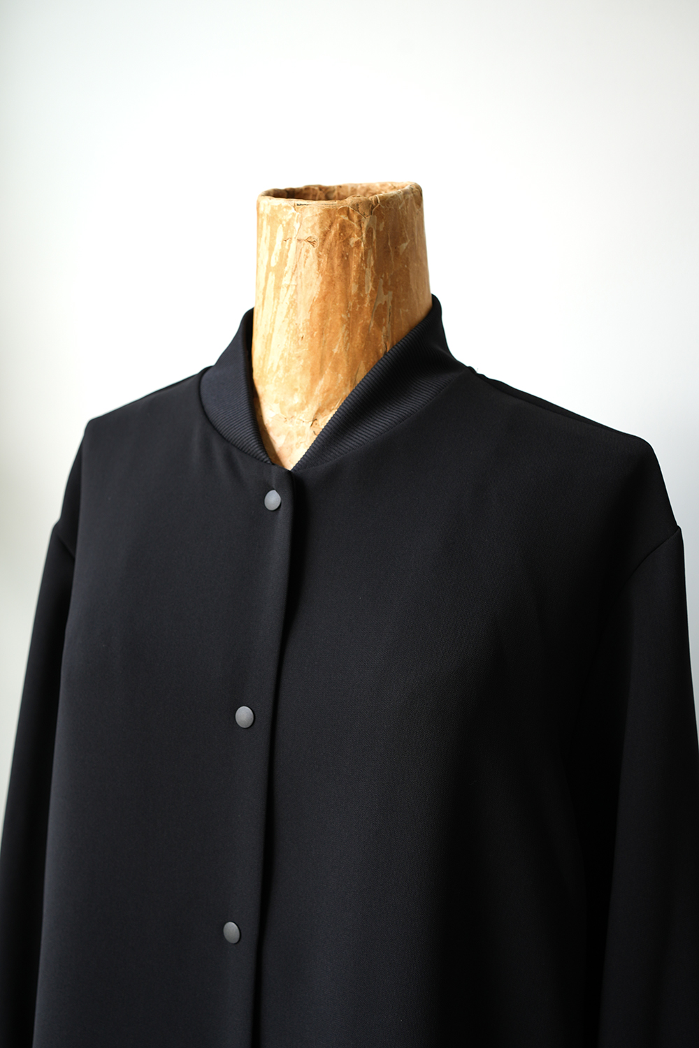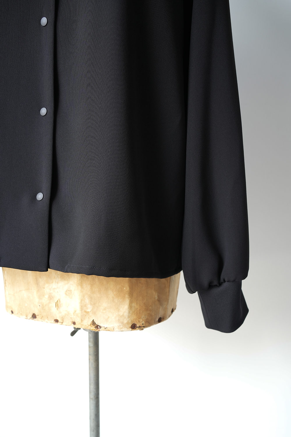 ポリエステル素材、シャツほどの厚みの生地で仕立てたブルゾンデザインのライトアウターです。