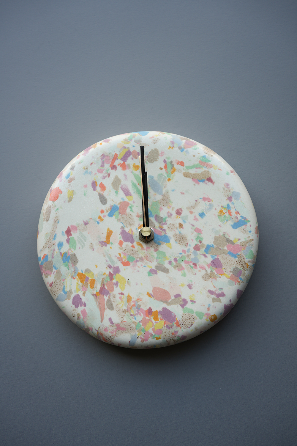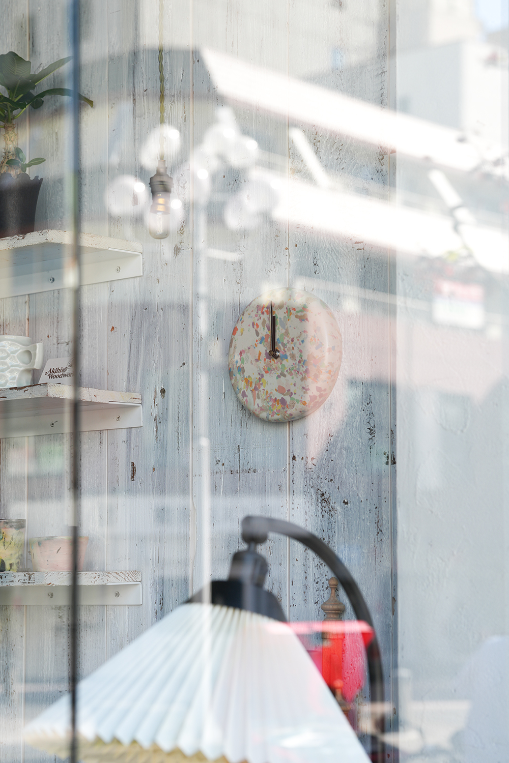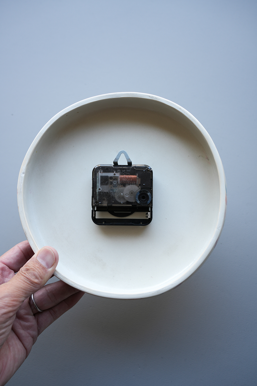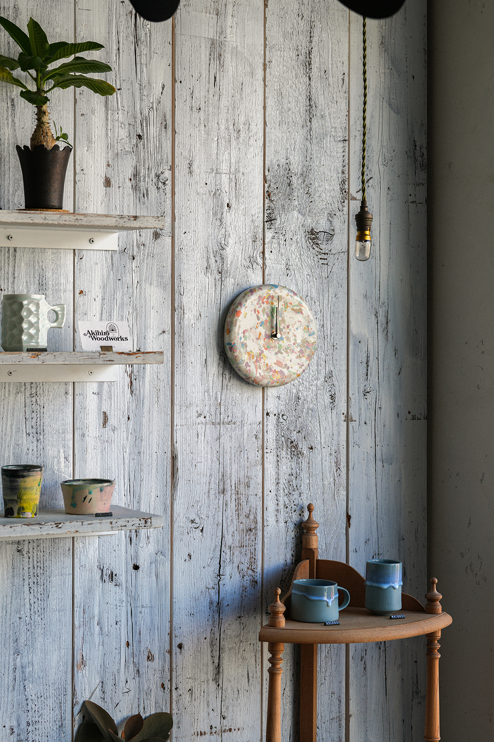 丸みのあるもっちりしたフォルムの掛け時計。竹村さんらしい釉薬の色彩美しい数字文字のないデザイン。ムーブメントクウォーツ・単三電池(付属いたしません、ご用意ください)