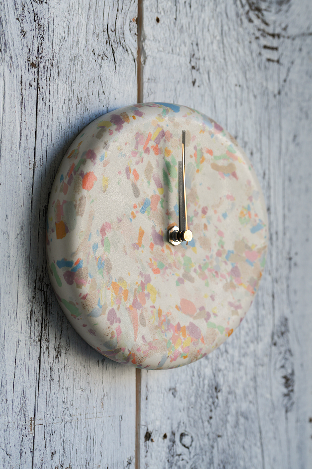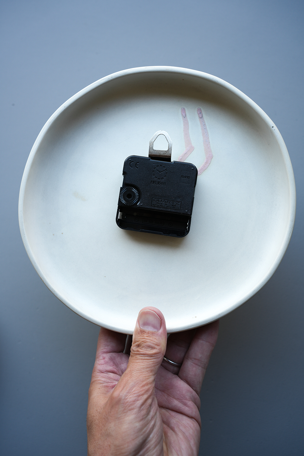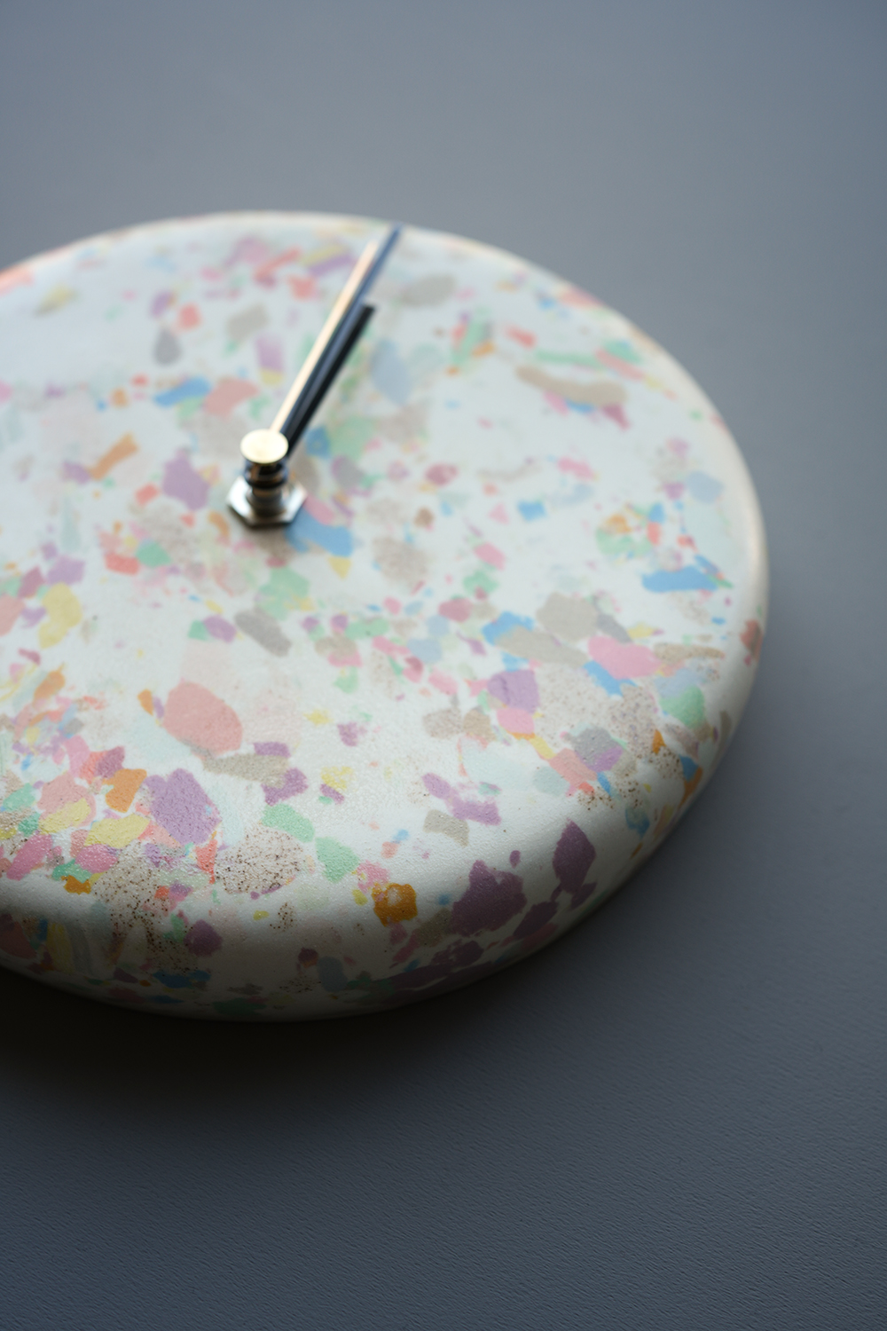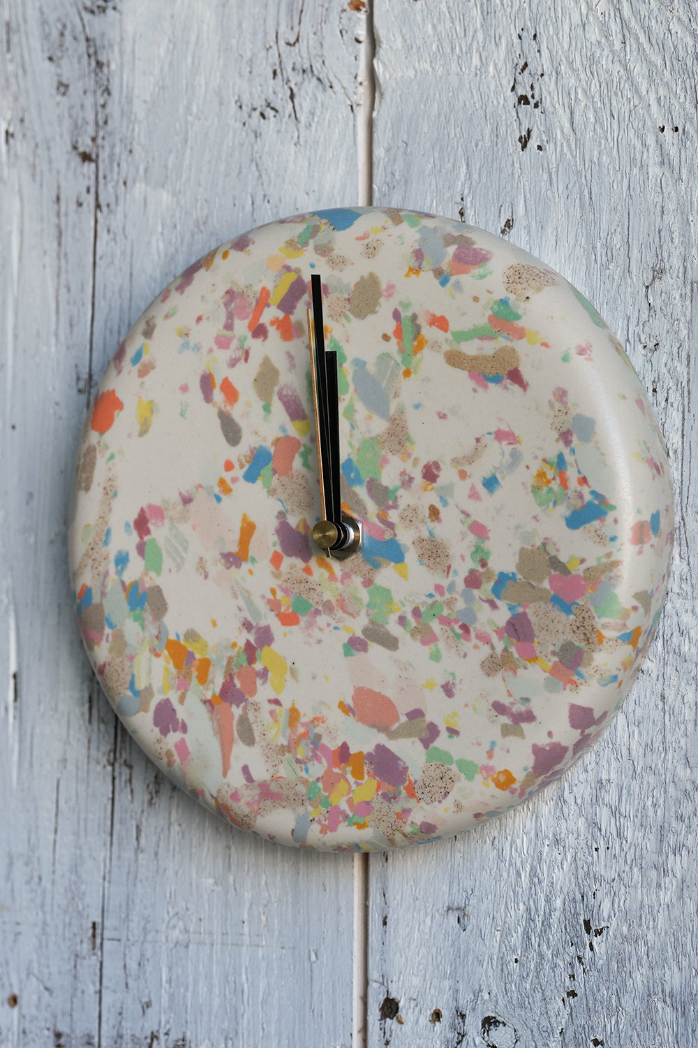 丸みのあるもっちりしたフォルムの掛け時計。竹村さんらしい釉薬の色彩美しい数字文字のないデザイン。ムーブメントクウォーツ・単三電池(付属いたしません、ご用意ください)