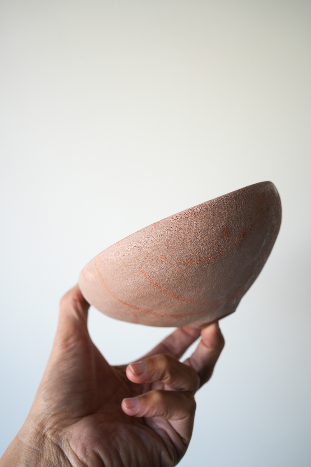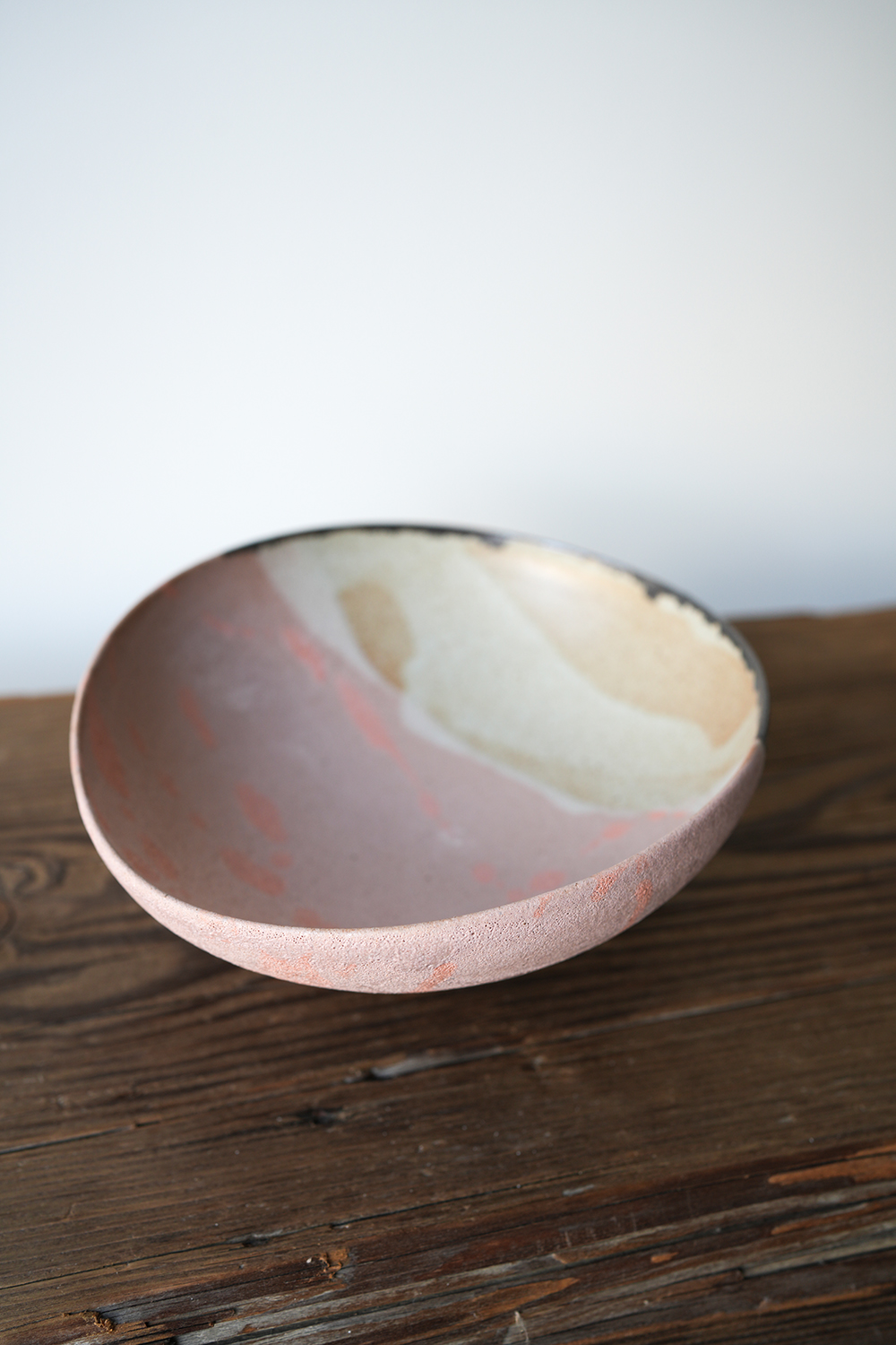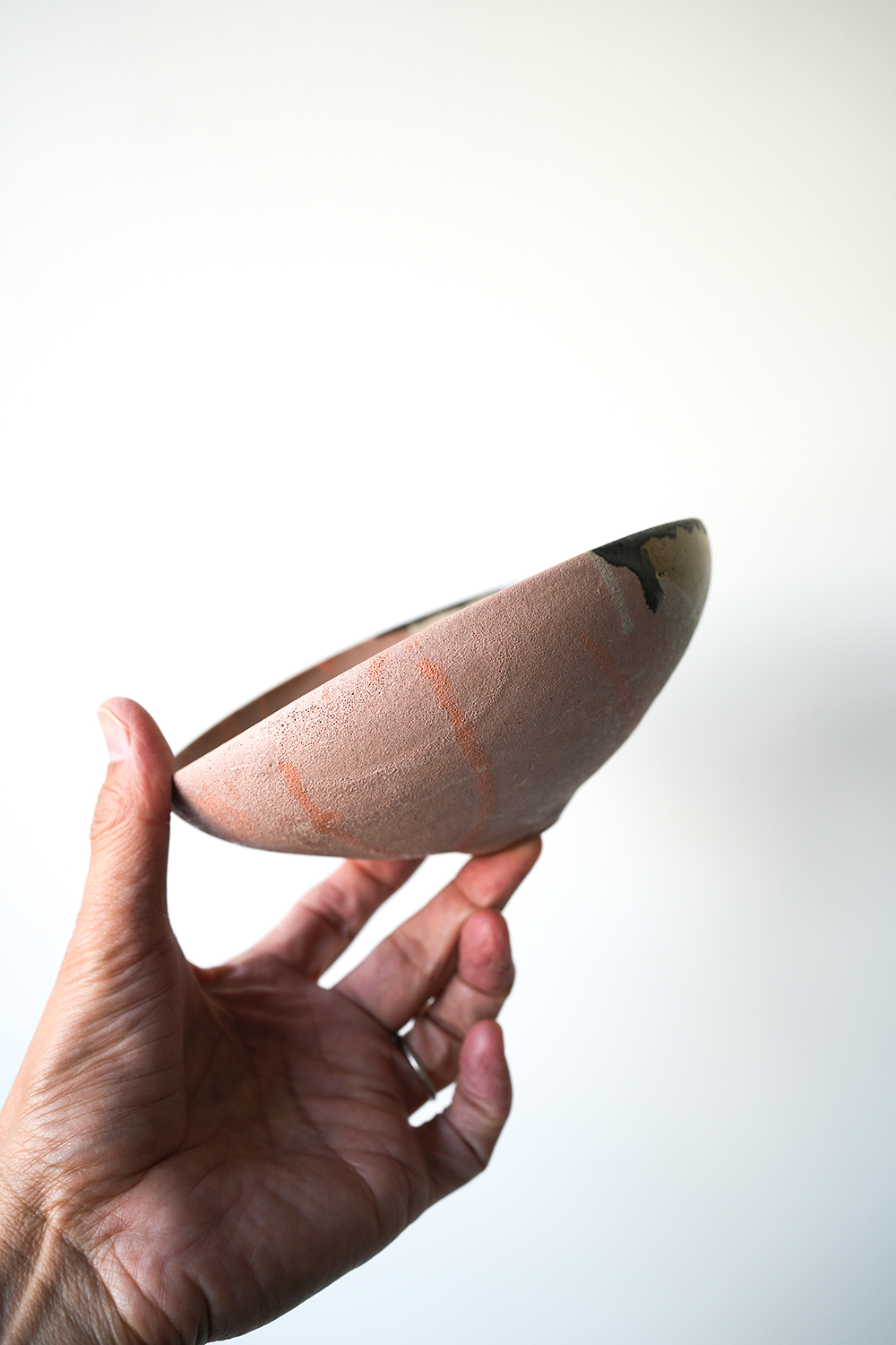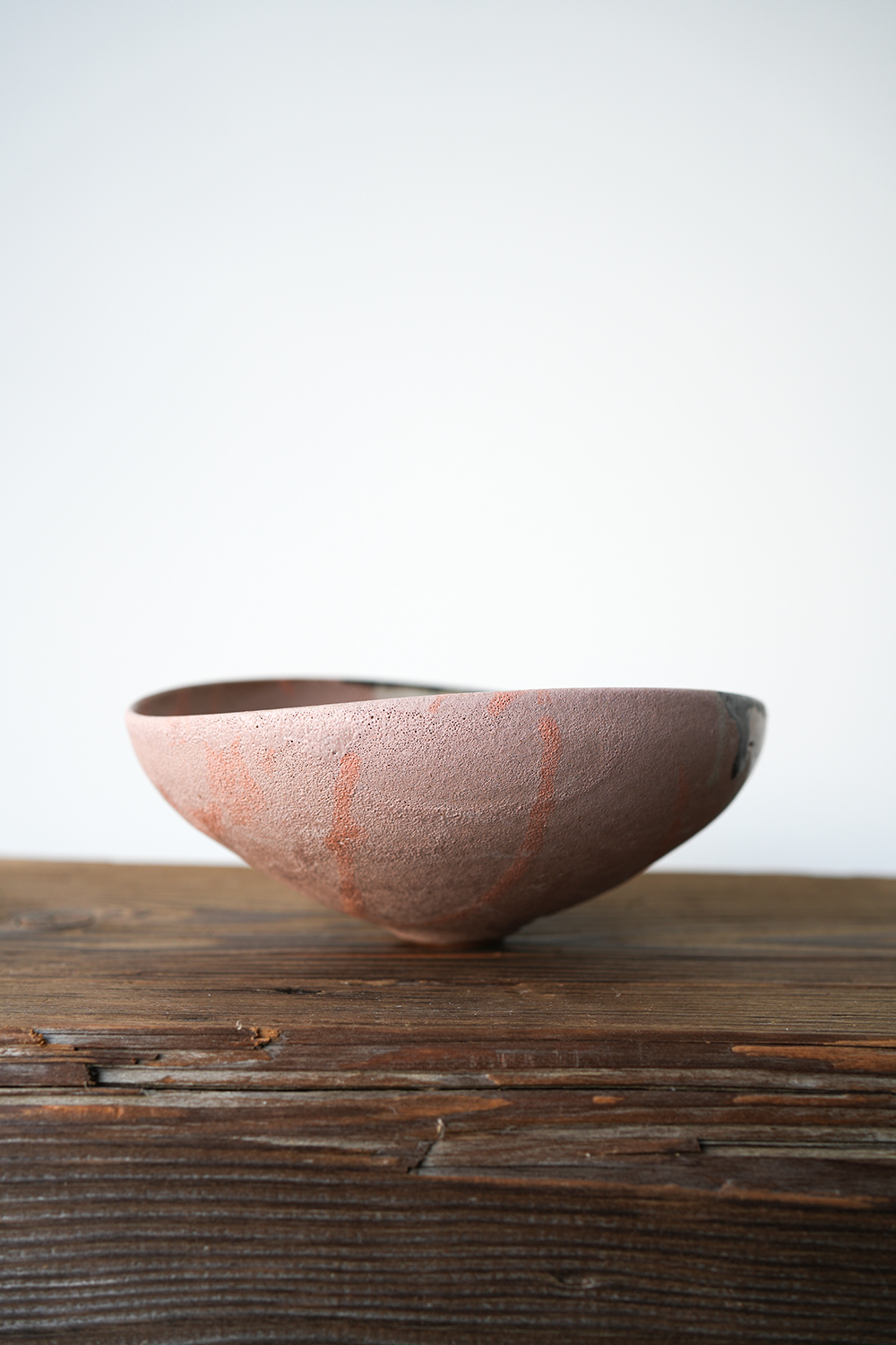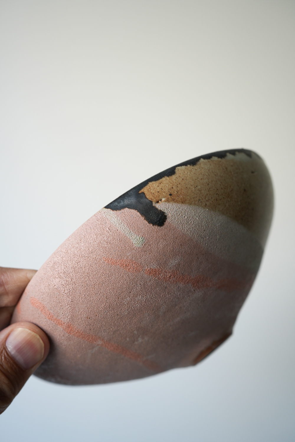 高台から滑らかに立ち上がり穏やかにたわむ碗と皿、お料理を包む様に盛り付けられる器です。フォルムと釉薬の美しさから空間を飾るアートピースとしても楽しめる作品です。