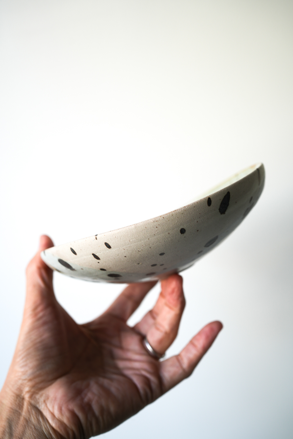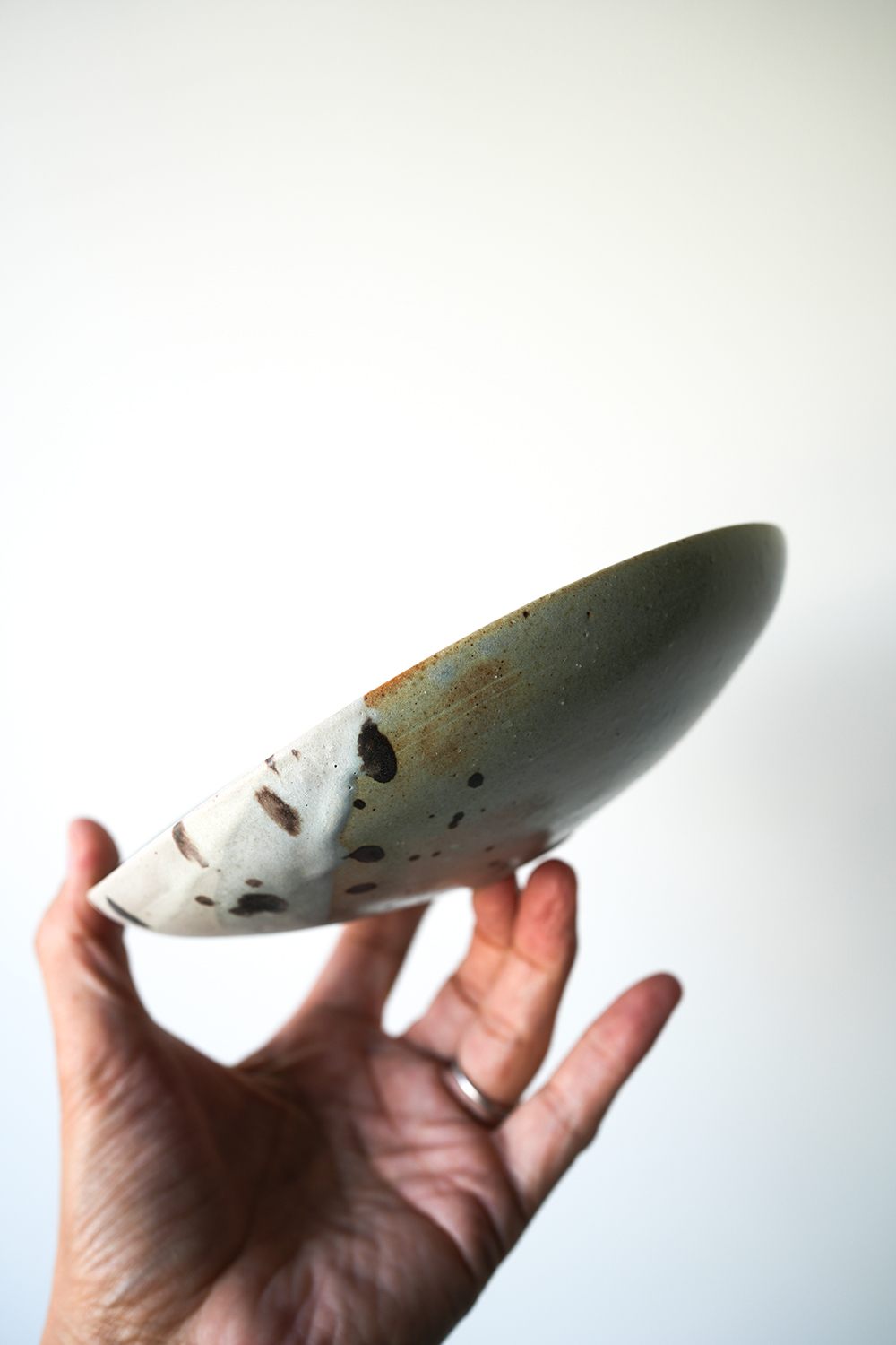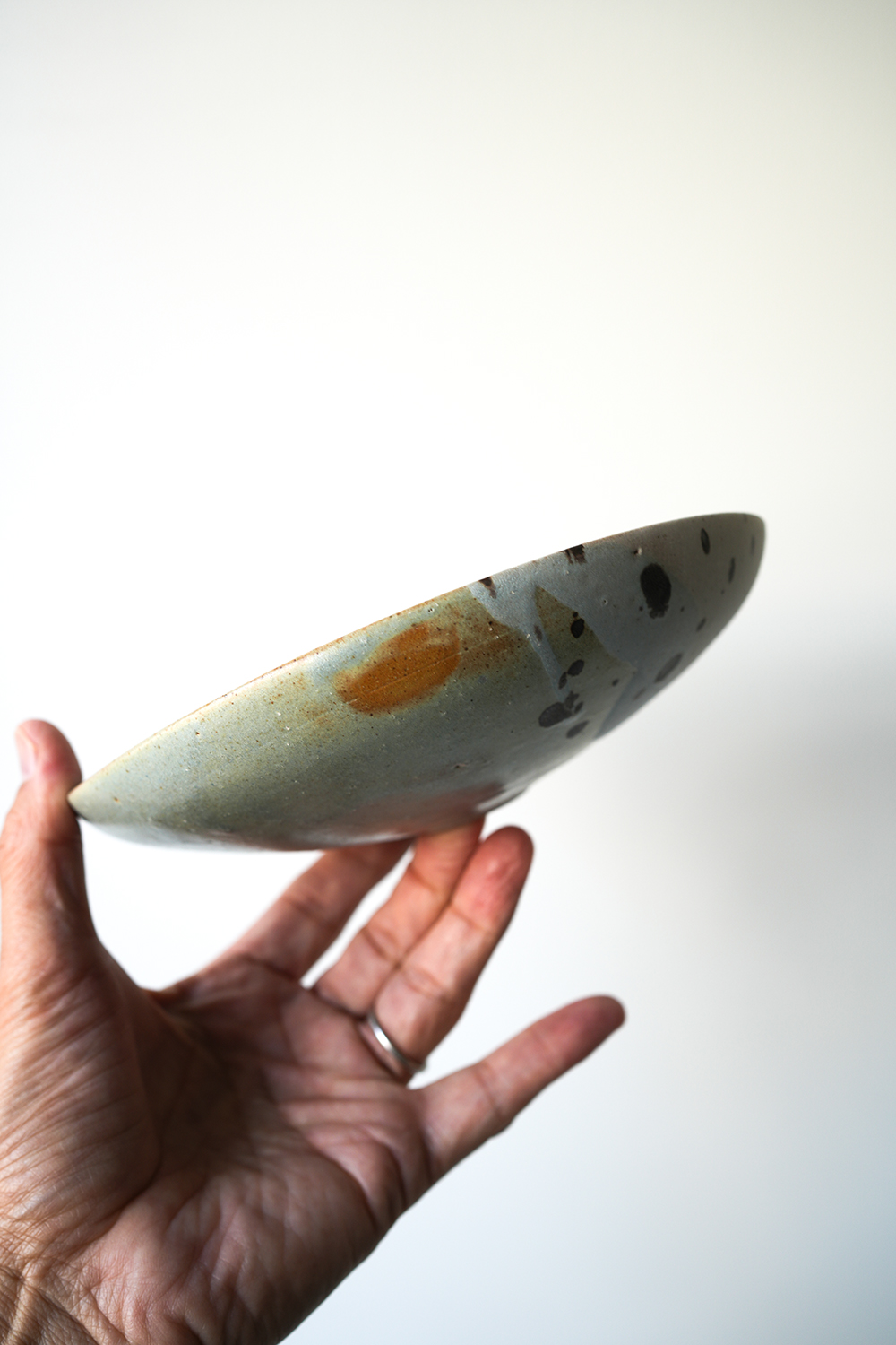 高台から滑らかに立ち上がり穏やかにたわむ碗と皿、お料理を包む様に盛り付けられる器です。フォルムと釉薬の美しさから空間を飾るアートピースとしても楽しめる作品です。