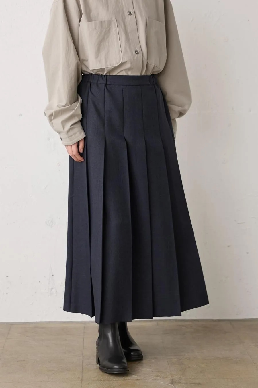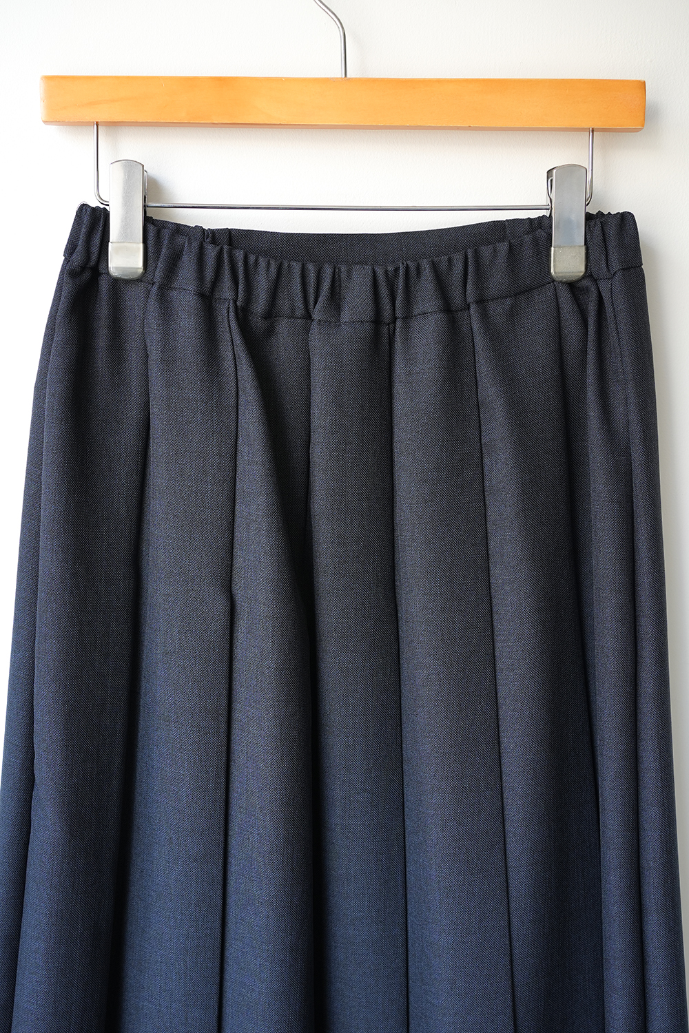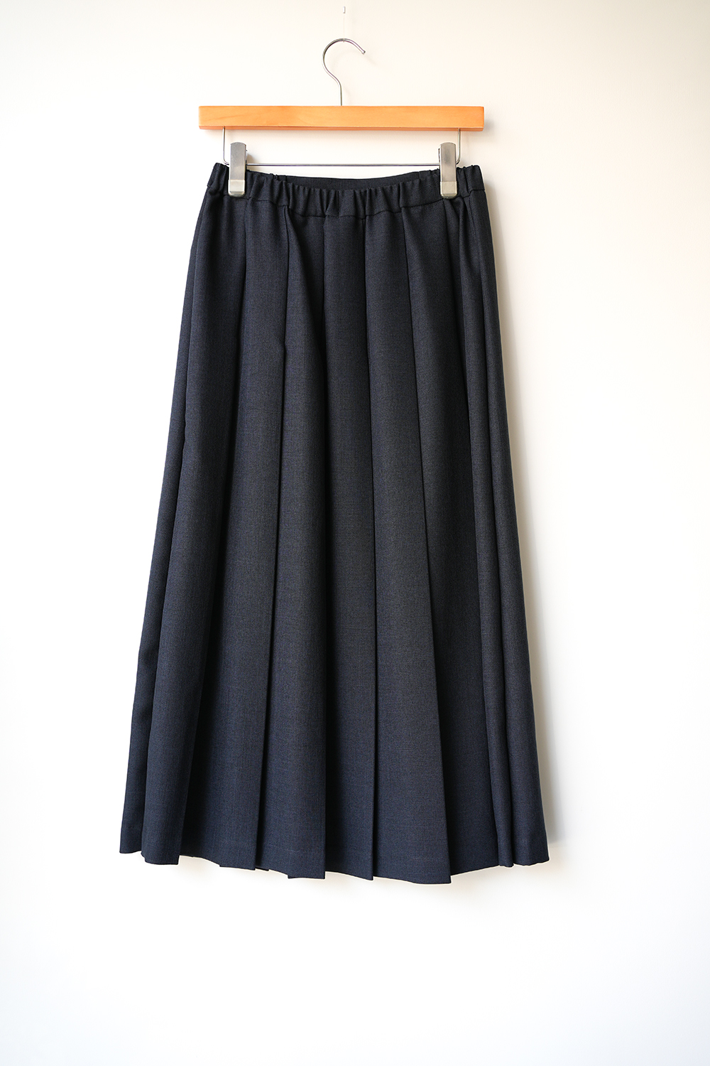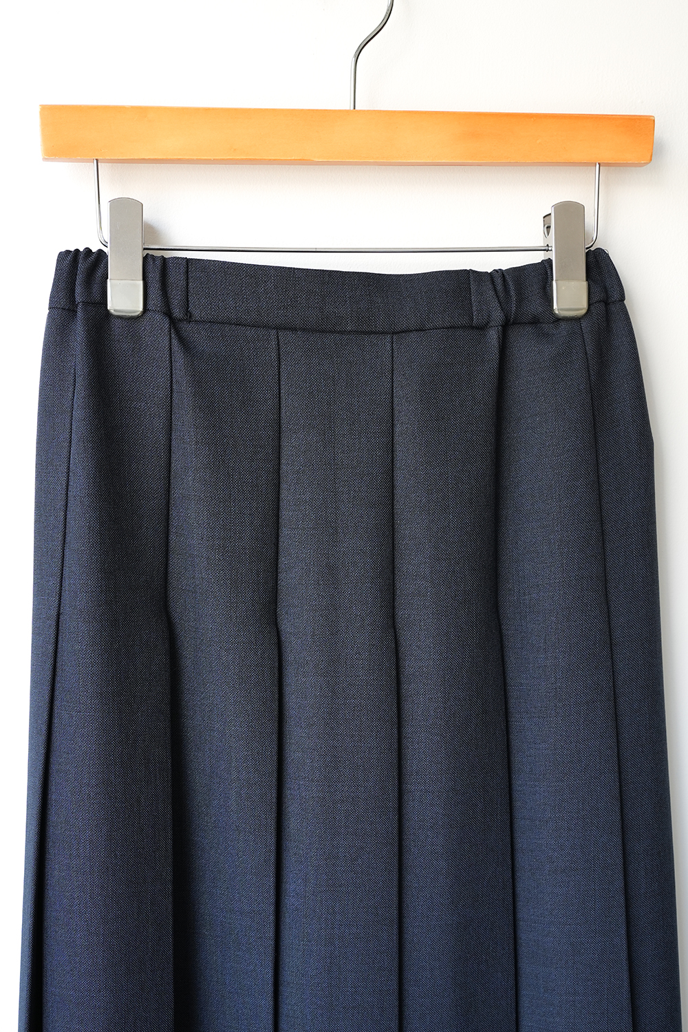ウールツイードのような上質な表情を持つポリエステル素材を使用したプリーツスカート。程よい厚みとハリ感がありながらも、軽やかで美しい落ち感が特徴の素材です。動くたびに生まれる自然なドレープが女性らしさを引き立て、上品な印象に仕上げてくれます。デザインは片ひだのプリーツ仕様で、ほどよいボリューム感とすっきりとしたシルエットを両立。トップスをインしてもアウトしてもバランスよくまとまり、幅広いスタイリングに対応します。ウエスト後ろ部分はゴムの為、楽に着用いただけます。
