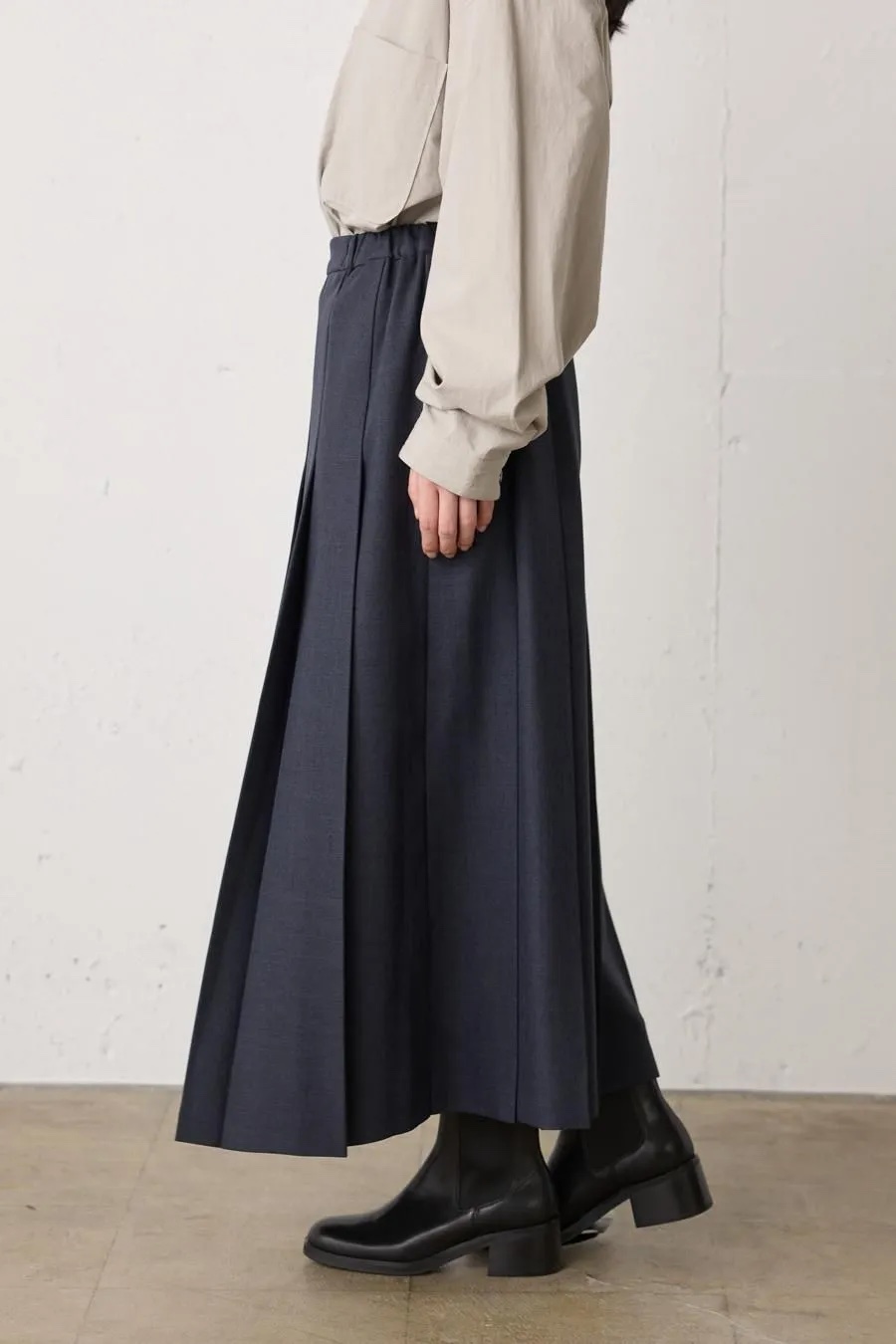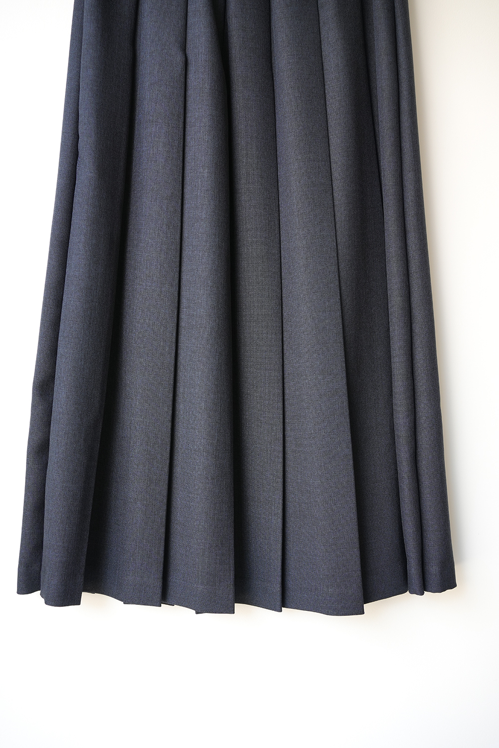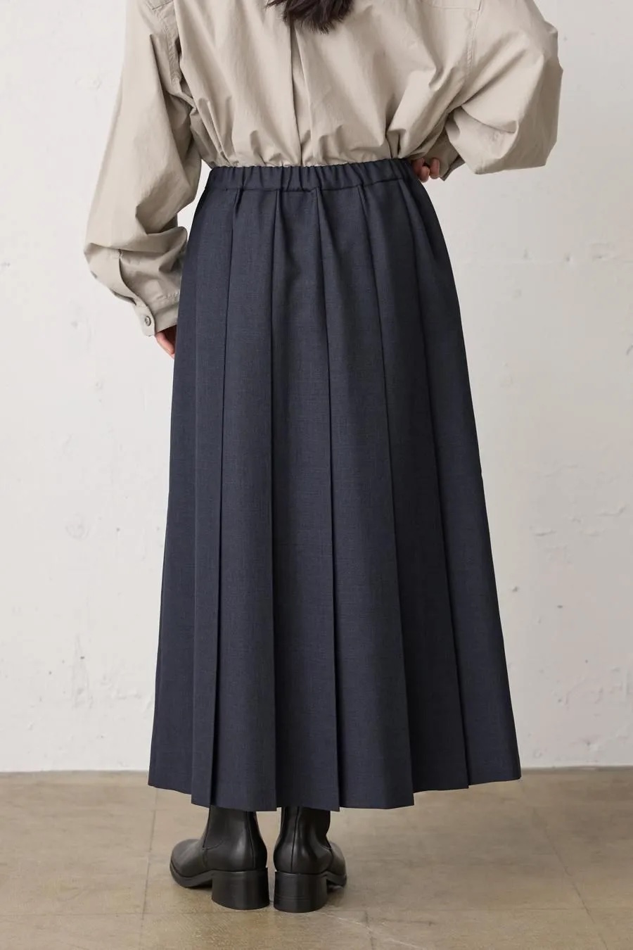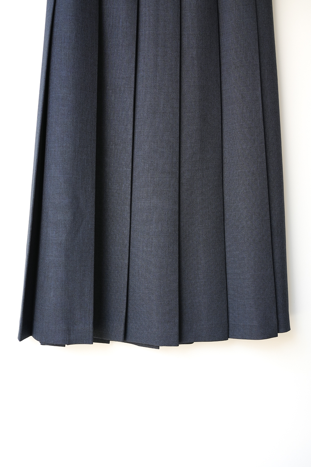 ウールツイードのような上質な表情を持つポリエステル素材を使用したプリーツスカート。程よい厚みとハリ感がありながらも、軽やかで美しい落ち感が特徴の素材です。動くたびに生まれる自然なドレープが女性らしさを引き立て、上品な印象に仕上げてくれます。デザインは片ひだのプリーツ仕様で、ほどよいボリューム感とすっきりとしたシルエットを両立。トップスをインしてもアウトしてもバランスよくまとまり、幅広いスタイリングに対応します。ウエスト後ろ部分はゴムの為、楽に着用いただけます。