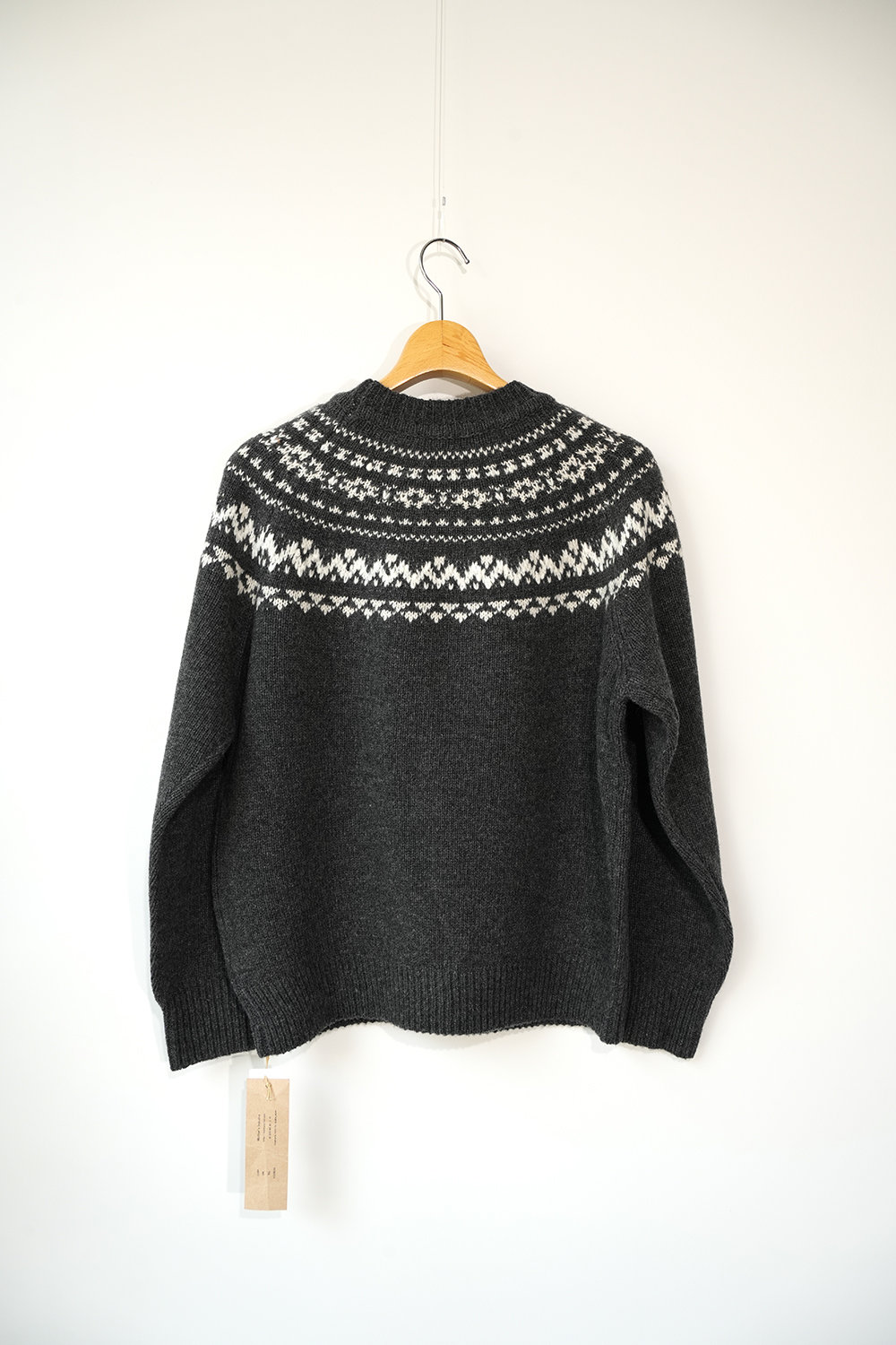 手編み風のざっくりとした風合いが魅力のノルディックニット。クラシカルな印象のノルディック柄を、あえて単色で編み立てることで、落ち着いた大人の雰囲気に仕上げました。一部に特殊な糸を使用することで、凹凸感のある表情豊かな編地に。シンプルながら奥行きのあるデザインで、スタイリングにさりげない存在感を与えてくれます。1枚で主役になるニットは、冬のコーディネートに温かみと個性をプラスしてくれるアイテムです。