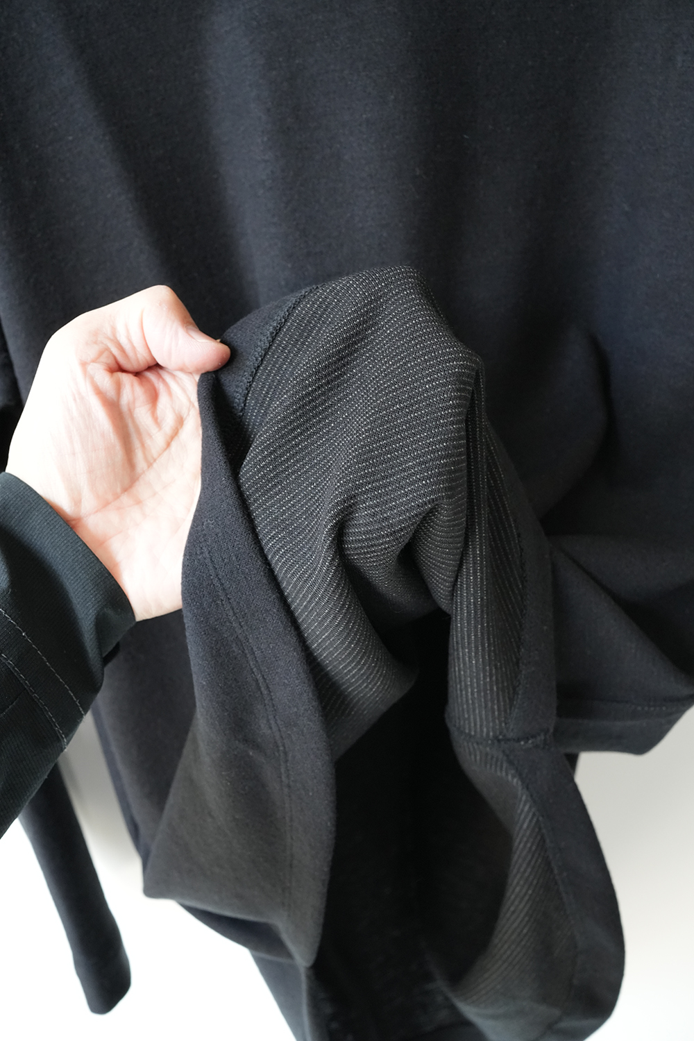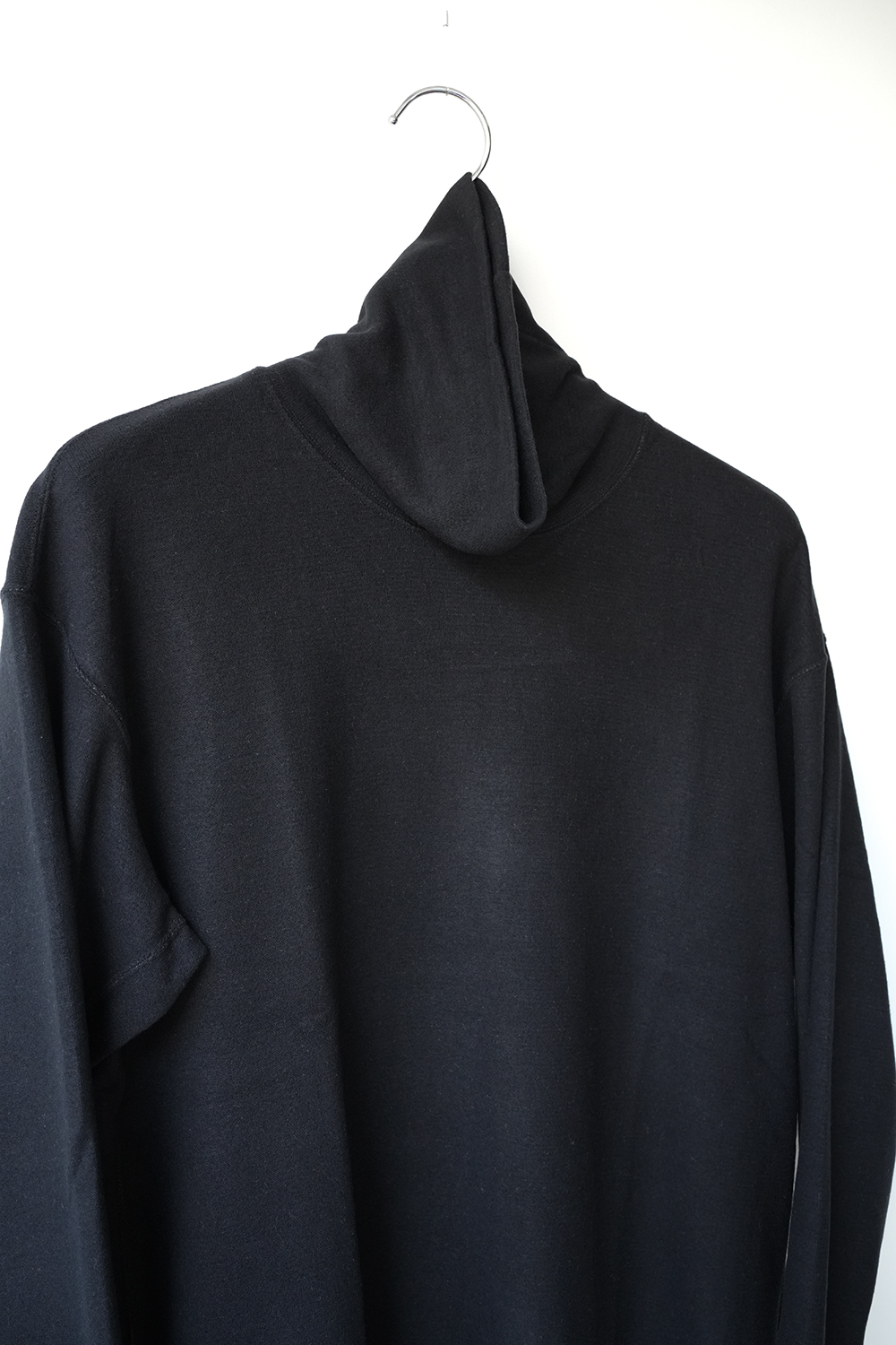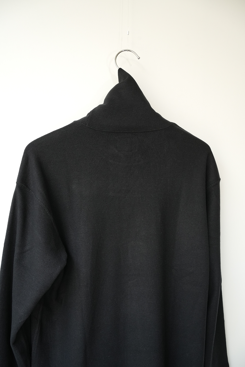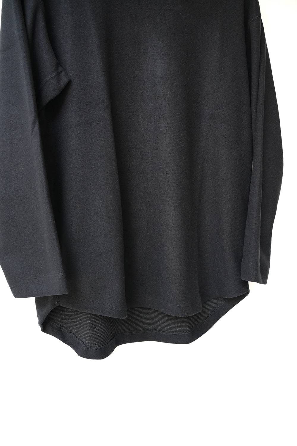 三菱レイヨン(株)の機能素材プレミアウォーム®︎を用いたタートルネックのロングスリーブTシャツ。肌触りの優れたマイクロ抗ピルアクリルを用いたストレッチジャージーは湿気や汗を熱に変えて保温する機能を持ち、温かさは保ちつつも余分な湿気は逃すので、サラッとした快適さが保たれます。また表面を起毛することで柔らかな肌触りに仕上げています。インナー用途がメインではありますが、タイトフィットにはしていないので一枚でも着用可能。数シーズンマイナーチェンジを繰り返しながらも継続展開されているCURLY&Co.の定番アイテム、タートルネックモデル。
