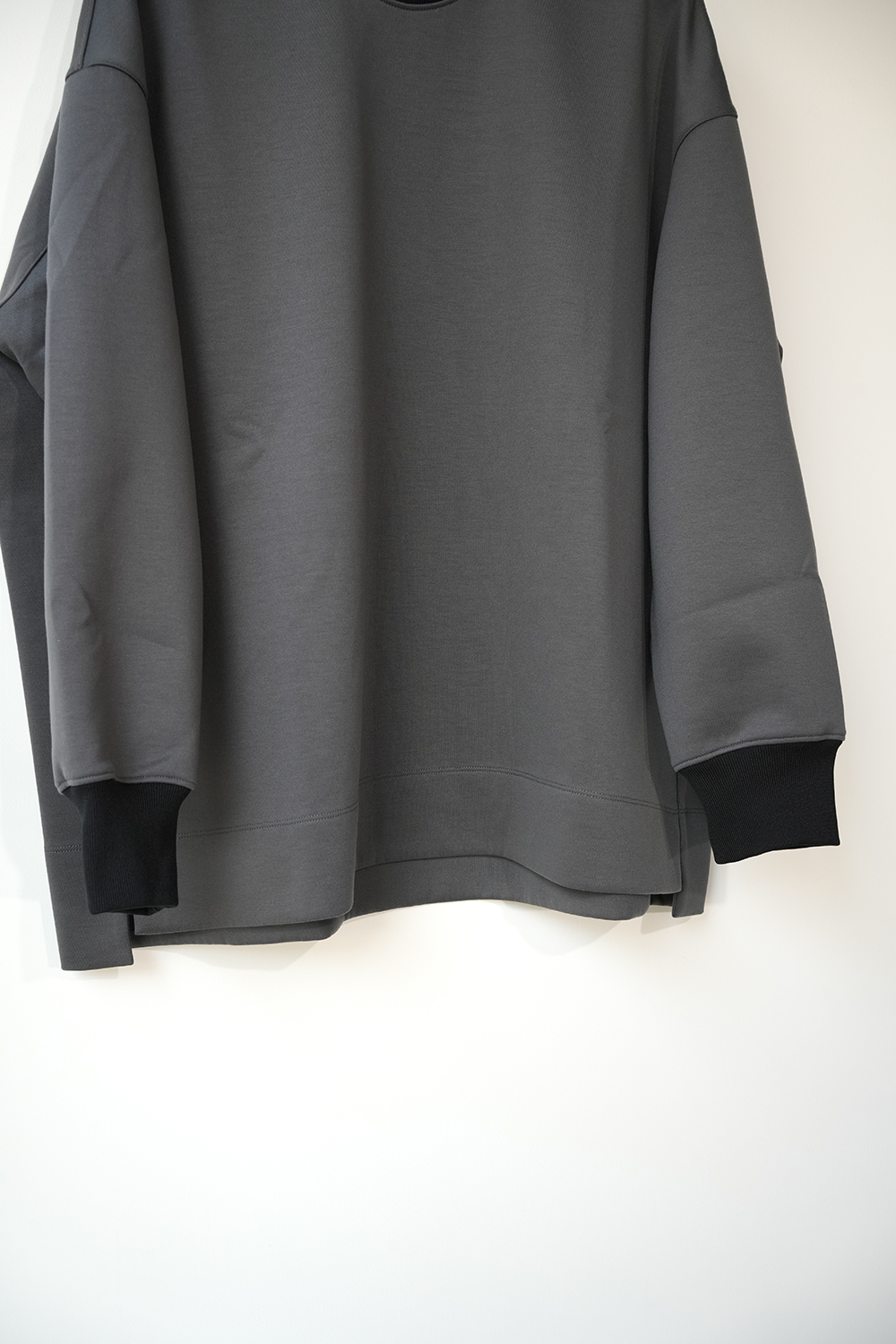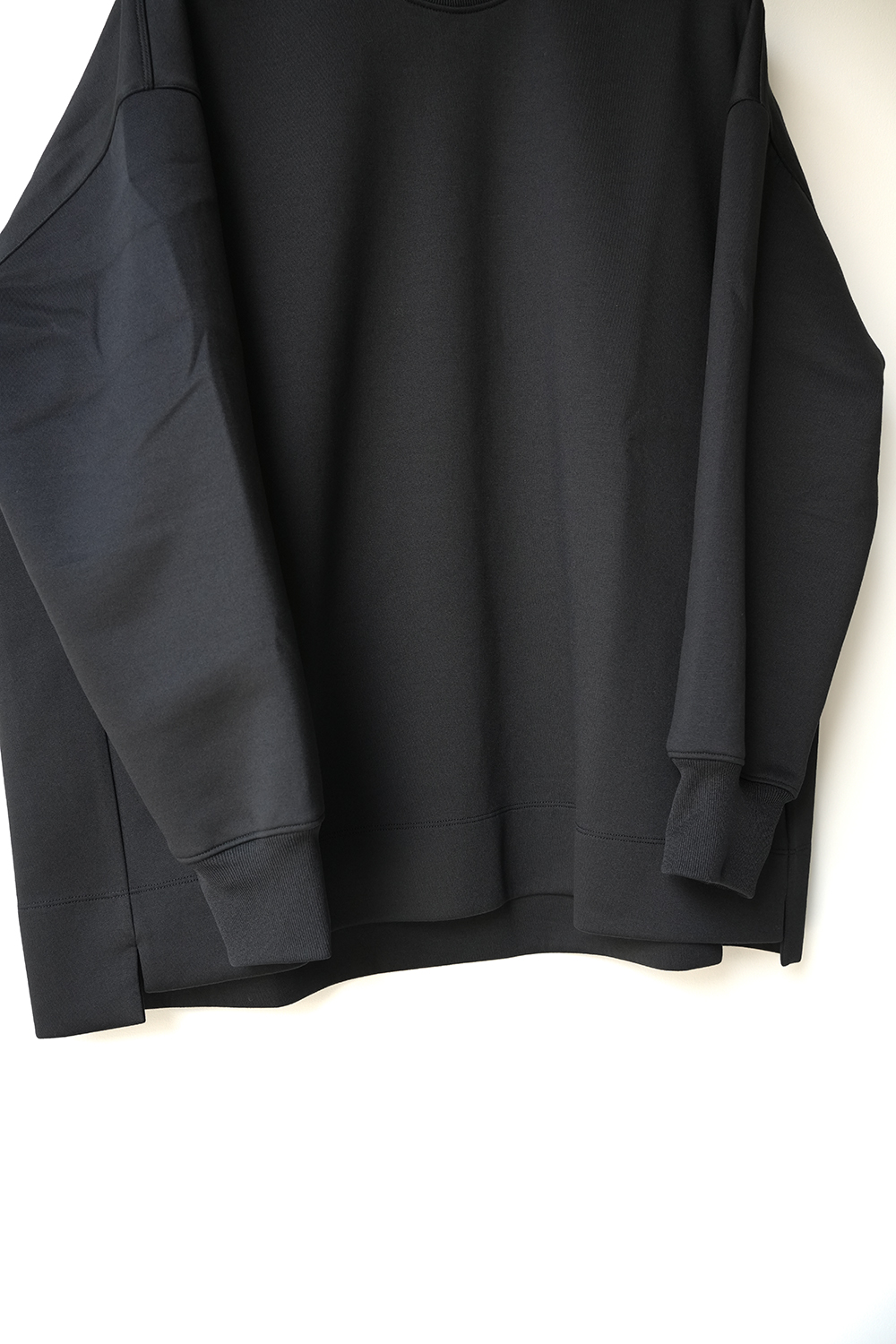 ポリエステル糸でしっかりと編んだ厚みがあり軽量・伸縮性抜群のダンボールニット。スウェットに近しい着方ができます。ポリウレタン糸を引き揃えている為適度な立体感を生むしっかりとした生地感です。オーバーサイズシルエット、襟・袖リブ仕様のクルーネック。製品洗い・タンブラー乾燥済み、ご家庭洗いできます。