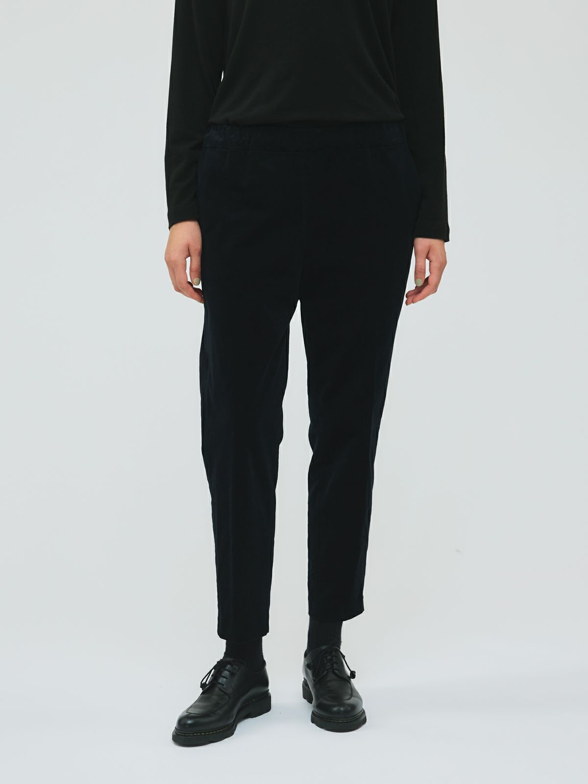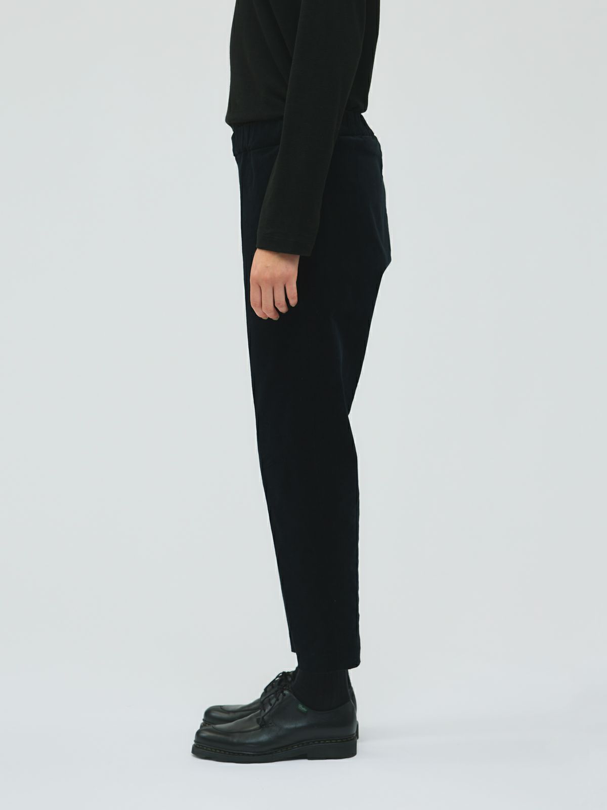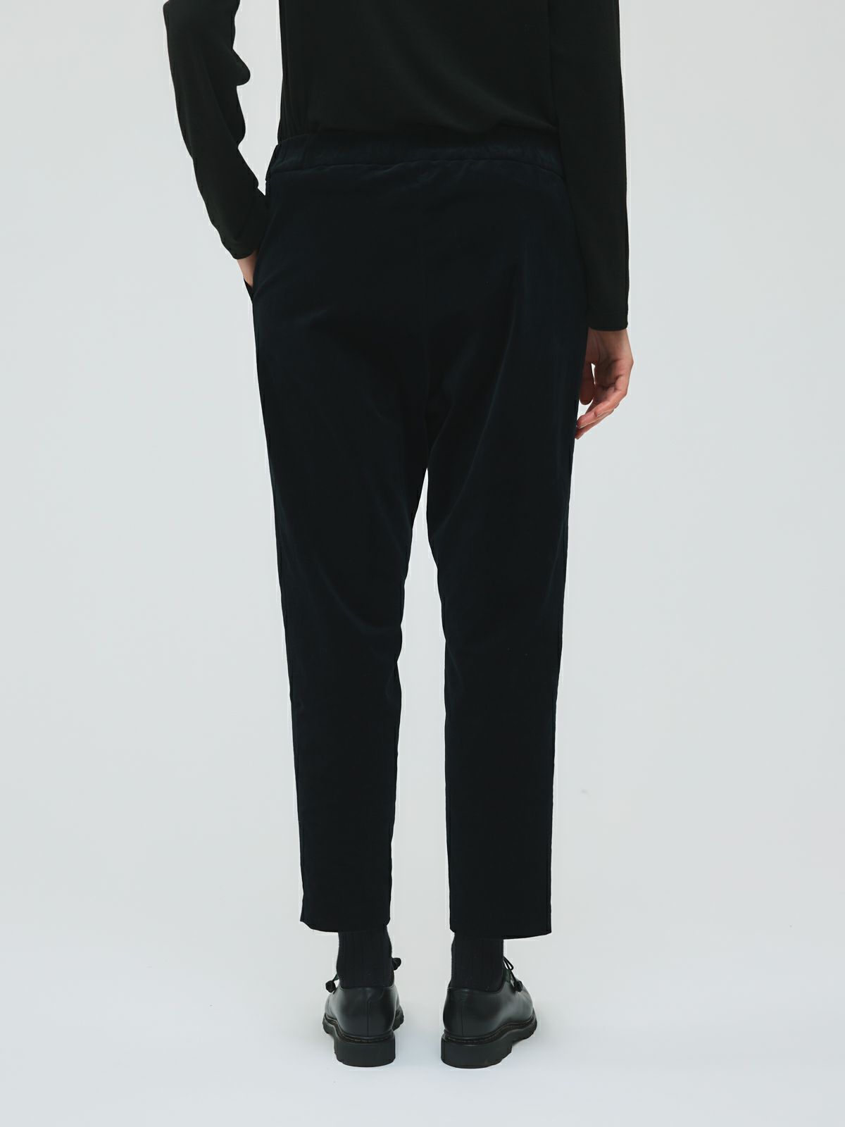 冬の定番生地でもあるコーデュロイ素材を使用したコーデュロイセンタープレスパンツ。人気の細コーデュロイでスッキリとした大人のカジュアルを演出したスリムな1枚。暖かな生地感とウエストゴムを使用したリラックス感のあるデザインに仕上げました。靴下がちらりと見える丈感で足元のお洒落を楽しめるのもポイント。レイヤードアイテムとしてもコーディネートができるmizuiro ind定番のパンツです。