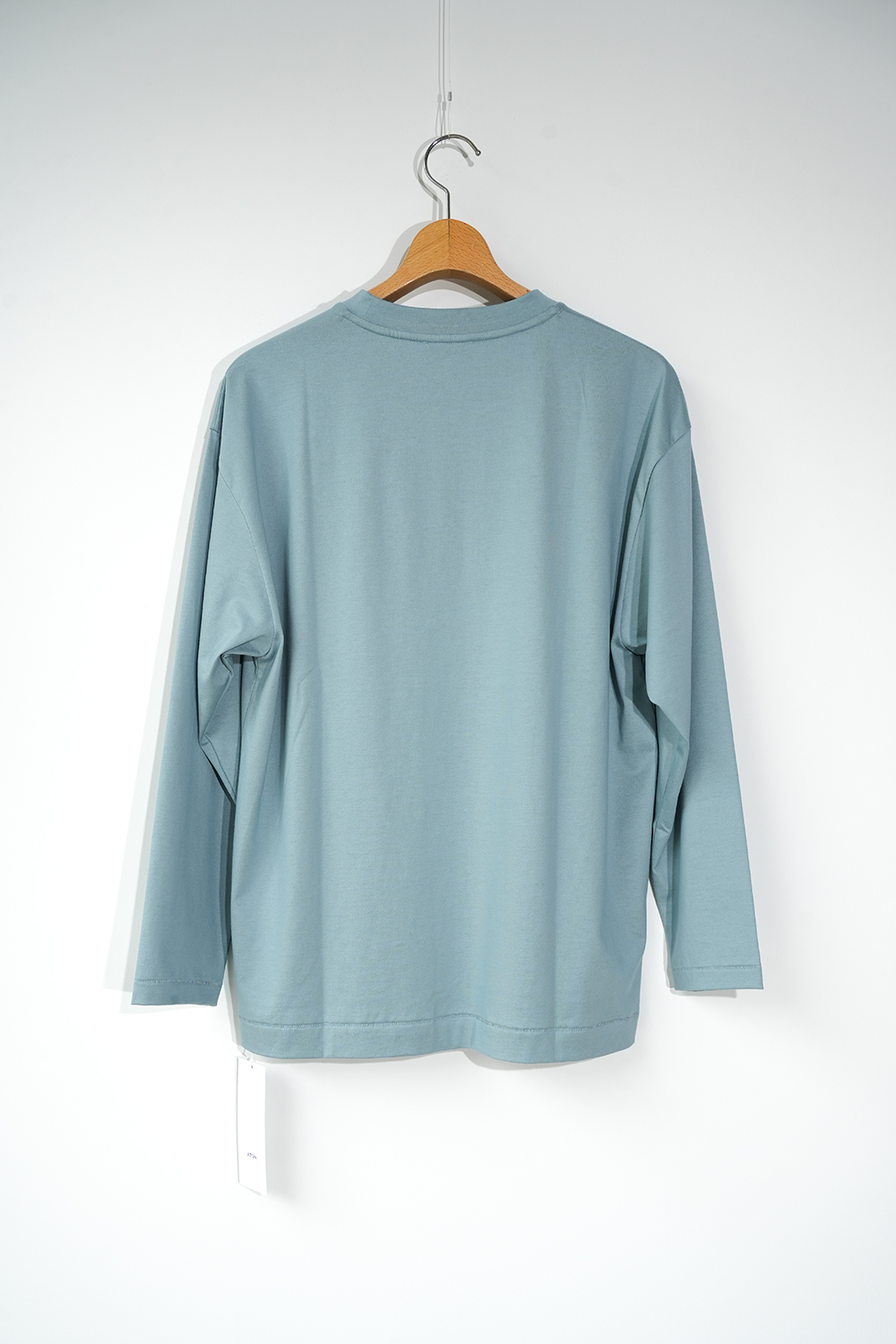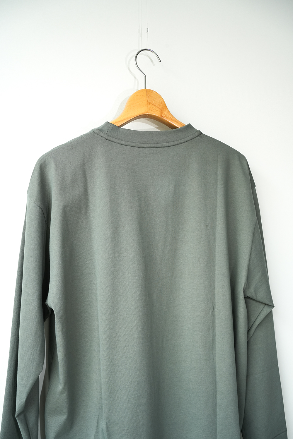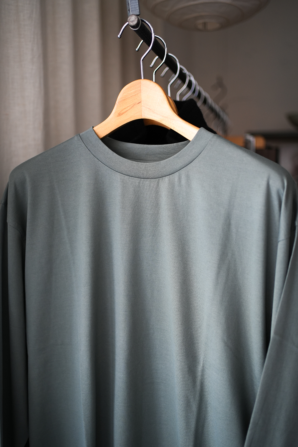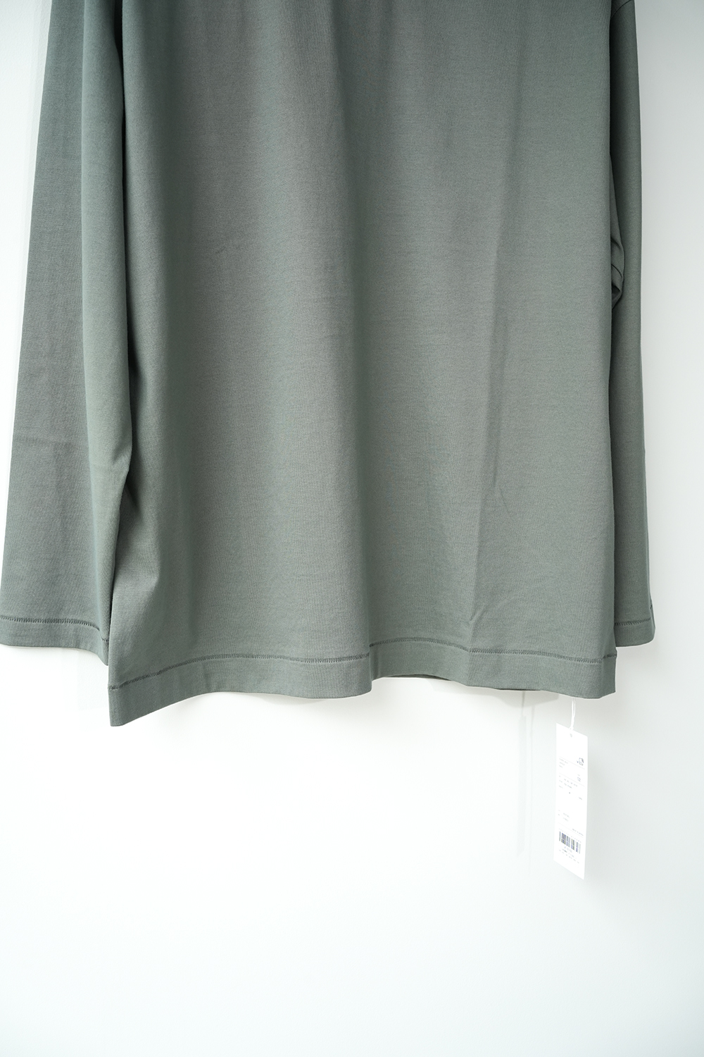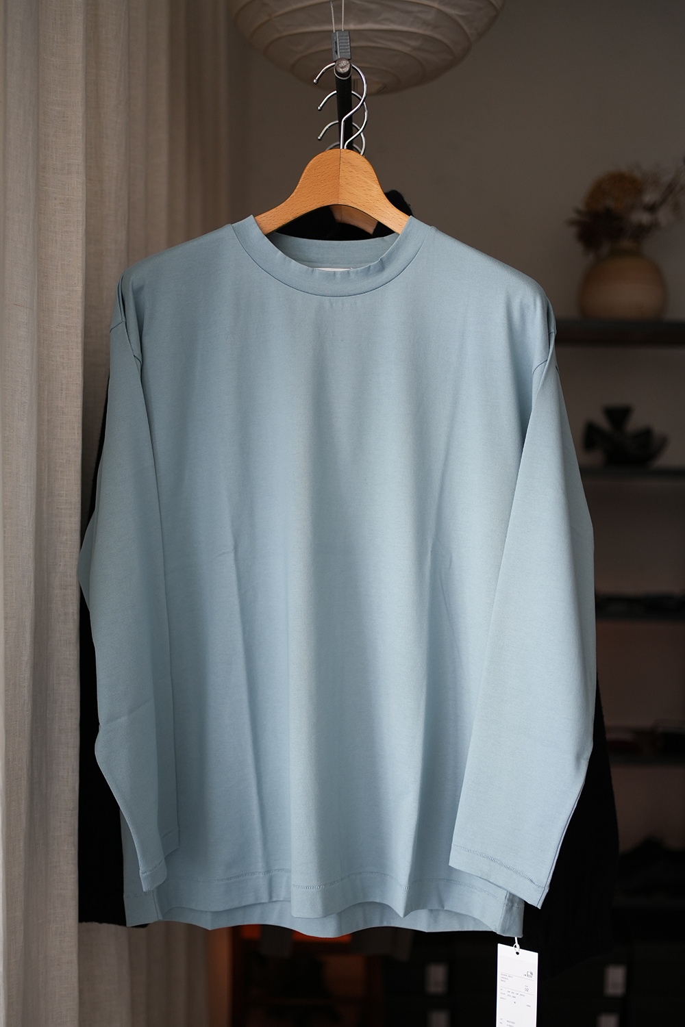 オーバーサイズが特徴のATON定番ロングスリーブTシャツ。ゆとりのあるシルエット、横幅に対し縦の比率が少し長く、モードな印象です。男性向けですが、素材に落ち感があり、女性がオーバーサイズで着用できる1着です。インドで手摘みされたSUVIN COTTONを、和歌山市のニッターの手で編まれており、双糸にすることで、光沢感としなやかさを備えたATONオリジナルのジャージー素材です。SUVIN COTTONは綿花を丁寧に手摘みしている為、油分が失われること無く、繊維に傷が付いていない為、薬剤など化学的な加工を一切せずに美しい光沢があります。