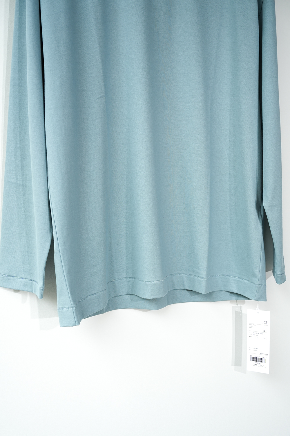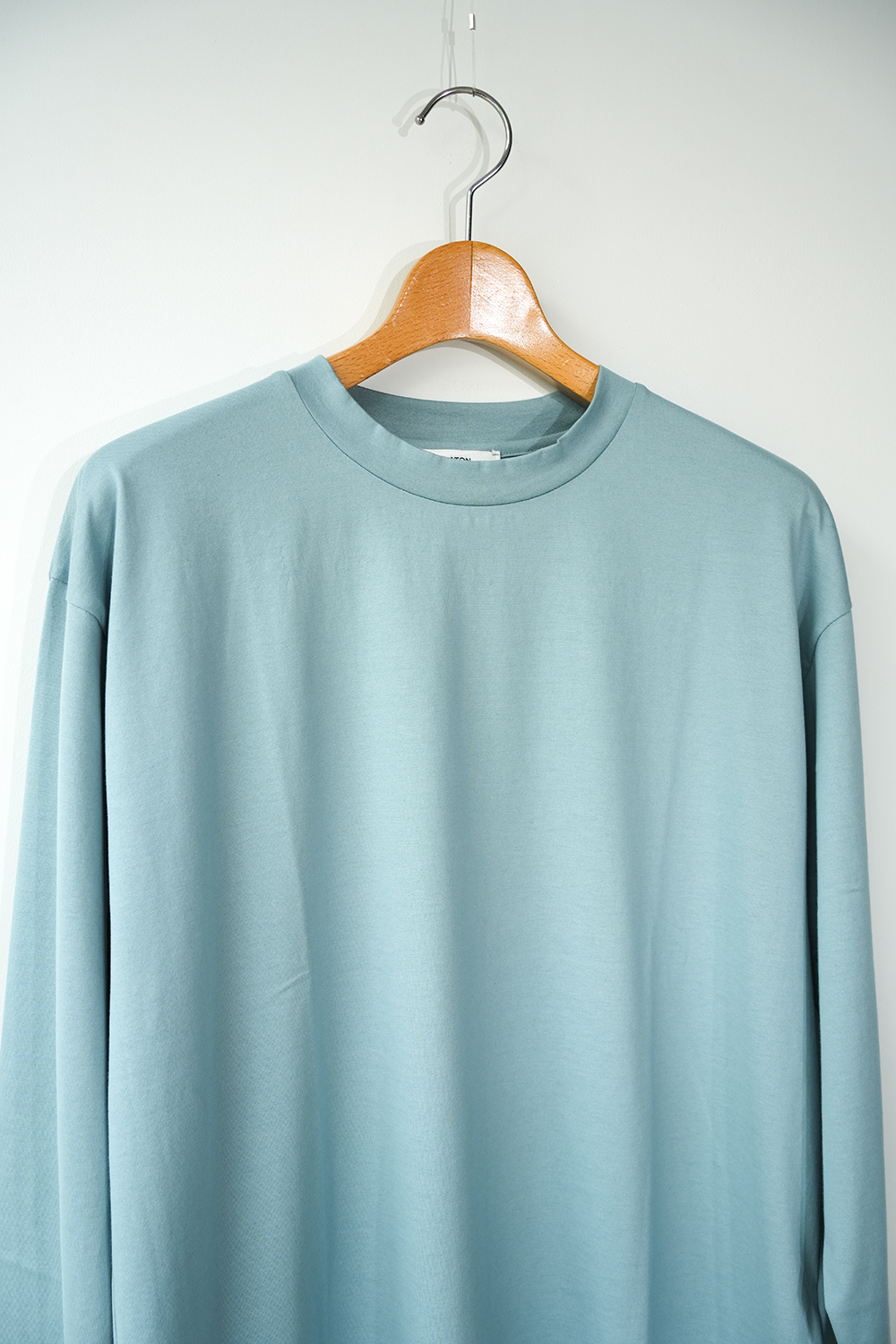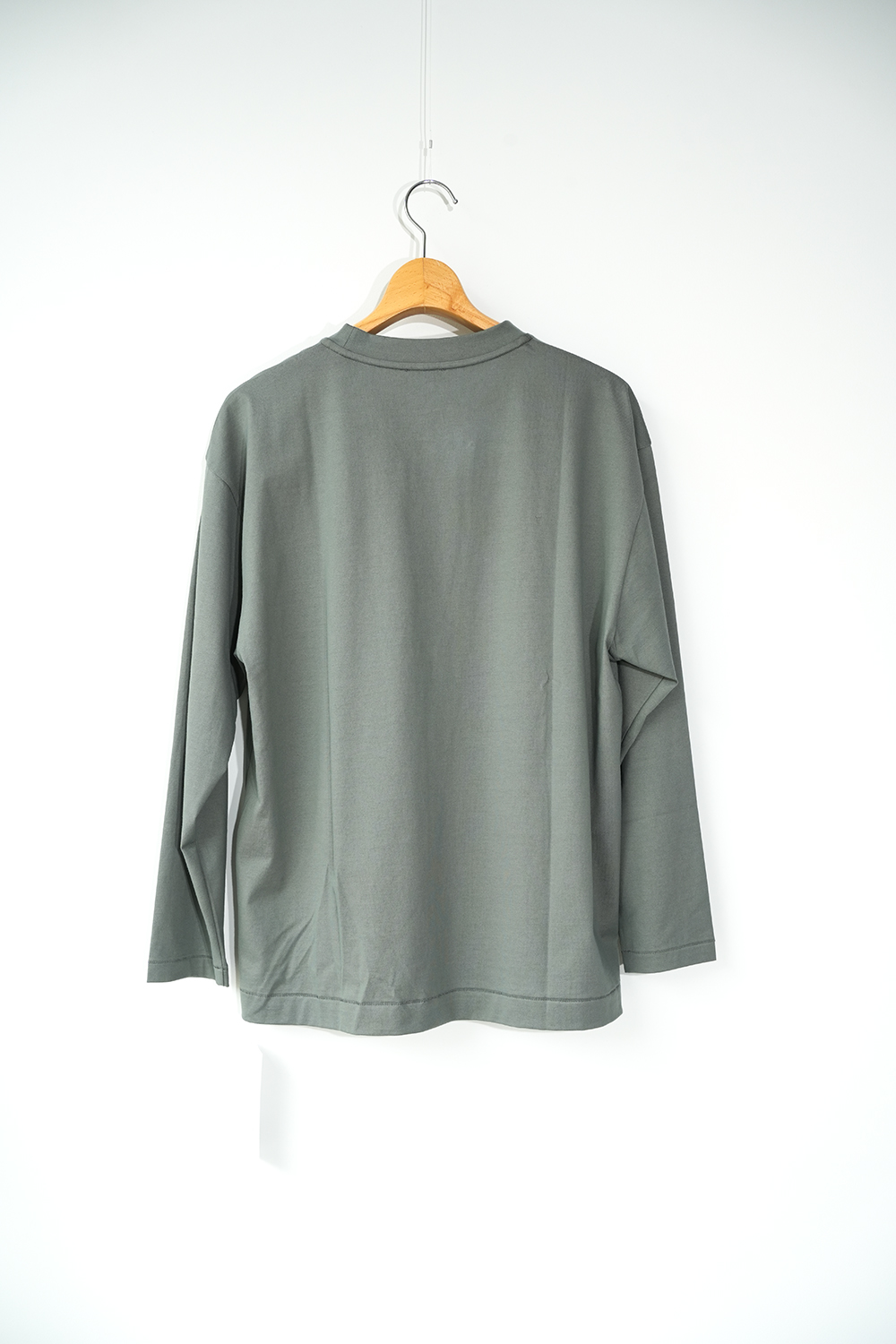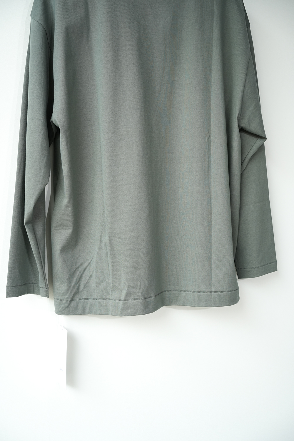 オーバーサイズが特徴のATON定番ロングスリーブTシャツ。ゆとりのあるシルエット、横幅に対し縦の比率が少し長く、モードな印象です。男性向けですが、素材に落ち感があり、女性がオーバーサイズで着用できる1着です。インドで手摘みされたSUVIN COTTONを、和歌山市のニッターの手で編まれており、双糸にすることで、光沢感としなやかさを備えたATONオリジナルのジャージー素材です。SUVIN COTTONは綿花を丁寧に手摘みしている為、油分が失われること無く、繊維に傷が付いていない為、薬剤など化学的な加工を一切せずに美しい光沢があります。