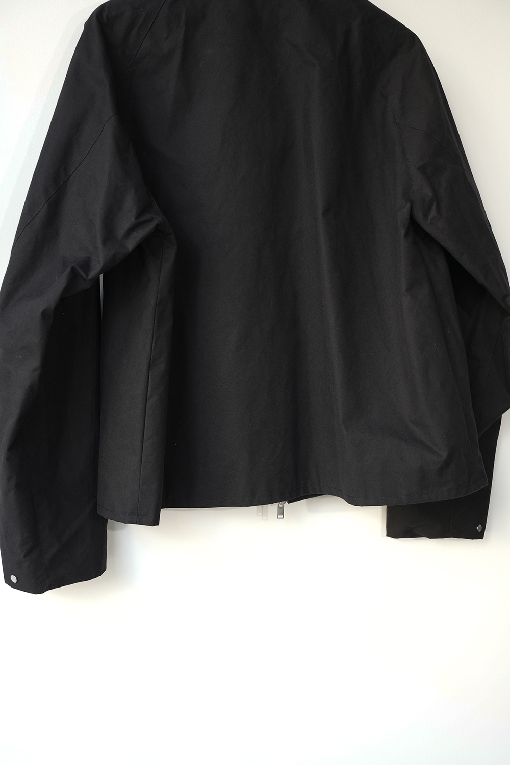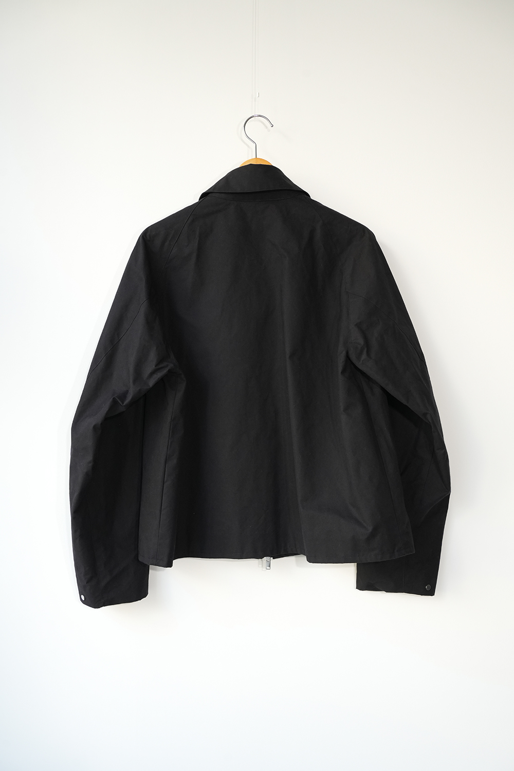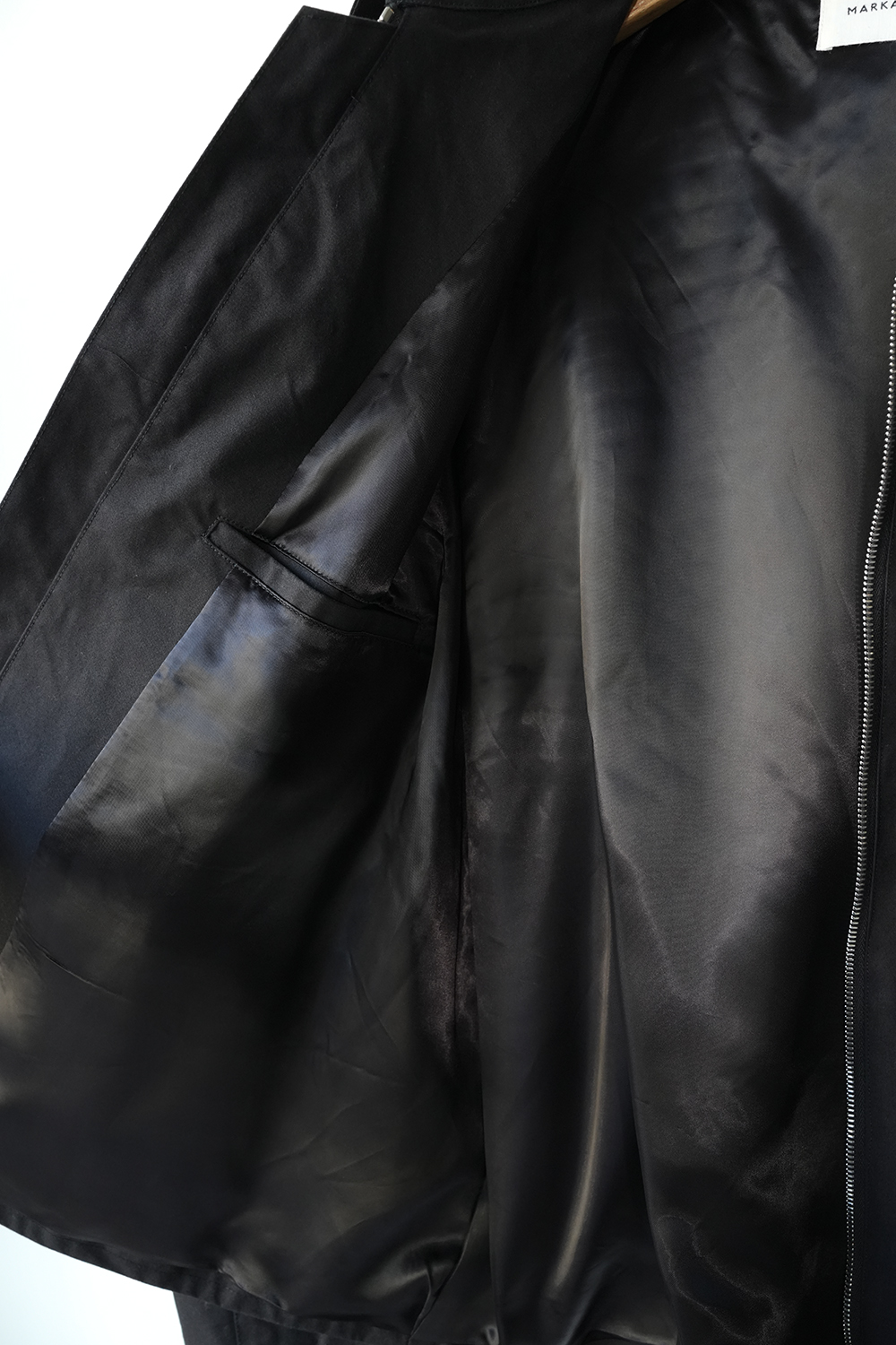 インド産のオーガニック超長綿を使用、80番手の繊細な糸を3本撚り合せた「三子(みっこ)撚り」の糸を生地を織る織機の限界を超えるほど超高密度に織り上げた極めてしっかりとしたコットン生地。光にかざしても明かりが透けないほど超高密で、天然繊維にも関わらず撥水性、耐水性が高いためちょっとした雨であれば浸み込む心配はありません。風を通しにくく、天然素材なのでゴム引きのように劣化もしなければ、オイルドの生地のようにニオイの心配もいりません。蒸れにくく、風も通しにくい生地です。はじめは板のような硬さがありますが、着用を重ねるごとに柔らかく体に馴染んで参ります。秋や春はこれ1枚で、冬はインナーダウンなどと組み合わせることで3シーズン着用が可能。四季折々の移動シーンに配慮したミニマルデザインのジップアップジャケット。