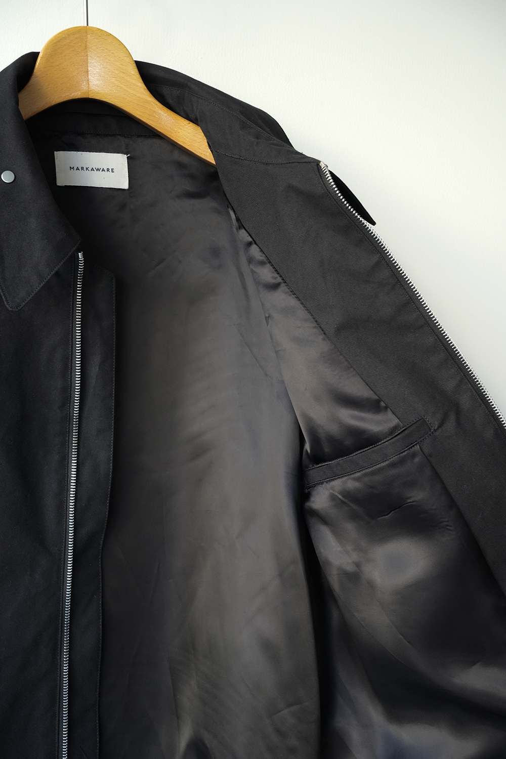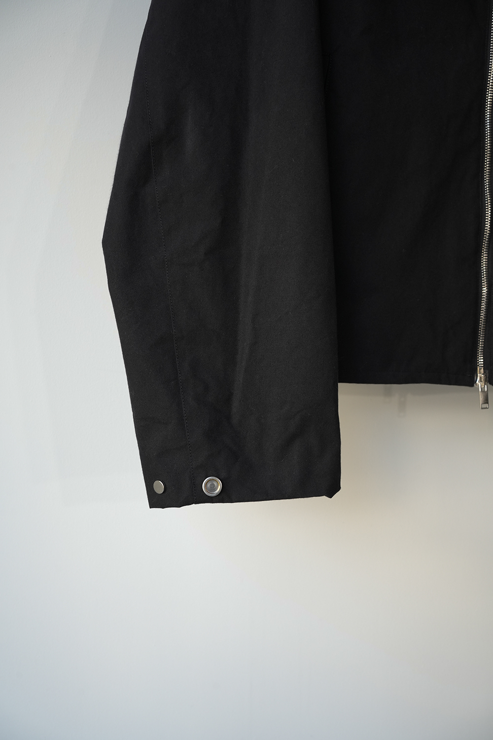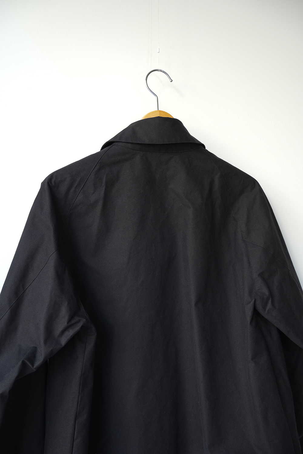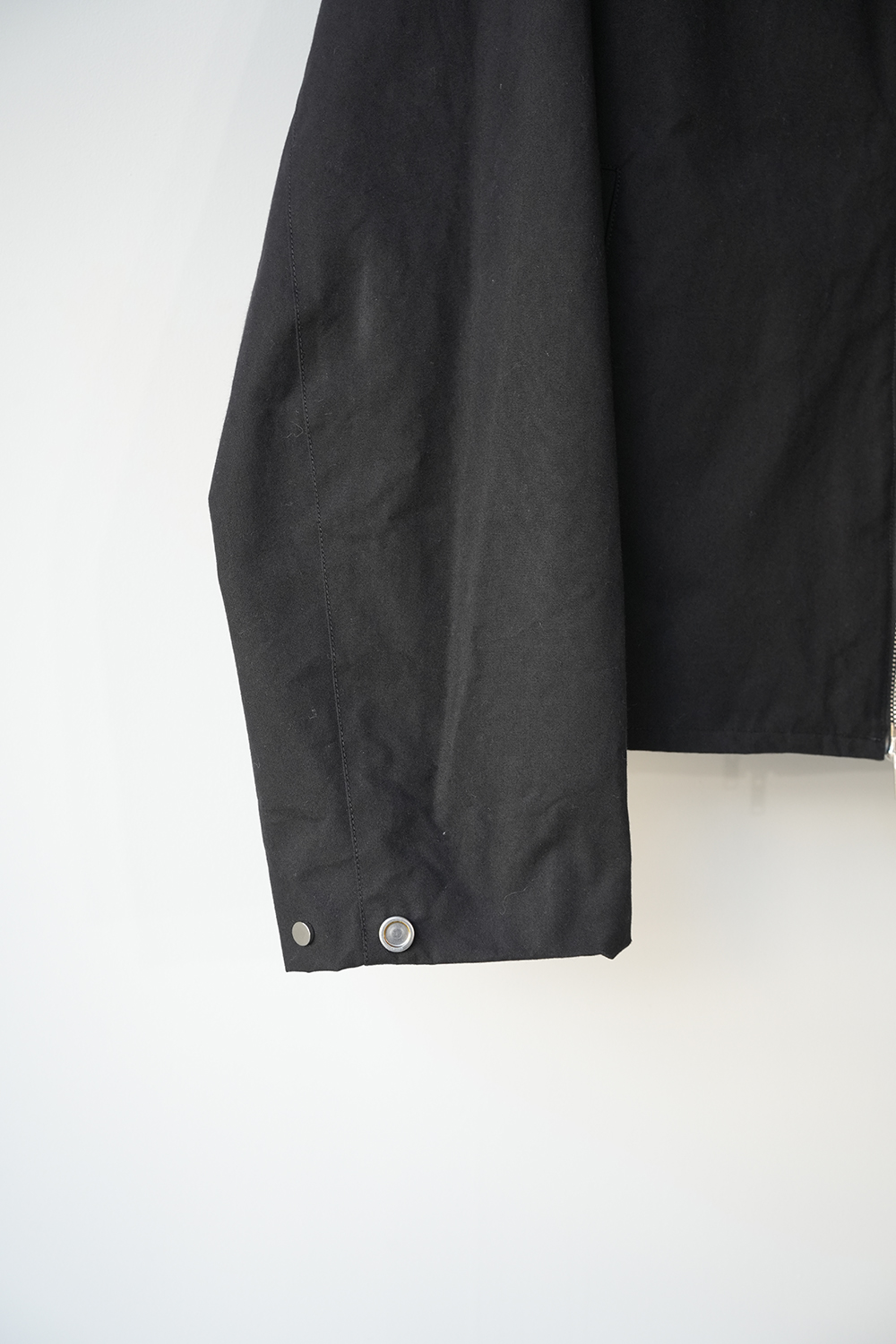 インド産のオーガニック超長綿を使用、80番手の繊細な糸を3本撚り合せた「三子(みっこ)撚り」の糸を生地を織る織機の限界を超えるほど超高密度に織り上げた極めてしっかりとしたコットン生地。光にかざしても明かりが透けないほど超高密で、天然繊維にも関わらず撥水性、耐水性が高いためちょっとした雨であれば浸み込む心配はありません。風を通しにくく、天然素材なのでゴム引きのように劣化もしなければ、オイルドの生地のようにニオイの心配もいりません。蒸れにくく、風も通しにくい生地です。はじめは板のような硬さがありますが、着用を重ねるごとに柔らかく体に馴染んで参ります。秋や春はこれ1枚で、冬はインナーダウンなどと組み合わせることで3シーズン着用が可能。四季折々の移動シーンに配慮したミニマルデザインのジップアップジャケット。