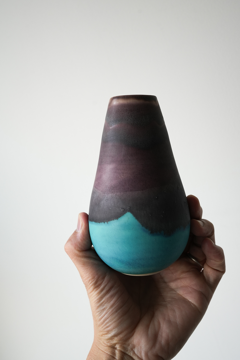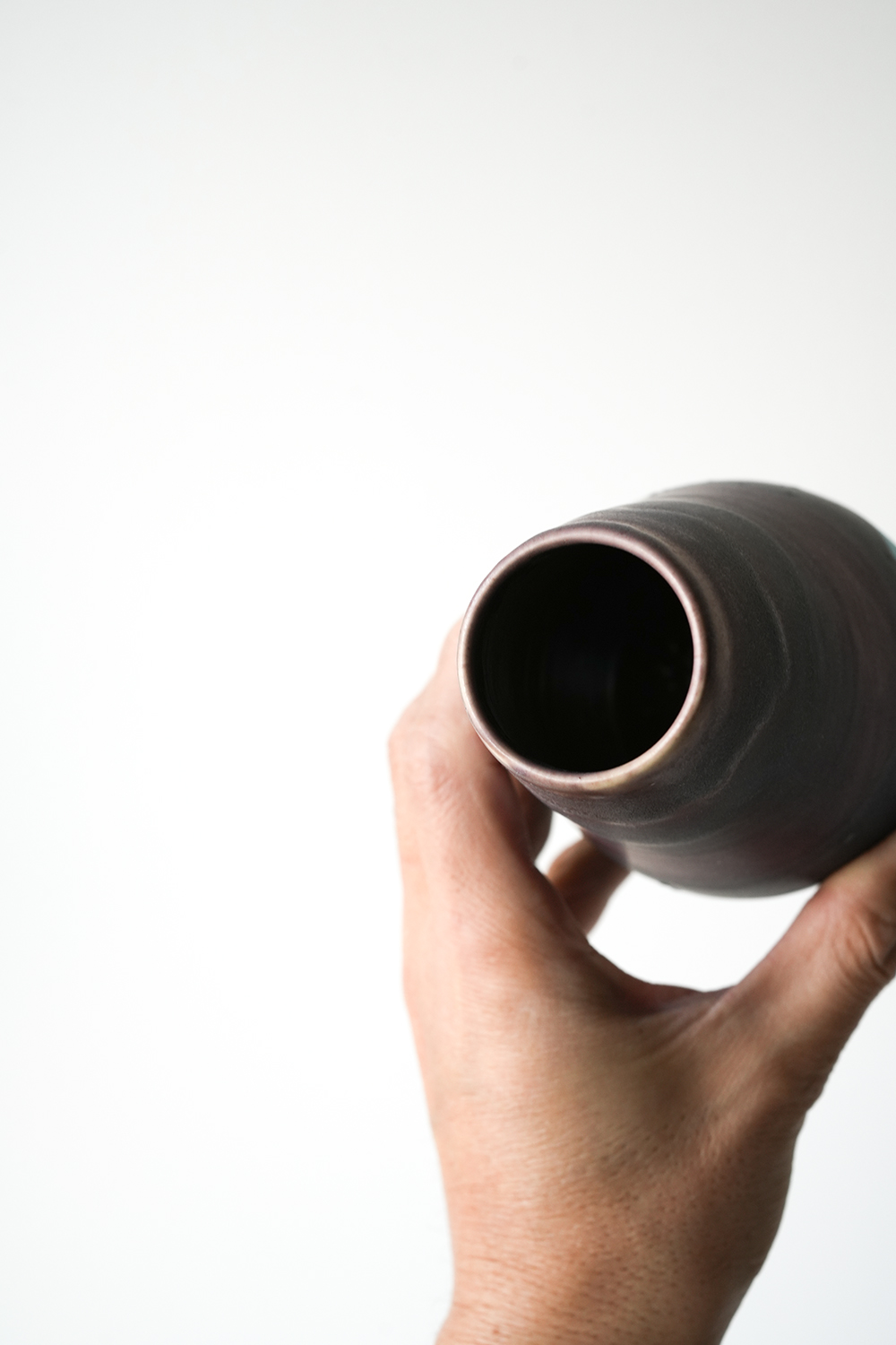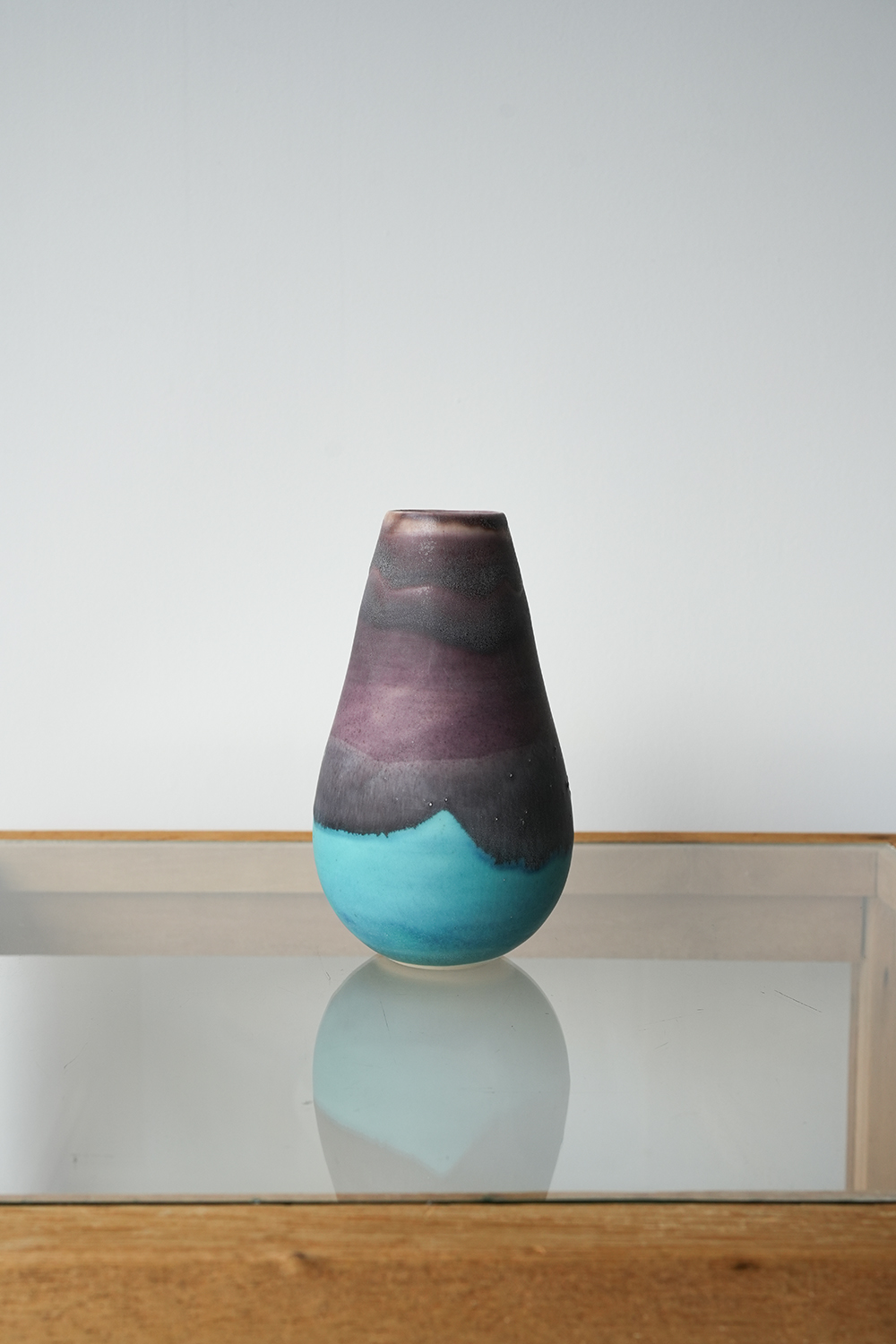 花器 薄茶紫水色釉
