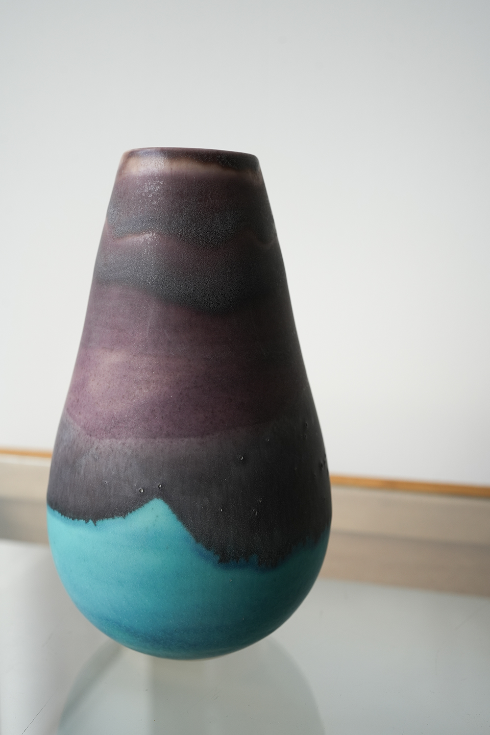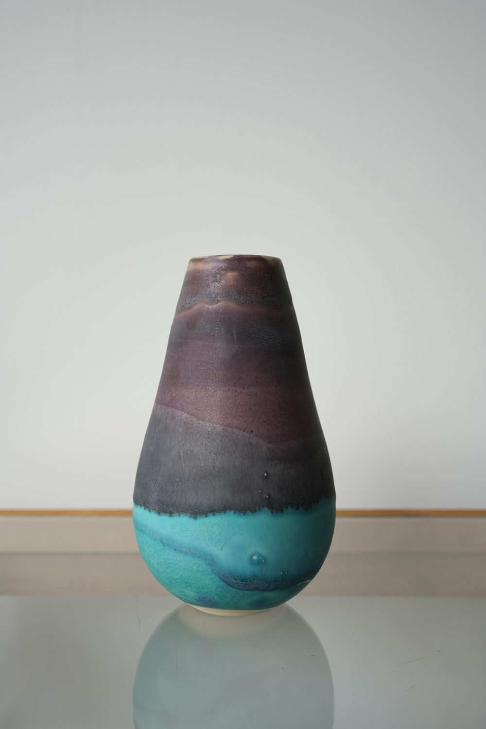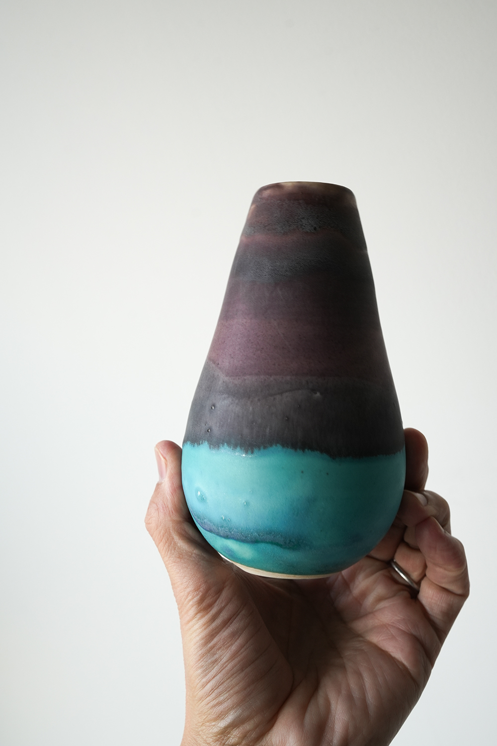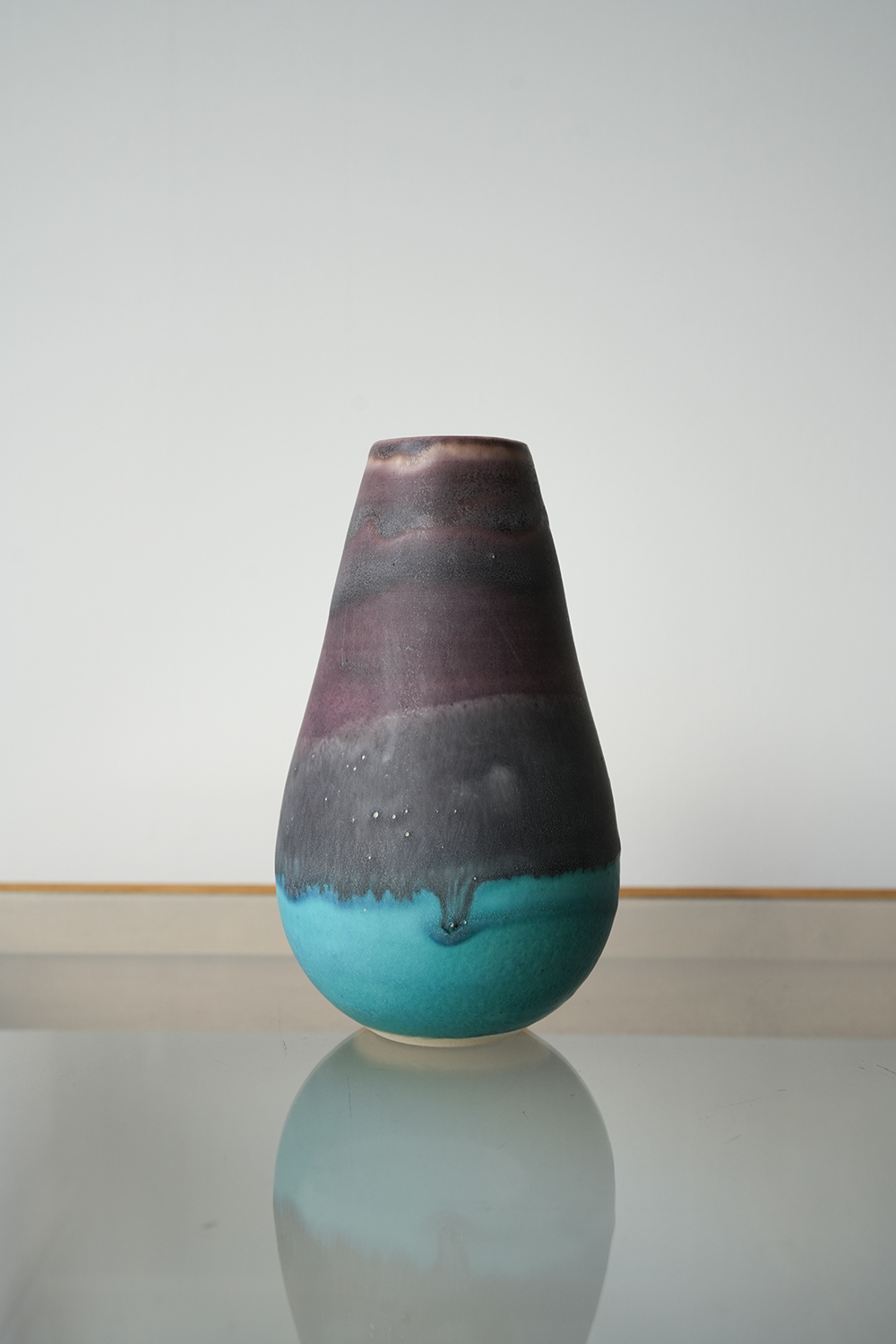 花器 薄茶紫水色釉
