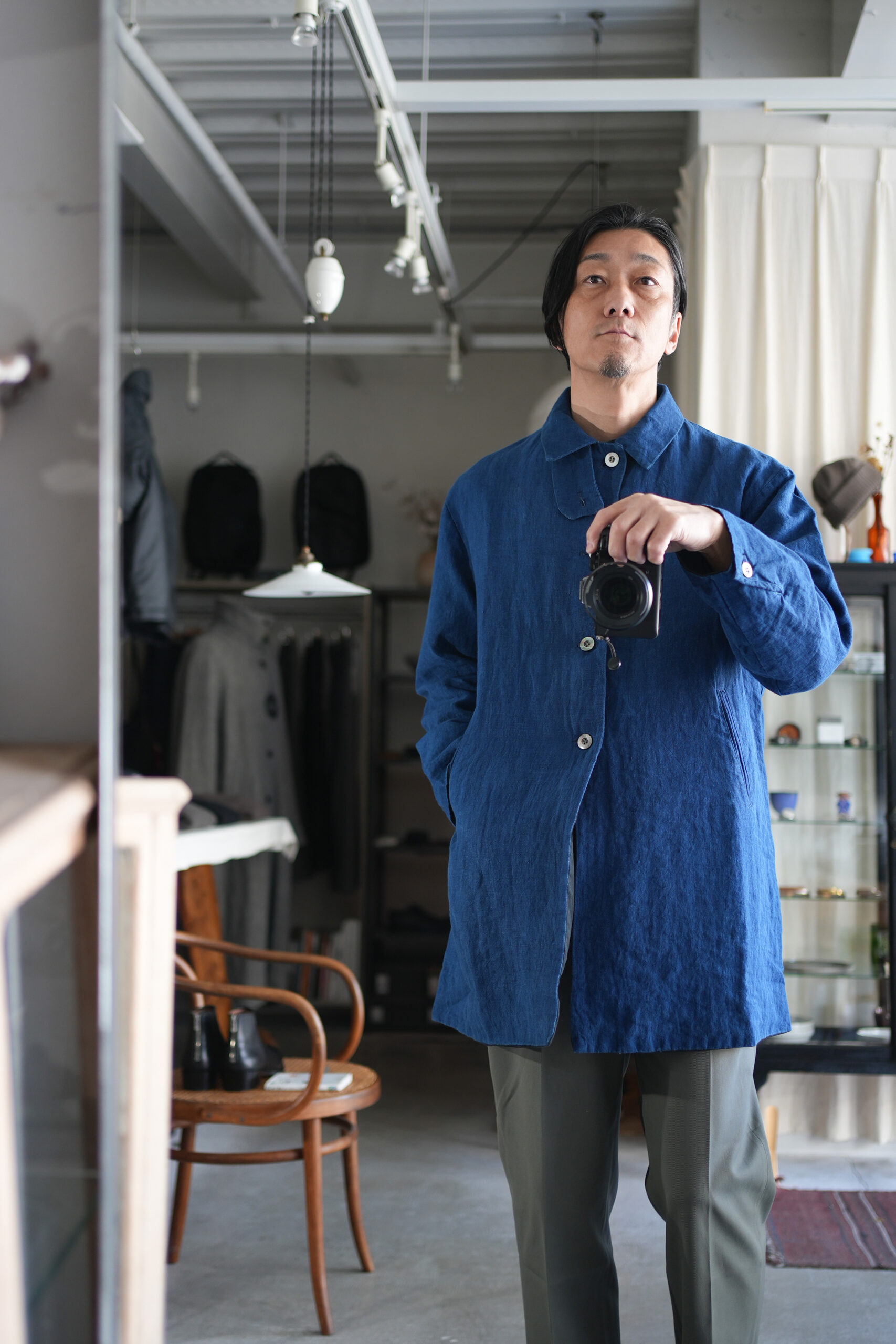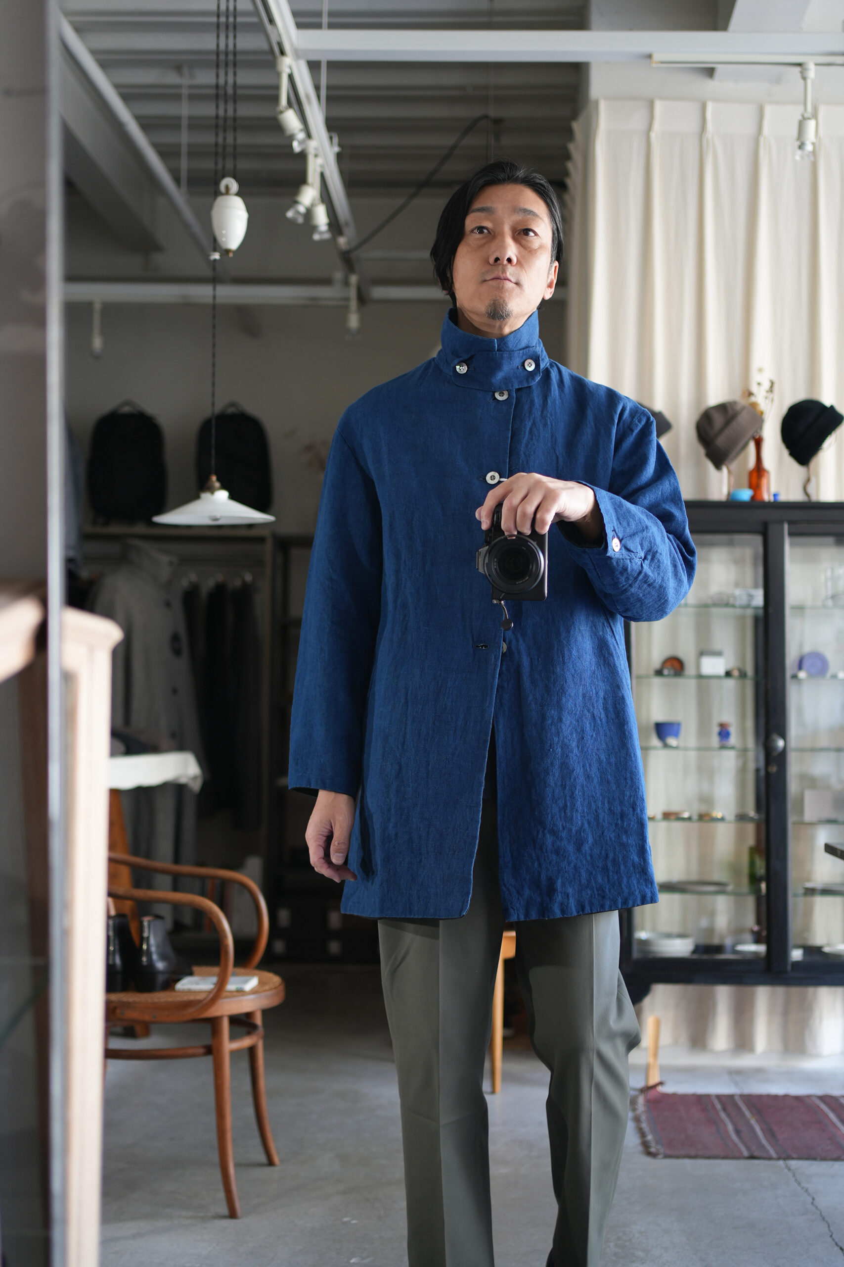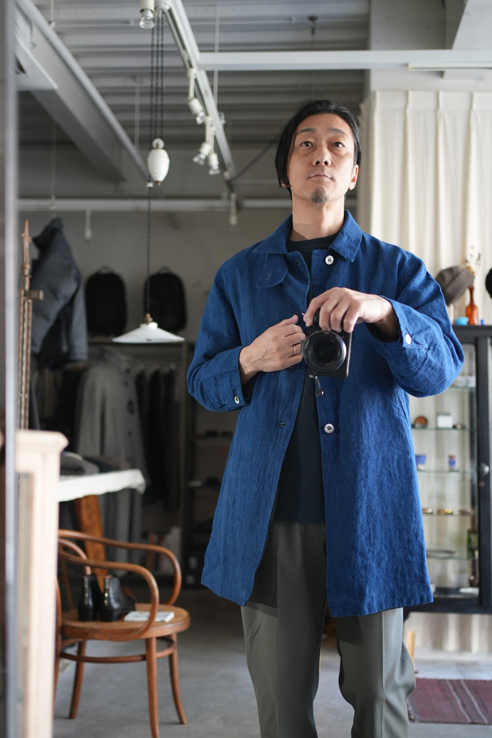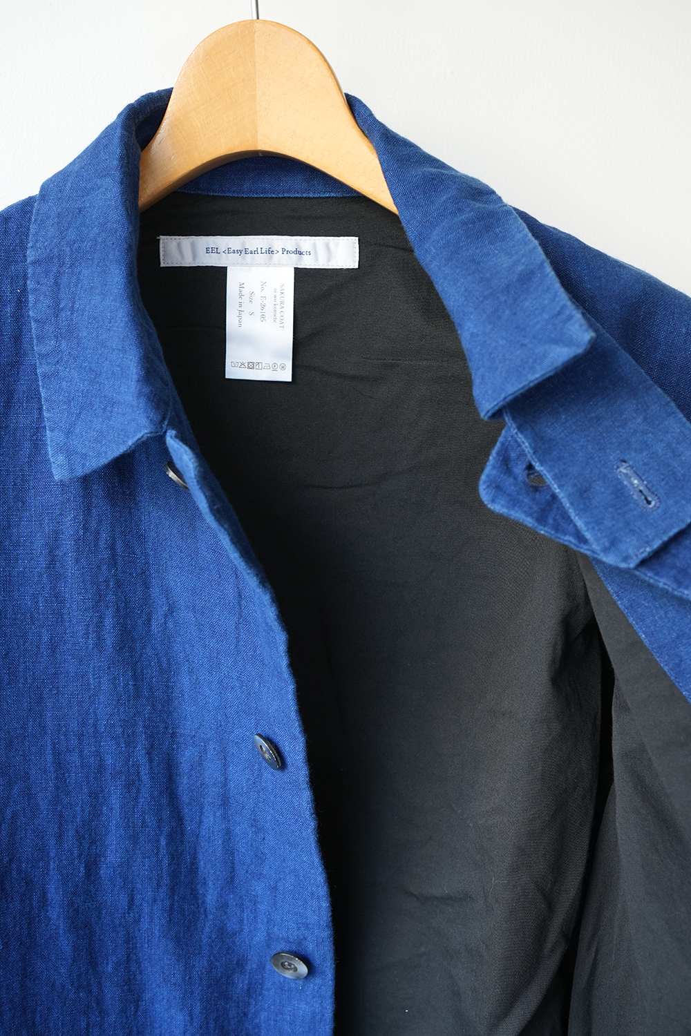 サクラコート藍を込めて。過去に発表していたインディゴ染めの”サクラコート 藍を込めて”をリネン100%に本藍を染めた生地を使用したプロダクト。