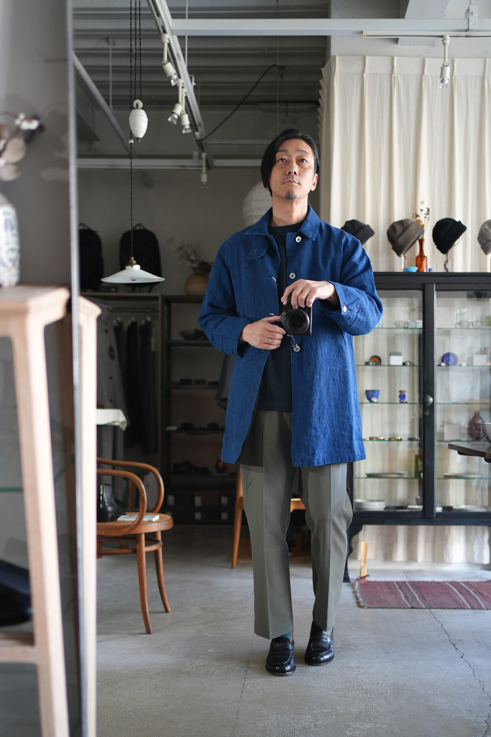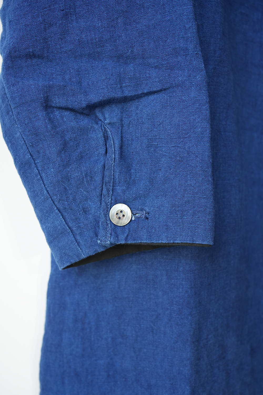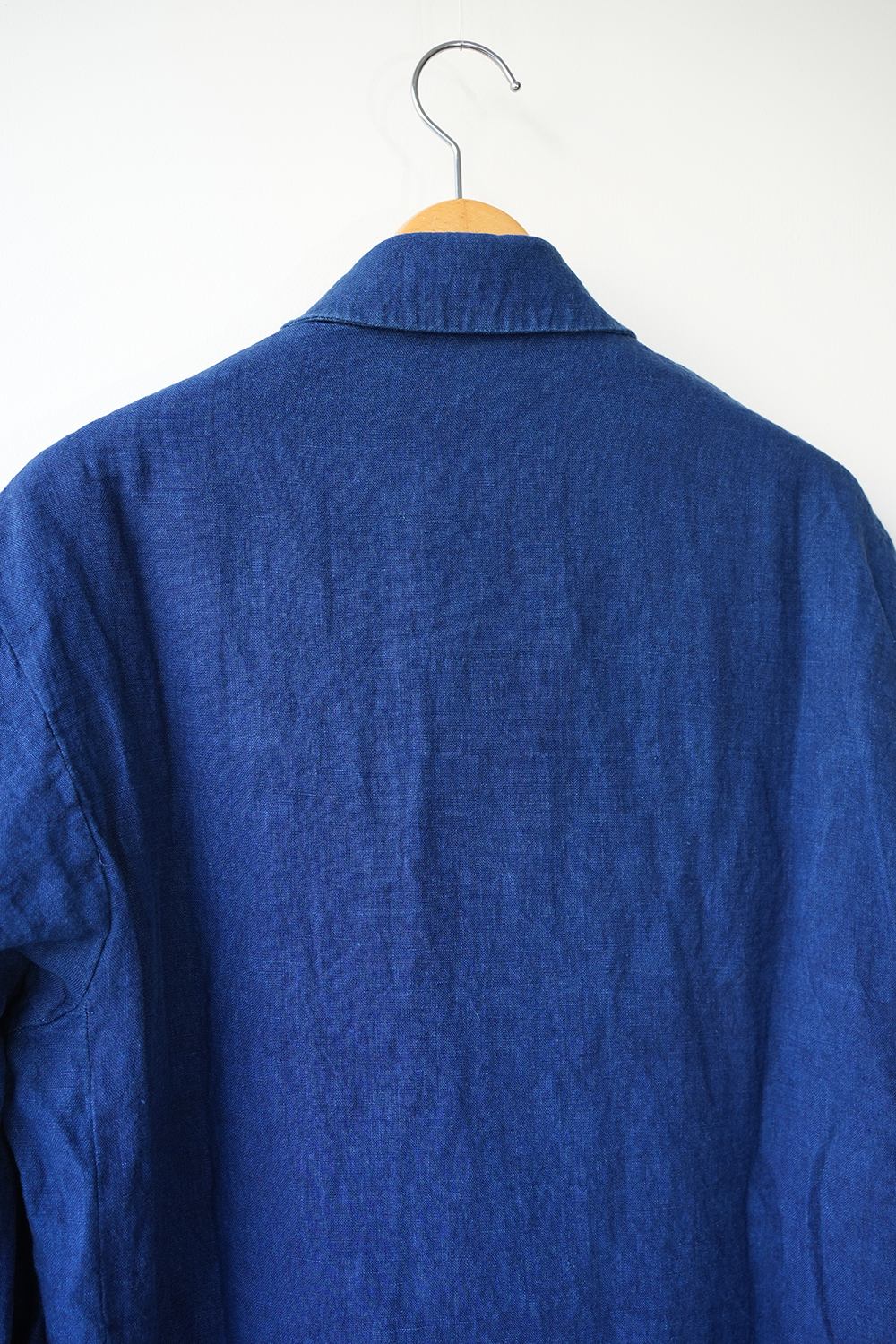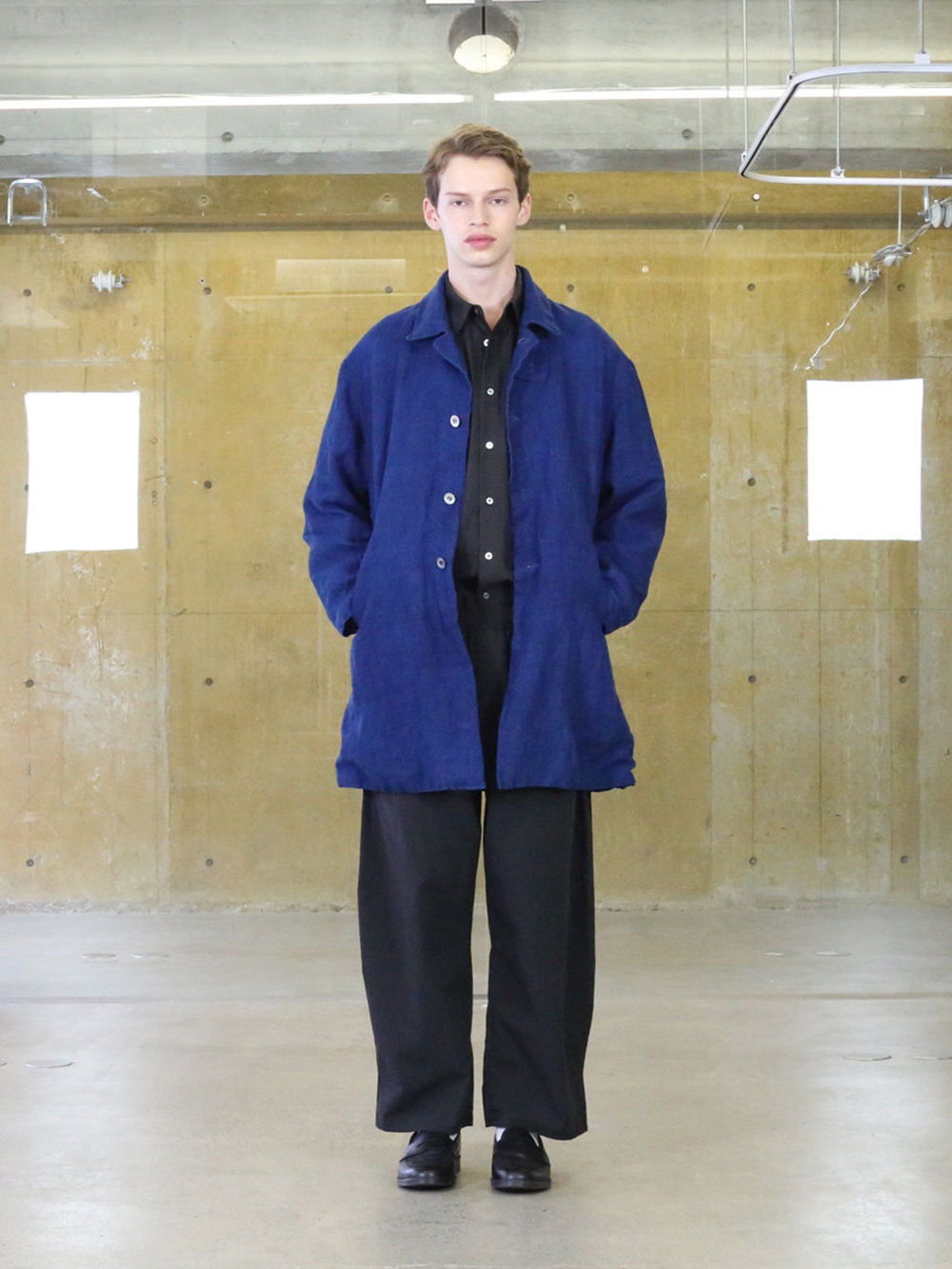 サクラコート藍を込めて。過去に発表していたインディゴ染めの”サクラコート 藍を込めて”をリネン100%に本藍を染めた生地を使用したプロダクト。