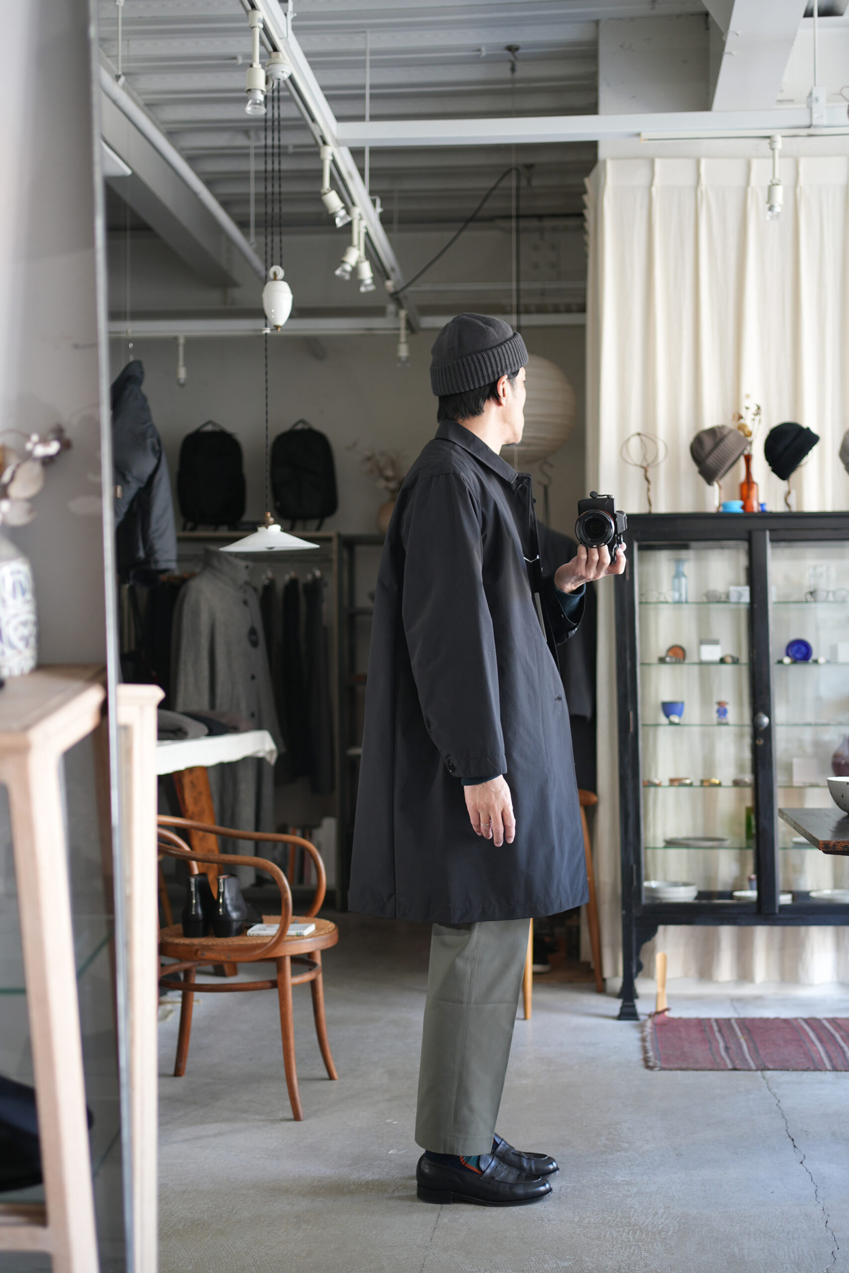 台風下を耐えられる耐水圧20,000mm以上の3層レイヤー生地を使用したレインウェア”ヨザクラコート”。あえてシームテープを張らないことで、自宅洗いも可能です。