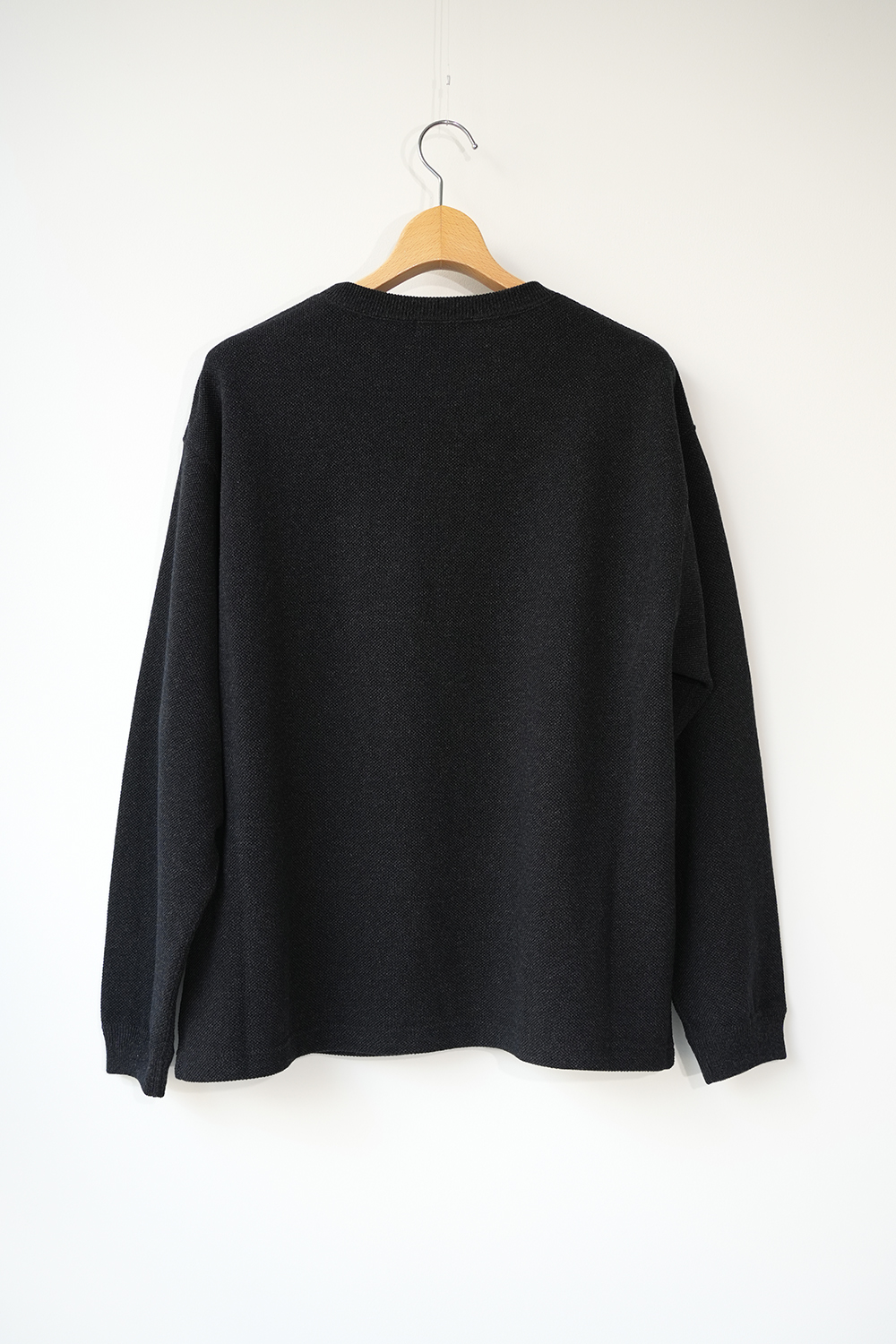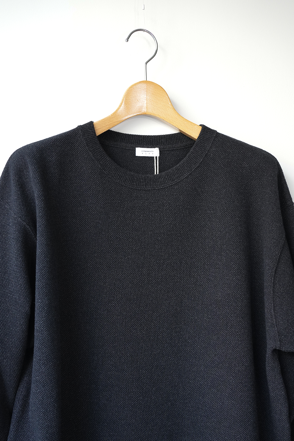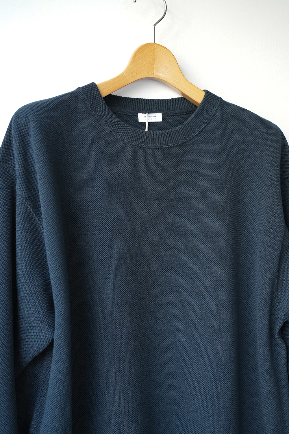 「crepuscule」の名作である鹿の子織りのモスステッチプルオーバー、今季はコットンにレーヨンとシルクをブレンドし滑らかな着心地を実現。