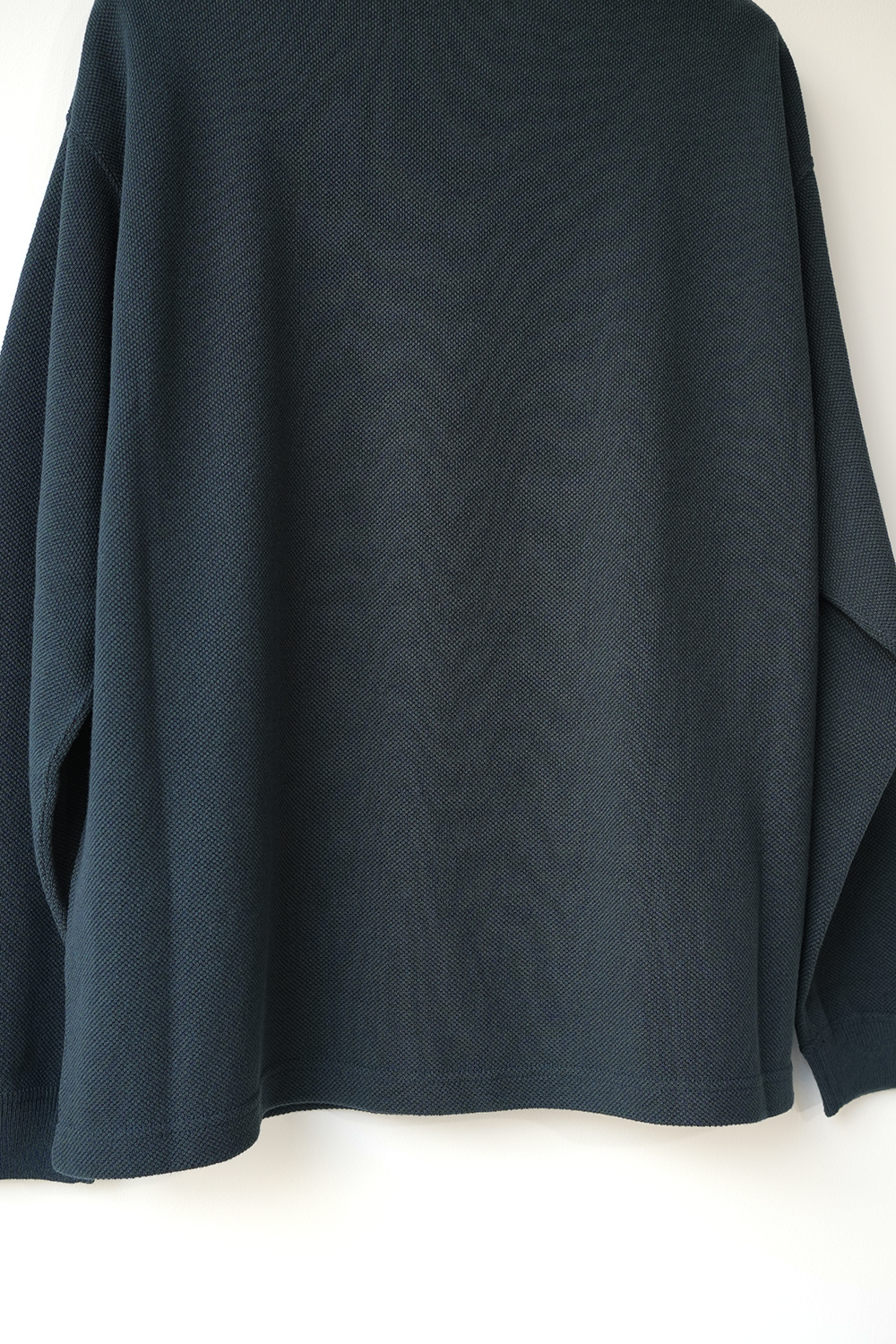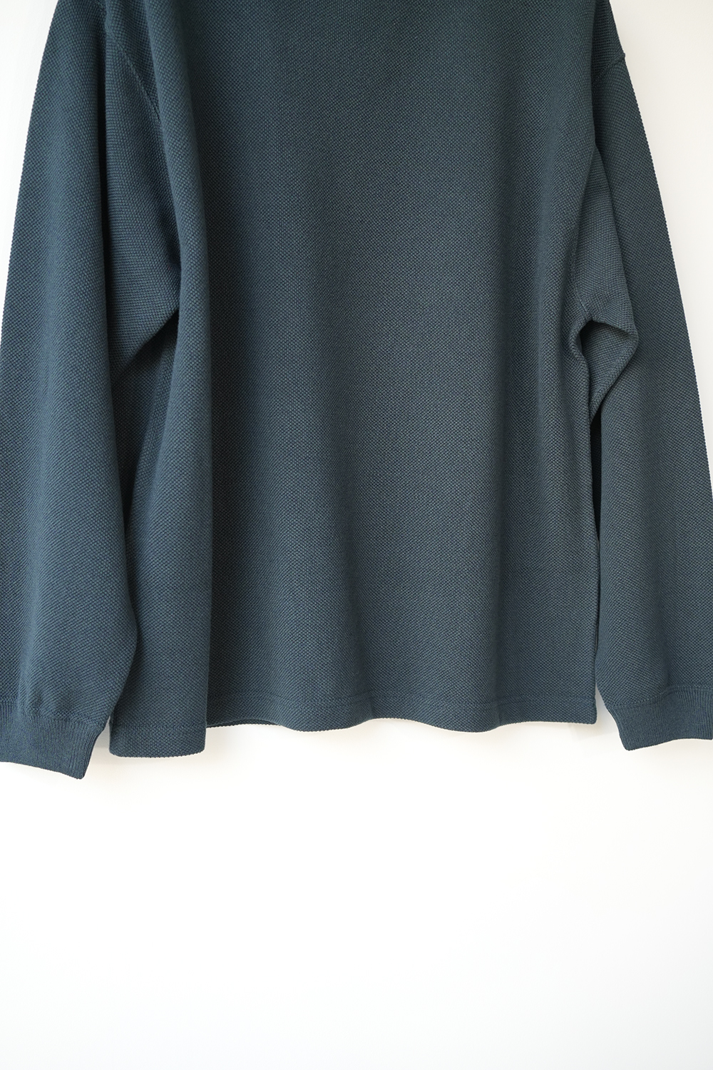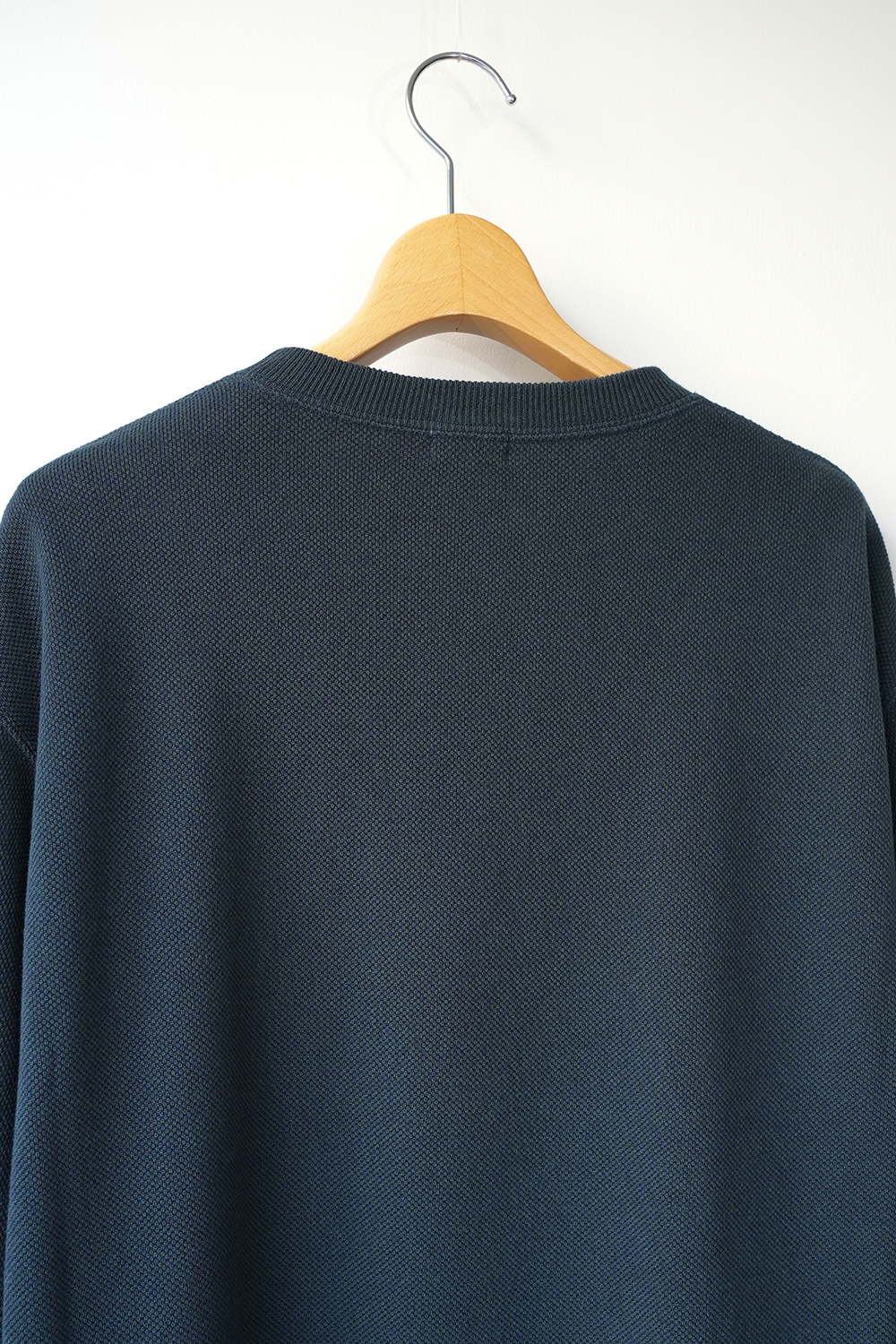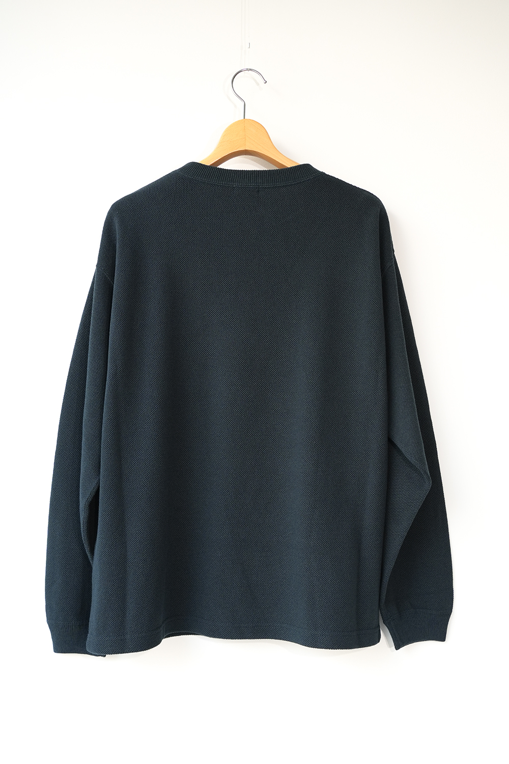 「crepuscule」の名作である鹿の子織りのモスステッチプルオーバー、今季はコットンにレーヨンとシルクをブレンドし滑らかな着心地を実現。
