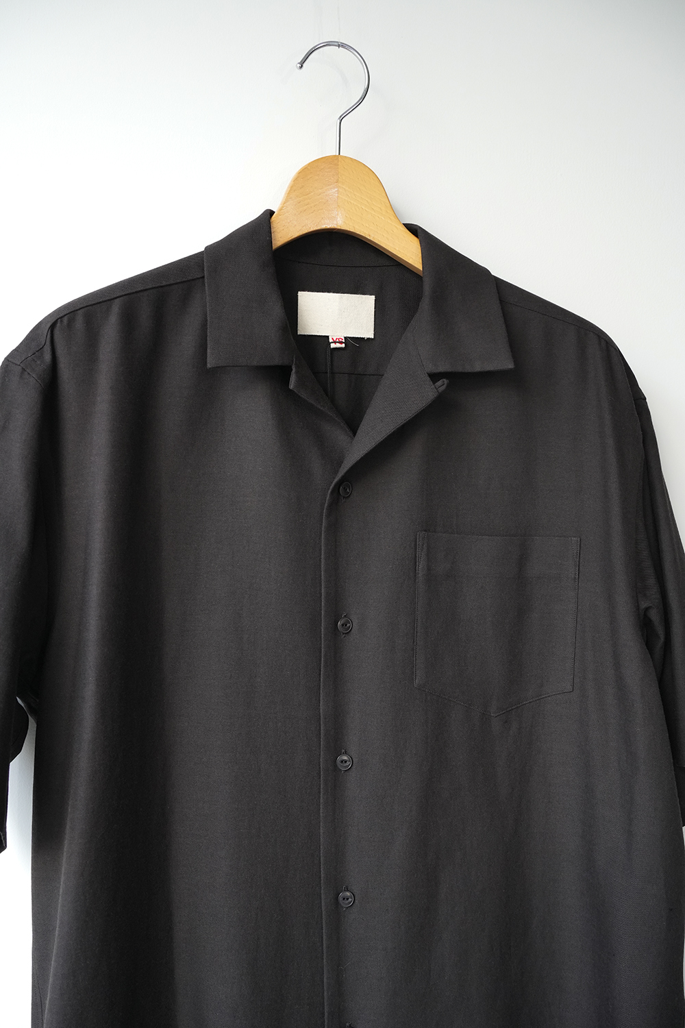 遠州地方の機屋にて 製織したオリジナル素材。経糸にレーヨン、緯糸にコットンを使用したビエラ素材。優れた吸湿性と、上品な 光沢のあるドレープ感が特徴。特殊な 染色方法と仕上げ加工を施す事で 、更に品やかさと光沢感が加わり、独特な 上品さと洗いざらしの風合いを持つ生地に仕上がりました。