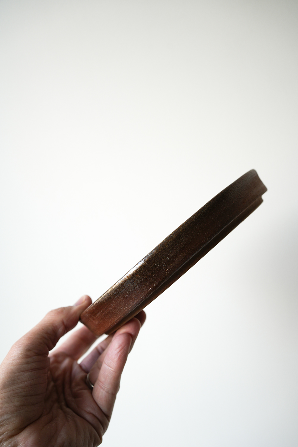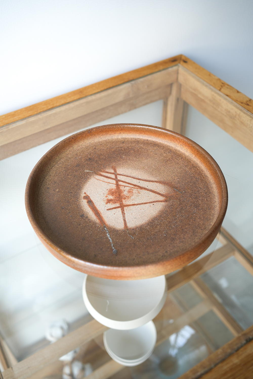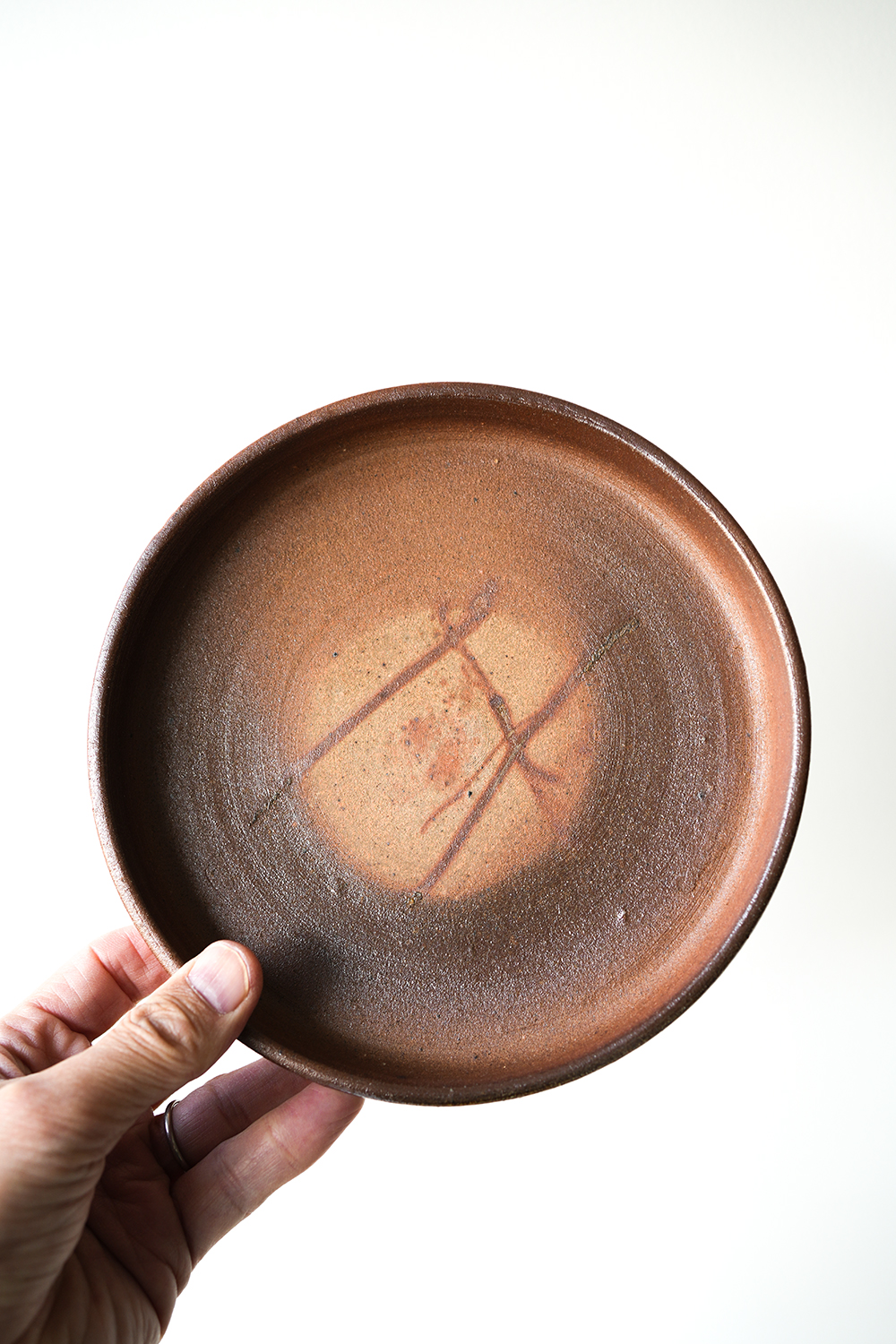 森岡宗彦さんとお父様の森岡光男さんお二人で営む「アツムイ窯」。森岡光男さんは神奈川県逗子市生まれ、鎌倉の名月窯で修業の後、萩、備前、沖縄など様々な窯をめぐり、ありとあらゆる技法や技術に習熟した。1972年、備前に落ち着き、イサム・ノグチと出会う。ノグチから刺激を受けて渡米。ニューヨークでは、何度もイサム・ノグチを訪問し、シアトルでアメリカ人の陶芸家エリック・ネルソン氏と窯を作る。米国滞在の後ヨーロッパ各地を旅し安曇野に登窯を築き、それ以来焼き締めのうつわ作りに没頭。息子である森岡宗彦さんは光男さんと共に幼き頃より陶芸に向き合い今に至る。鉱石などを使わない、薪窯(穴窯・登窯)で燃やされた木の灰が自然の釉薬となって表情を作る焼き締め技法。