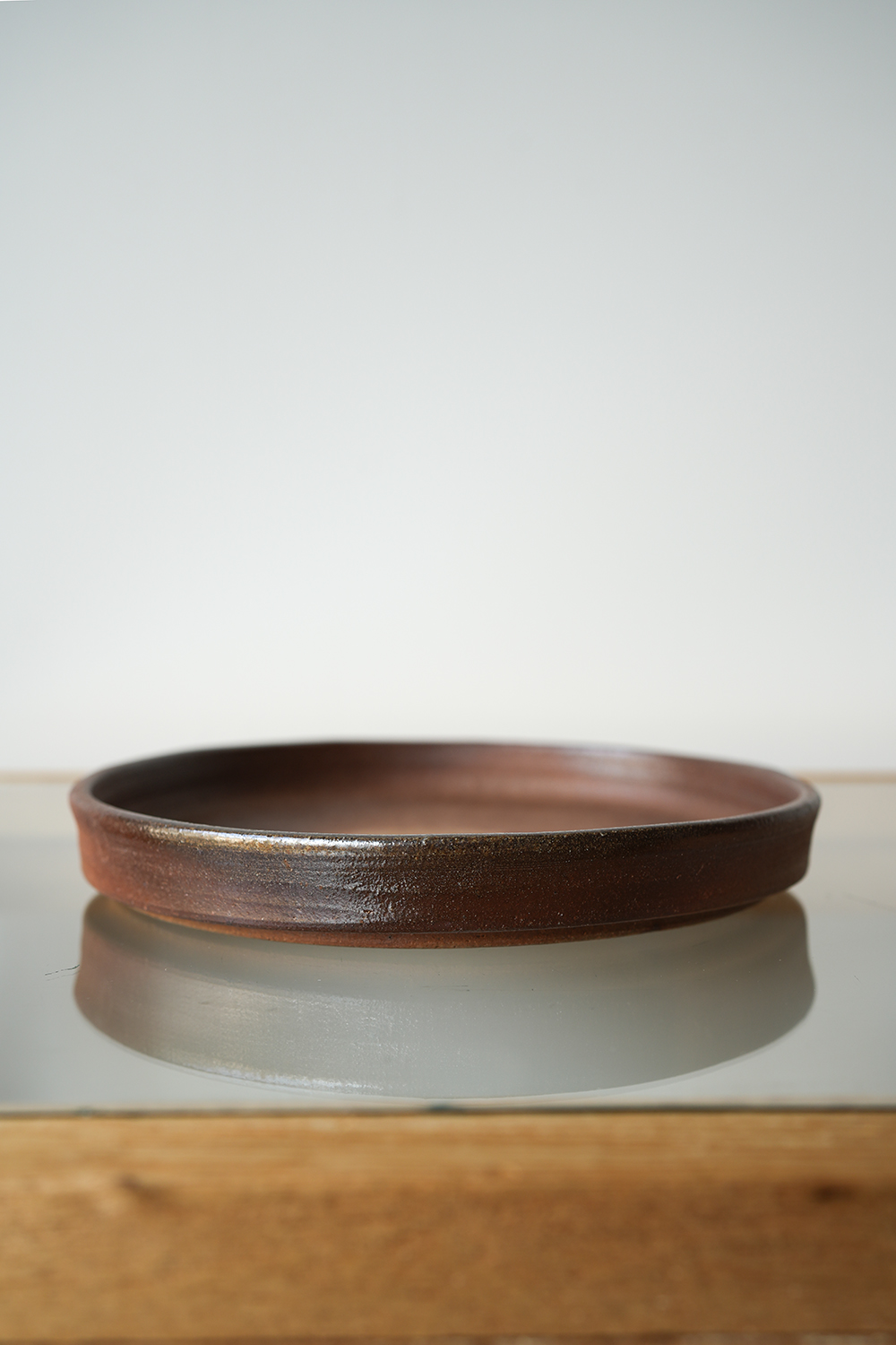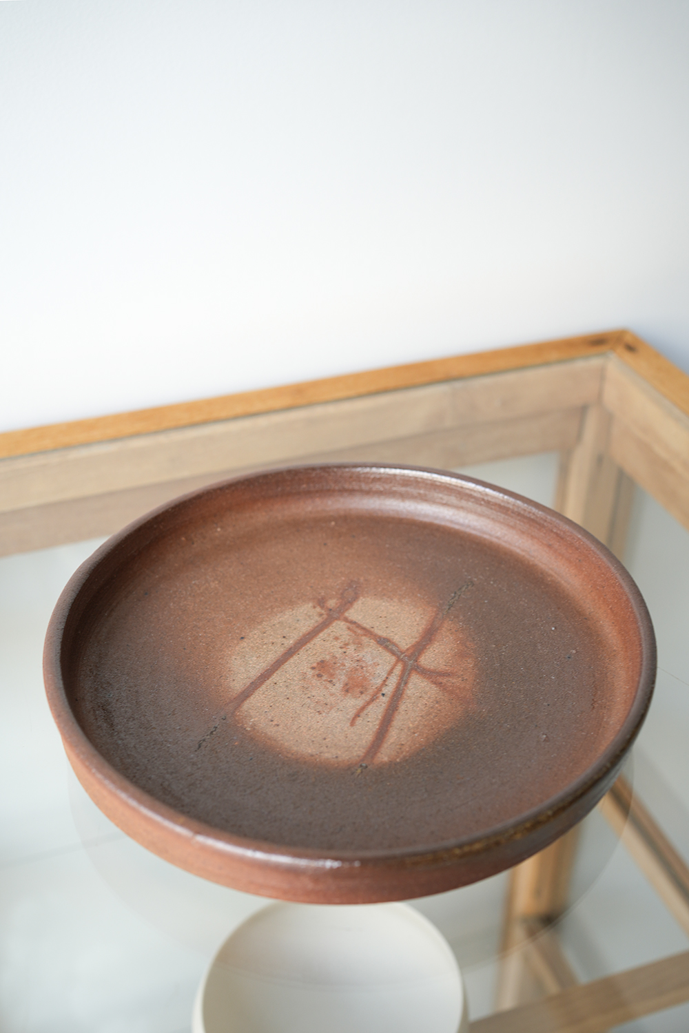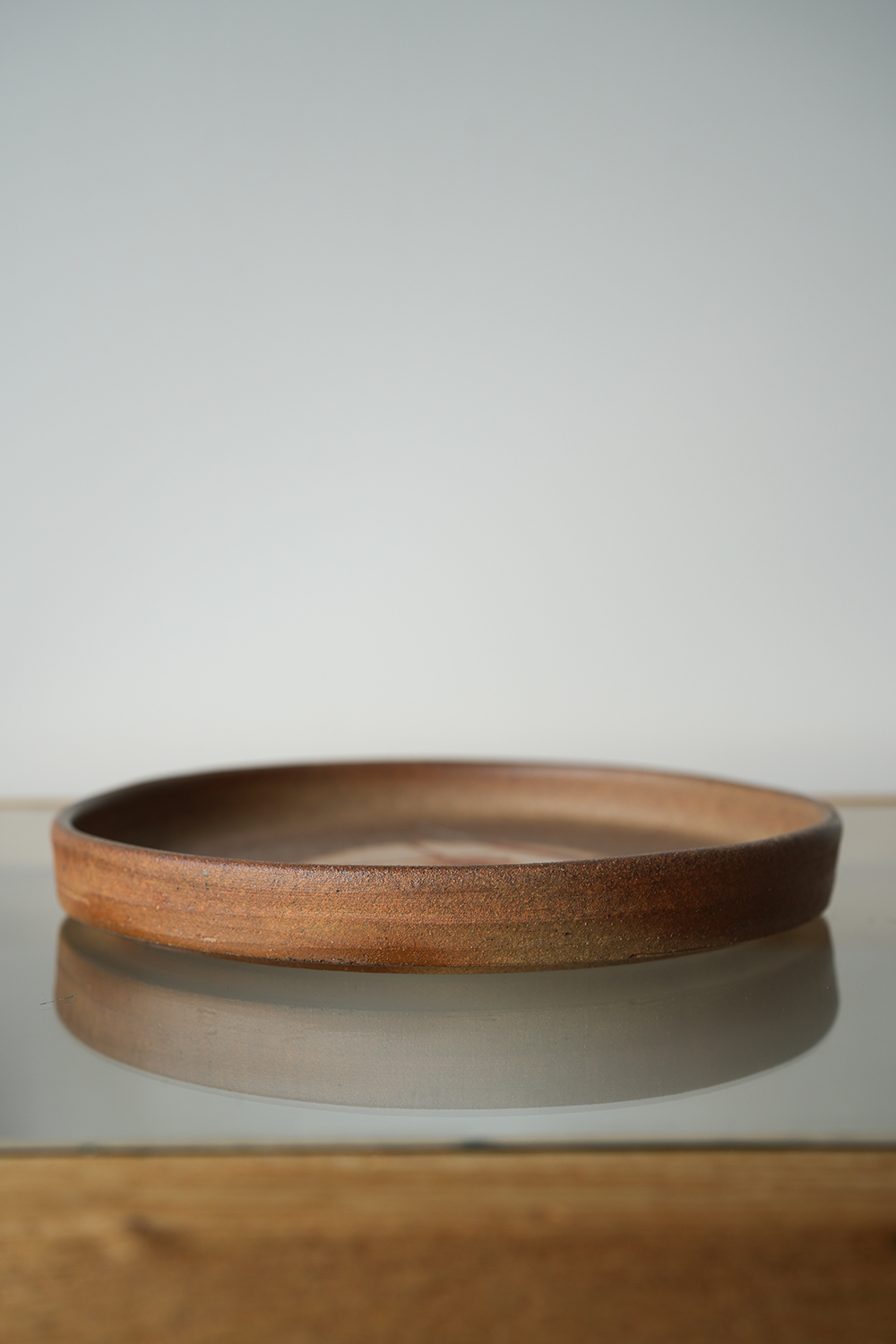 森岡宗彦さんとお父様の森岡光男さんお二人で営む「アツムイ窯」。森岡光男さんは神奈川県逗子市生まれ、鎌倉の名月窯で修業の後、萩、備前、沖縄など様々な窯をめぐり、ありとあらゆる技法や技術に習熟した。1972年、備前に落ち着き、イサム・ノグチと出会う。ノグチから刺激を受けて渡米。ニューヨークでは、何度もイサム・ノグチを訪問し、シアトルでアメリカ人の陶芸家エリック・ネルソン氏と窯を作る。米国滞在の後ヨーロッパ各地を旅し安曇野に登窯を築き、それ以来焼き締めのうつわ作りに没頭。息子である森岡宗彦さんは光男さんと共に幼き頃より陶芸に向き合い今に至る。鉱石などを使わない、薪窯(穴窯・登窯)で燃やされた木の灰が自然の釉薬となって表情を作る焼き締め技法。
