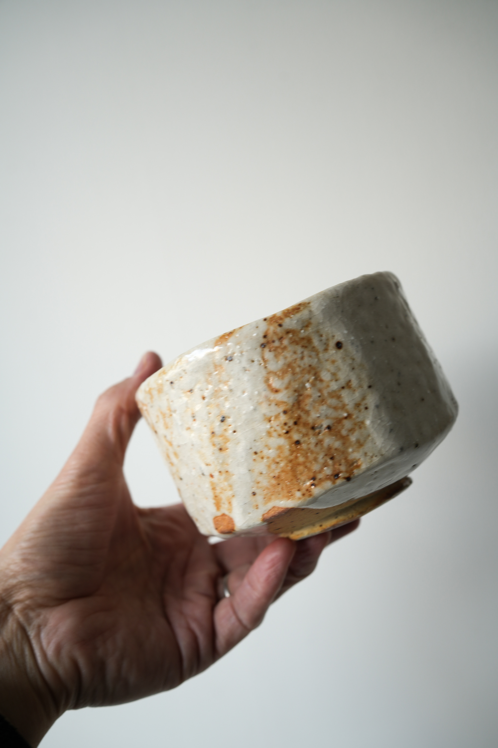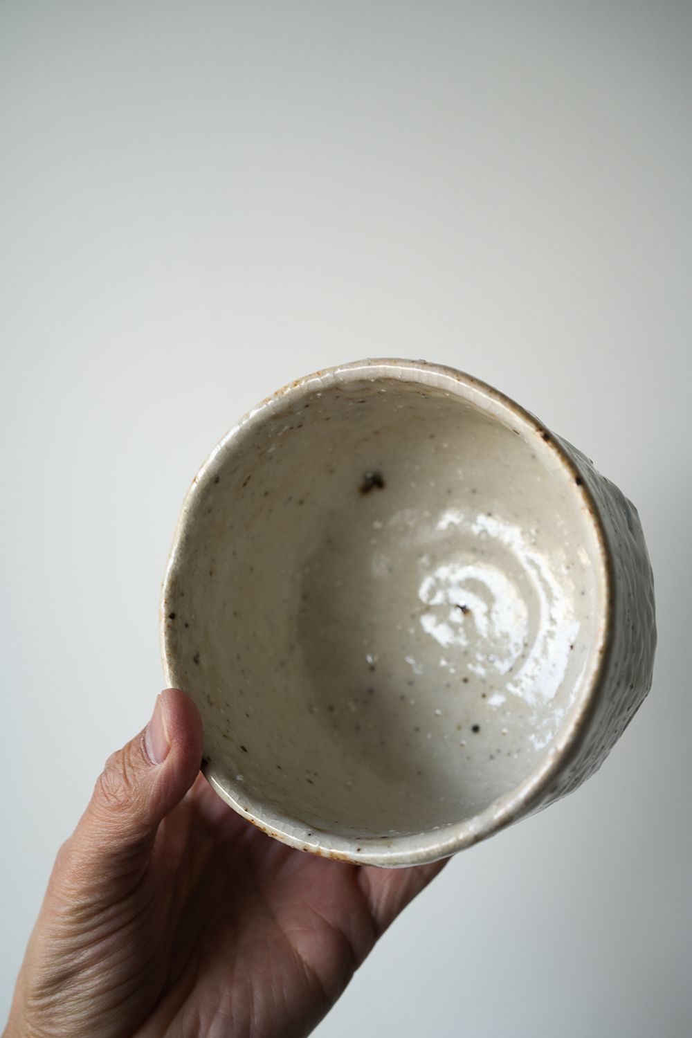 森岡宗彦さんとお父様の森岡光男さんお二人で営む「アツムイ窯」。森岡光男さんは神奈川県逗子市生まれ、鎌倉の名月窯で修業の後、萩、備前、沖縄など様々な窯をめぐり、ありとあらゆる技法や技術に習熟した。1972年、備前に落ち着き、イサム・ノグチと出会う。ノグチから刺激を受けて渡米。ニューヨークでは、何度もイサム・ノグチを訪問し、シアトルでアメリカ人の陶芸家エリック・ネルソン氏と窯を作る。米国滞在の後ヨーロッパ各地を旅し安曇野に登窯を築き、それ以来焼き締めのうつわ作りに没頭。息子である森岡宗彦さんは光男さんと共に幼き頃より陶芸に向き合い今に至る。鉱石などを使わない、薪窯(穴窯・登窯)で燃やされた木の灰が自然の釉薬となって表情を作る焼き締め技法。