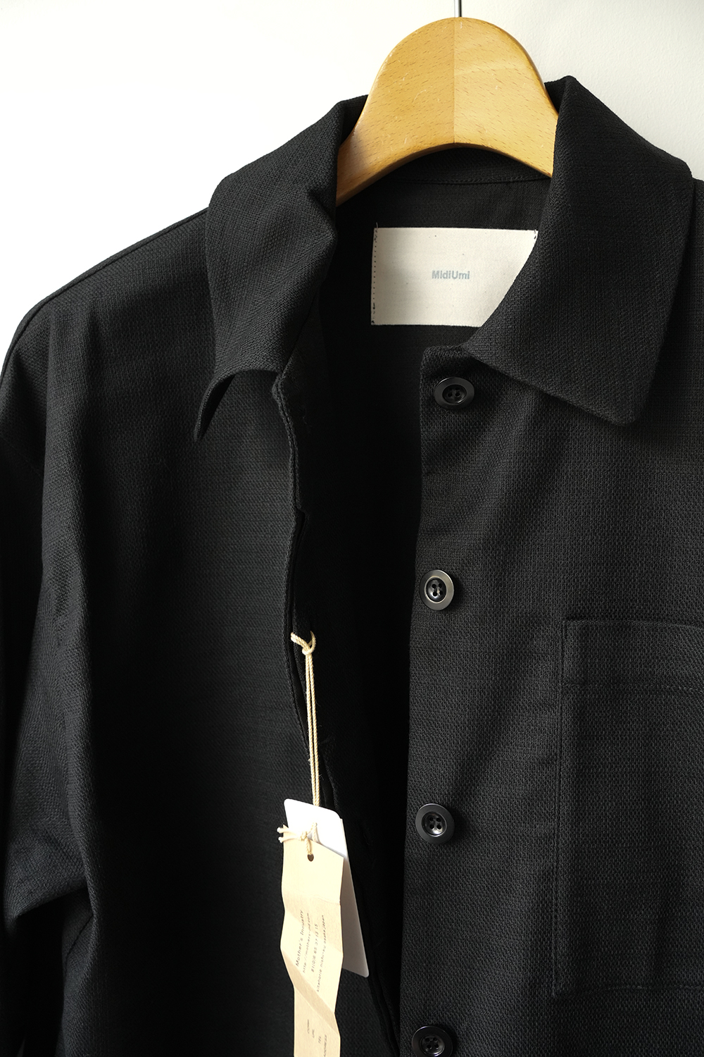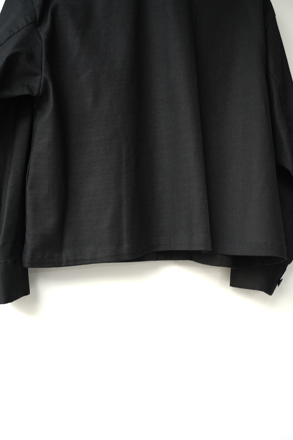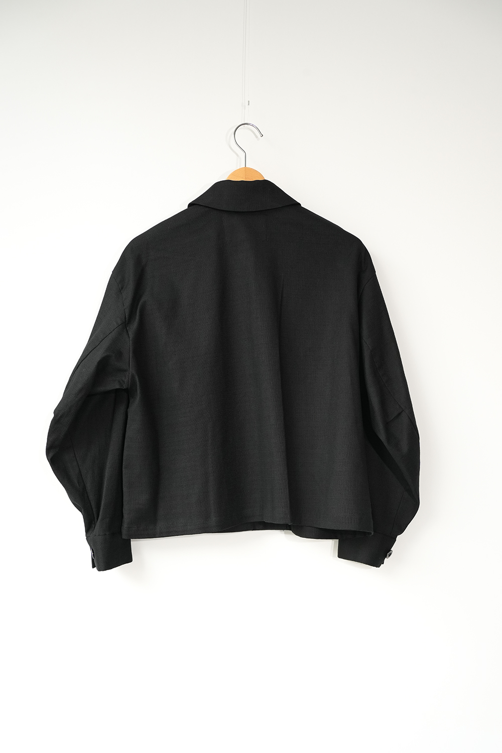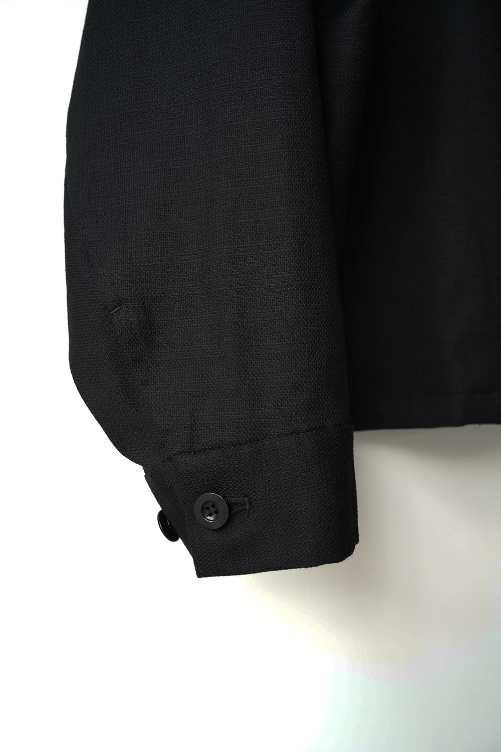 袖にボリューム感を持たせたワーク感と上品な雰囲気をミックスさせたジャケット。麻のような凹凸感があるコットンブッチャー生地をセミフォーマルな雰囲気に落とし込みました。コットンブッチャー生地は、欧米の肉屋が使用していた丈夫で厚手の亜麻織物に似せて作られた織物。複数本の糸を引き揃えて織り込むことで生み出した立体感のある縦畝や横畝が表面に不規則に並びます。高級感がありながら麻のようなシャリ感もある爽やかな印象の素材です。