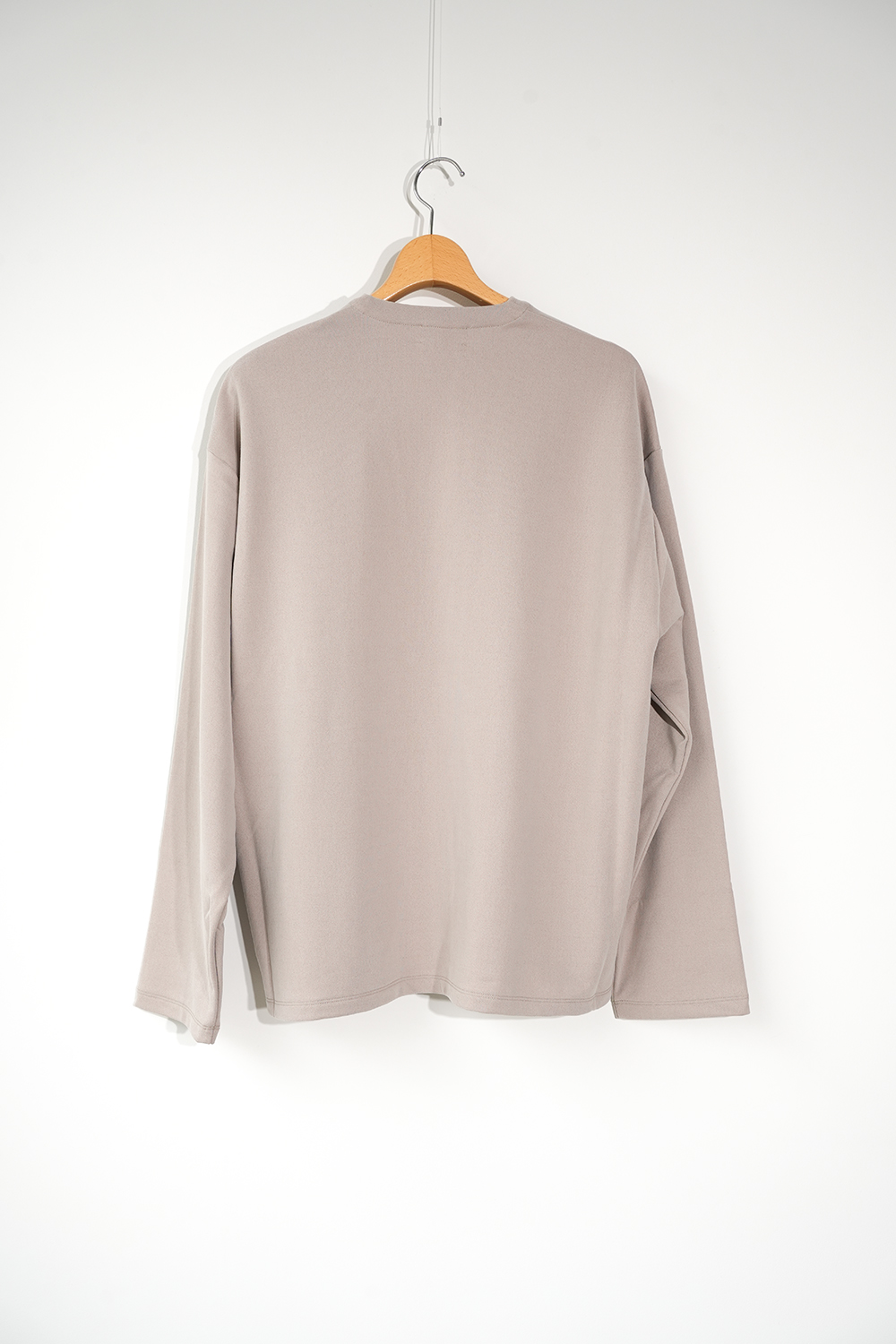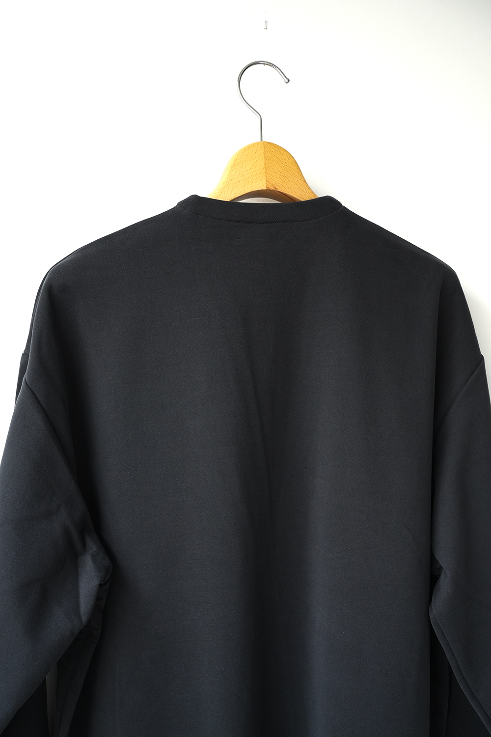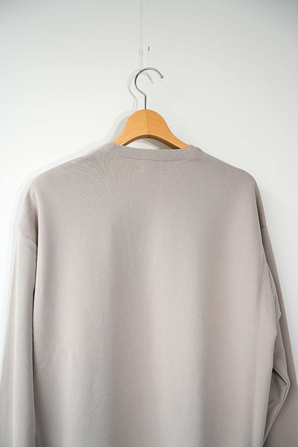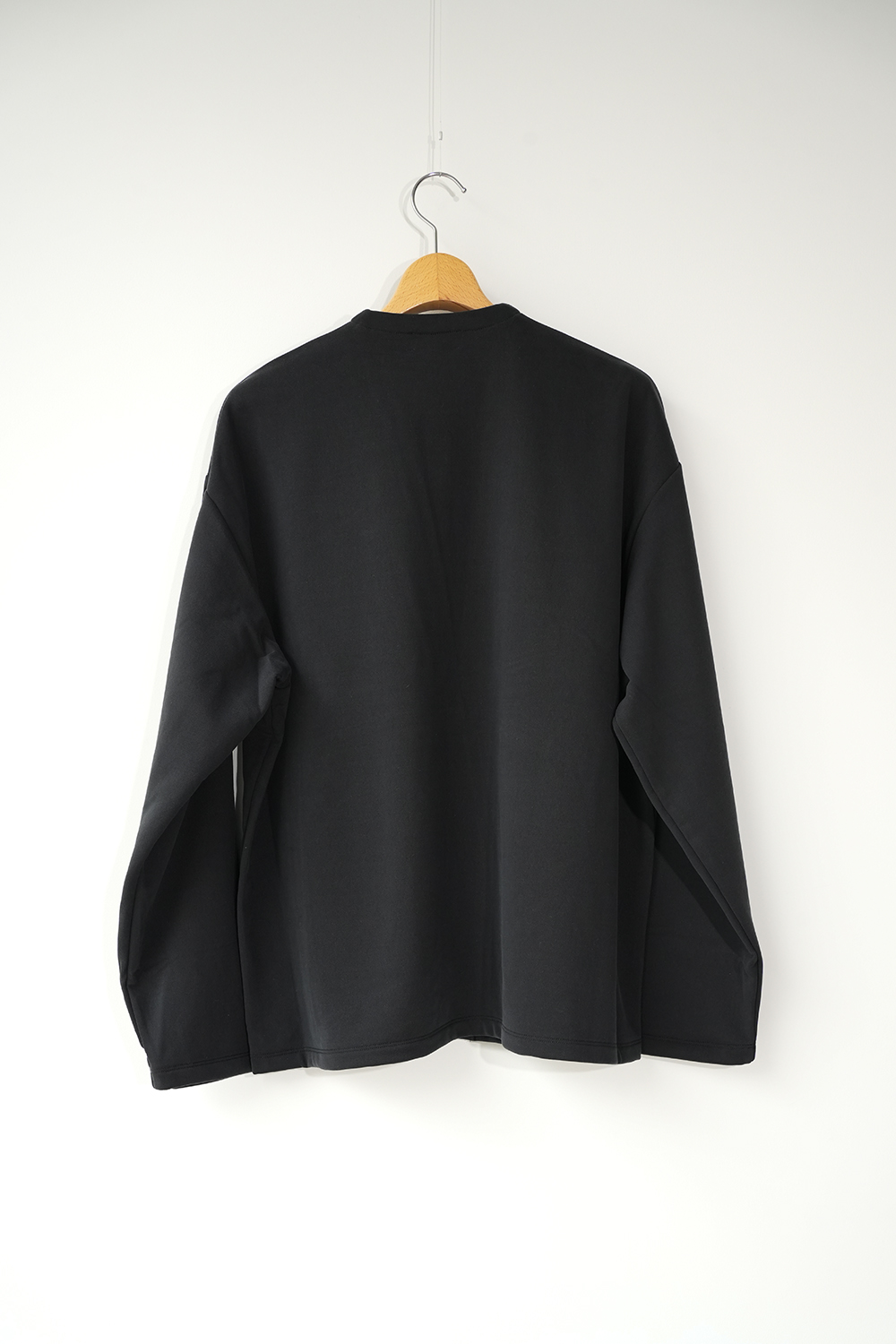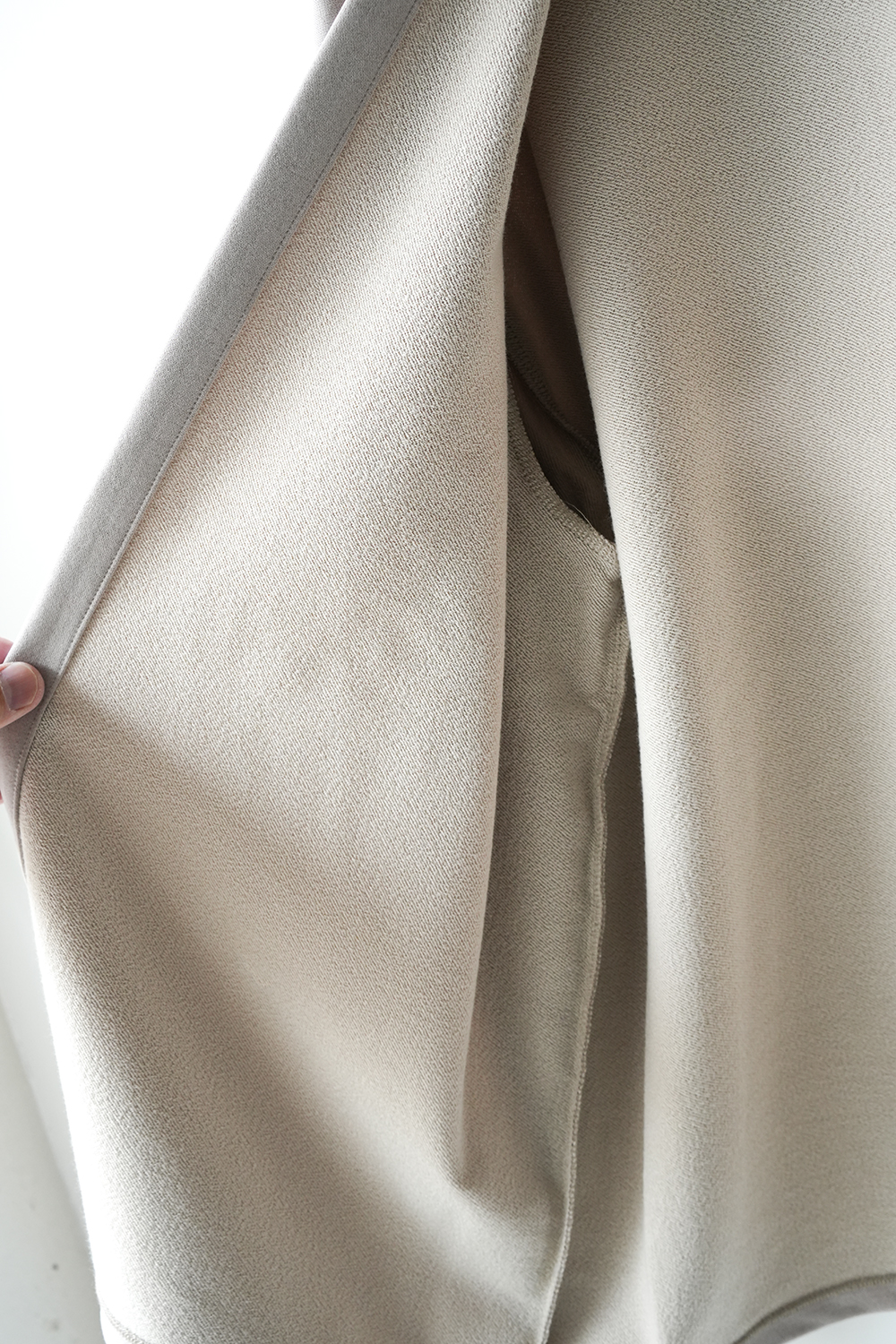 新しい価値観のある裏毛素材。定番となった独自の光沢感と風合いのキュプラ裏毛。28G高密度裏毛機で度詰めに編立てた新裏毛素材。表糸に105D高収縮キュプラ糸を使用。生地加工で、フィブリル加工(繊維の中の小さな繊維、を摩擦させ、表面を毛羽立たせる加工)することで 独特な光沢感と、ヌメリ感がございます。肌面には、スビンコットン双糸を使用してさらっとした着心地がございます。他にはないとろみが特徴です。スウェットと天竺の間の肉感にて、オールシーズン着用頂けます。新型のボタンレスカーディガン。さらっと羽織りやすいシルエットが特徴。なるべく素材の良さがでるように、仕様を工夫しております。