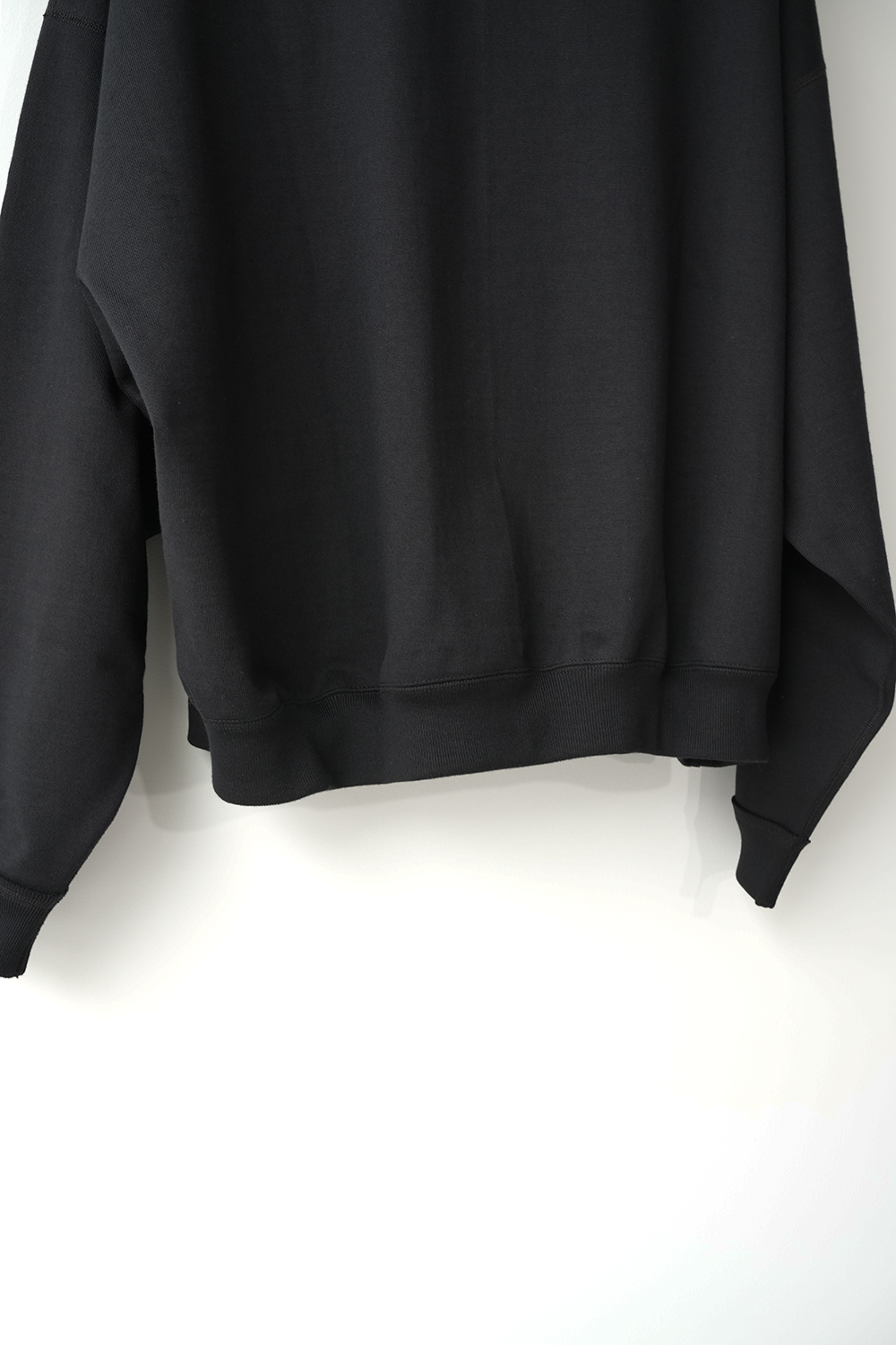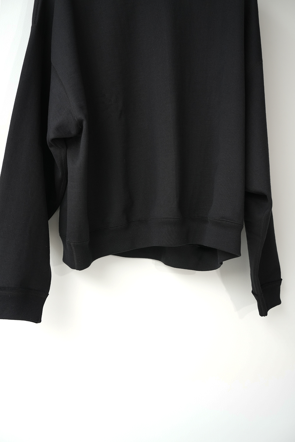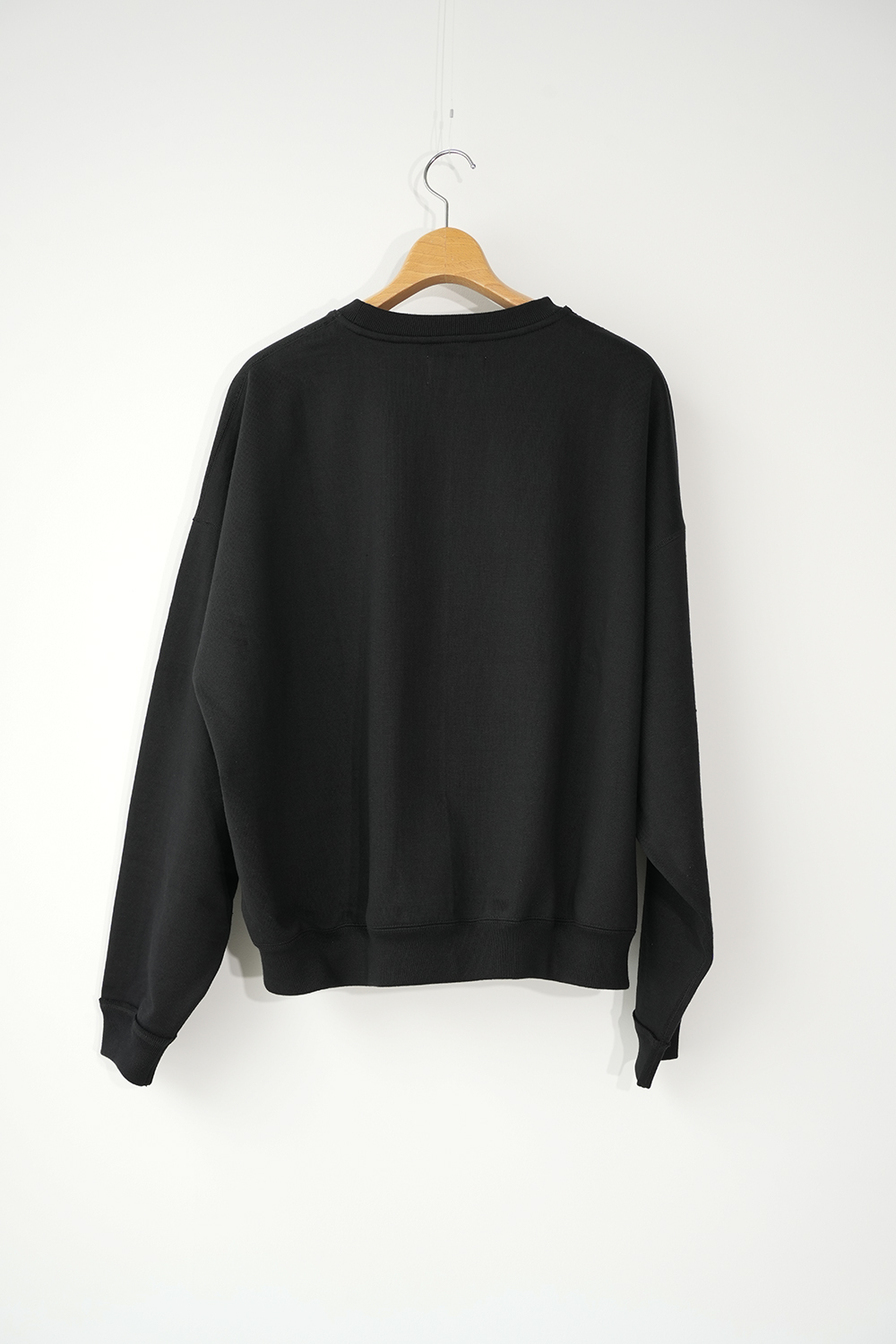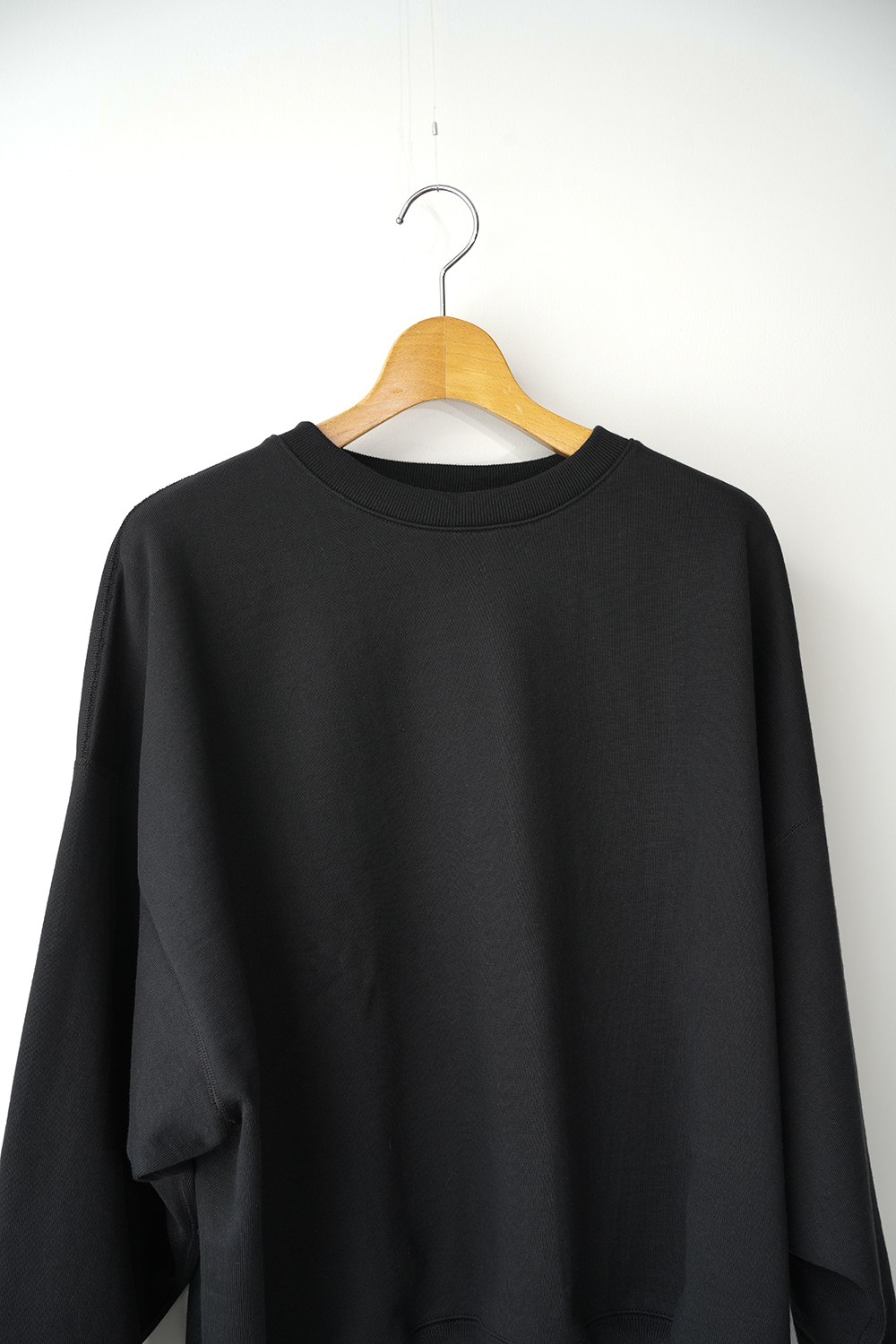 ベーシックなクルーネックスウェットを、現代のスタンダードとも言えるオーバーサイズシルエットで再構築。裾のリブがソフトにシルエットを引き締め、絶妙なドレープ感を演出。丸胴による脇の縫い目のない美しいシルエットに加え、後ろ身頃をやや長めに設定。肩が自然に落ちる、軽やかでリラックスしたラインが生まれ、360度どこから見ても美しいフォルムを実現しています。緻密に計算されたシルエットが特徴のクルーネックスウェット。着るだけでコーディネートに洗練されたモダンさをもたらす、魅力的なアイテムです。ハリコシのある上質な生地が、そのユニークなラインを鮮やかに表現。現代的なムードに調和したシルエットが、新鮮なセンスと視点をもたらし、多彩なスタイリングの可能性を広げます。厳選されたオーガニック・ピマコットンを使用。毛羽を抑えたコンパクトヤーンの繊細な糸を双糸に撚り合わせ、吊り編み機で編み上げた贅沢な生地です。一般的なスウェット地と比べ、ピリング耐性に優れ、上品な光沢感が長く持続。吊り編み機特有のふんわりとした風合いと、緻密に詰められたタフな質感が絶妙に共存。空気を含んだような豊かな膨らみと、しっかりとしたハリコシのある風合いが、着る人を魅了します。