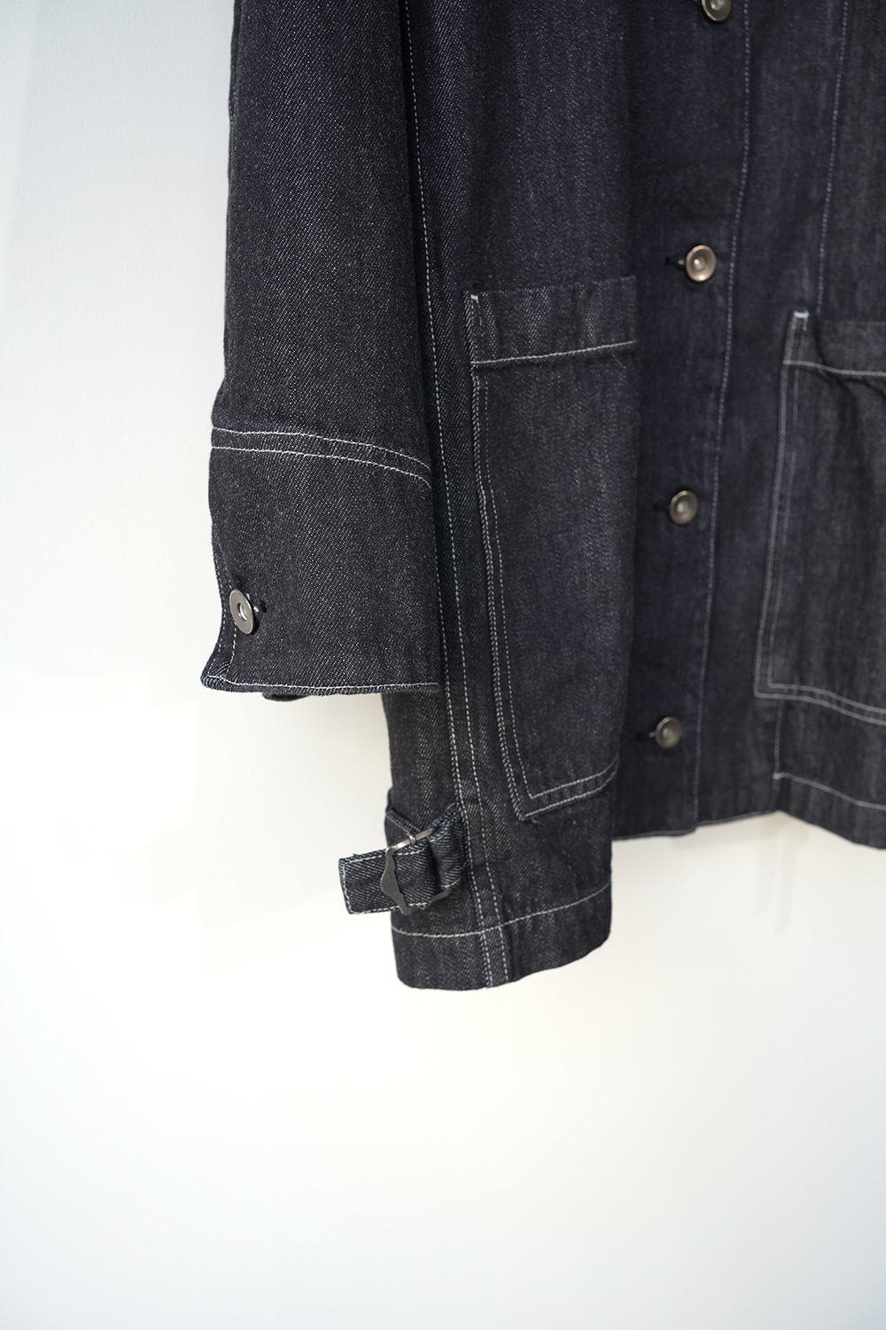 ワークディテールのカバーオール、脇のアジャスターやカフスの大きさなどディテールにもこだわった作り込み。
