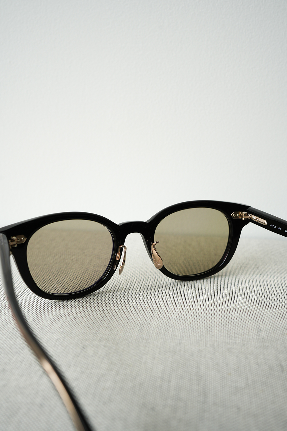 「Tradition & Innovation」(伝統と革新)、日本の伝統的な職人技術と革新的なデザインで新たなメイドインジャパンを追求する「YUICHI TOYAMA.」から最新モデルWLGのサングラスが入荷いたしました。オーセンティックなウエリントンに現代的な解釈を加え洗練させたデザイン。キーホールなどの要素をなくすことで、すっきりとプレーンな印象を持たせています。アセテートに適度なボリュームを持たせながら、メタルのヒンジやテンプル芯にはダブルアローをイメージしたオリジナルの造形的なパーツを採用。ブラックアセテートにややグリーン味のあるライトグレイカラーレンズを合わしたサングラス。普遍的なスタンダードなブラックフレームのアイウェアでありながら随所にデザイナー外山さんのアイデンティティが散りばめられております。
