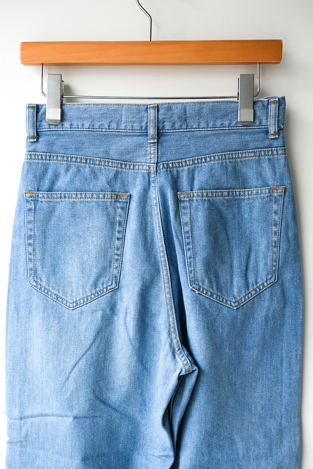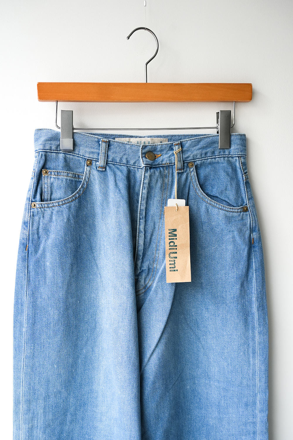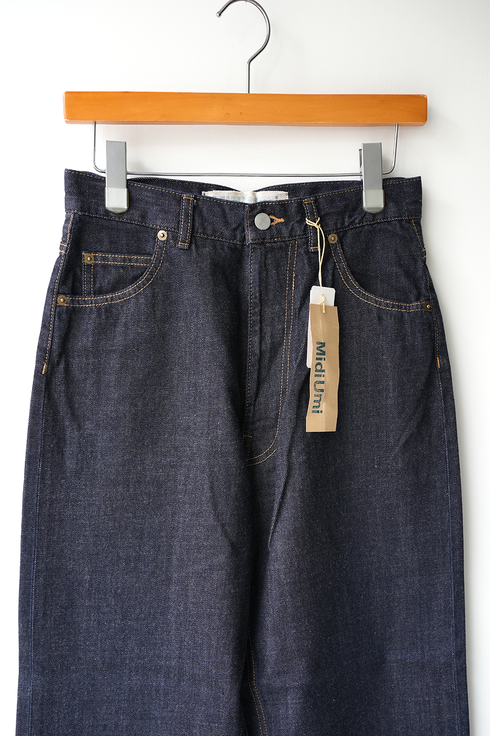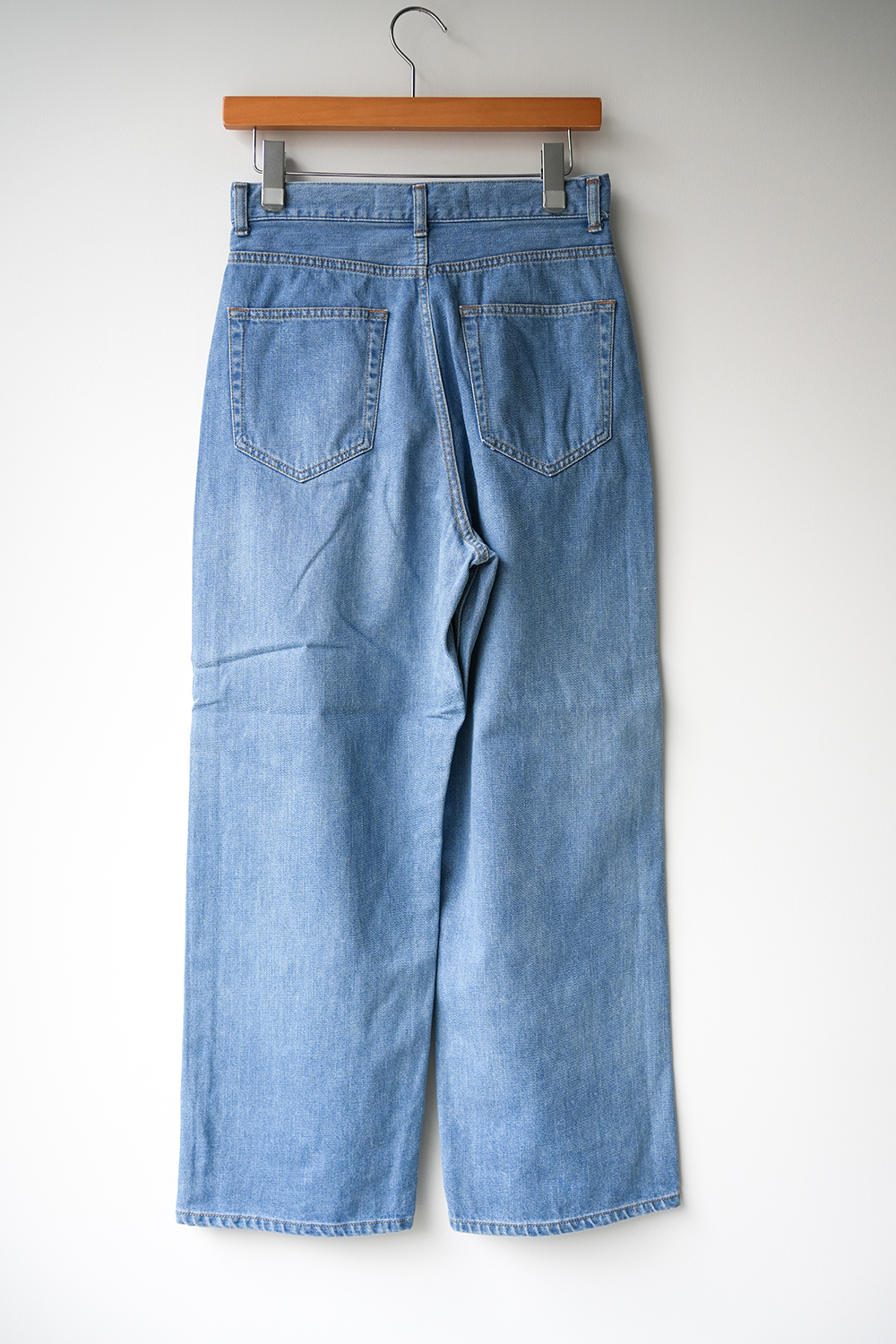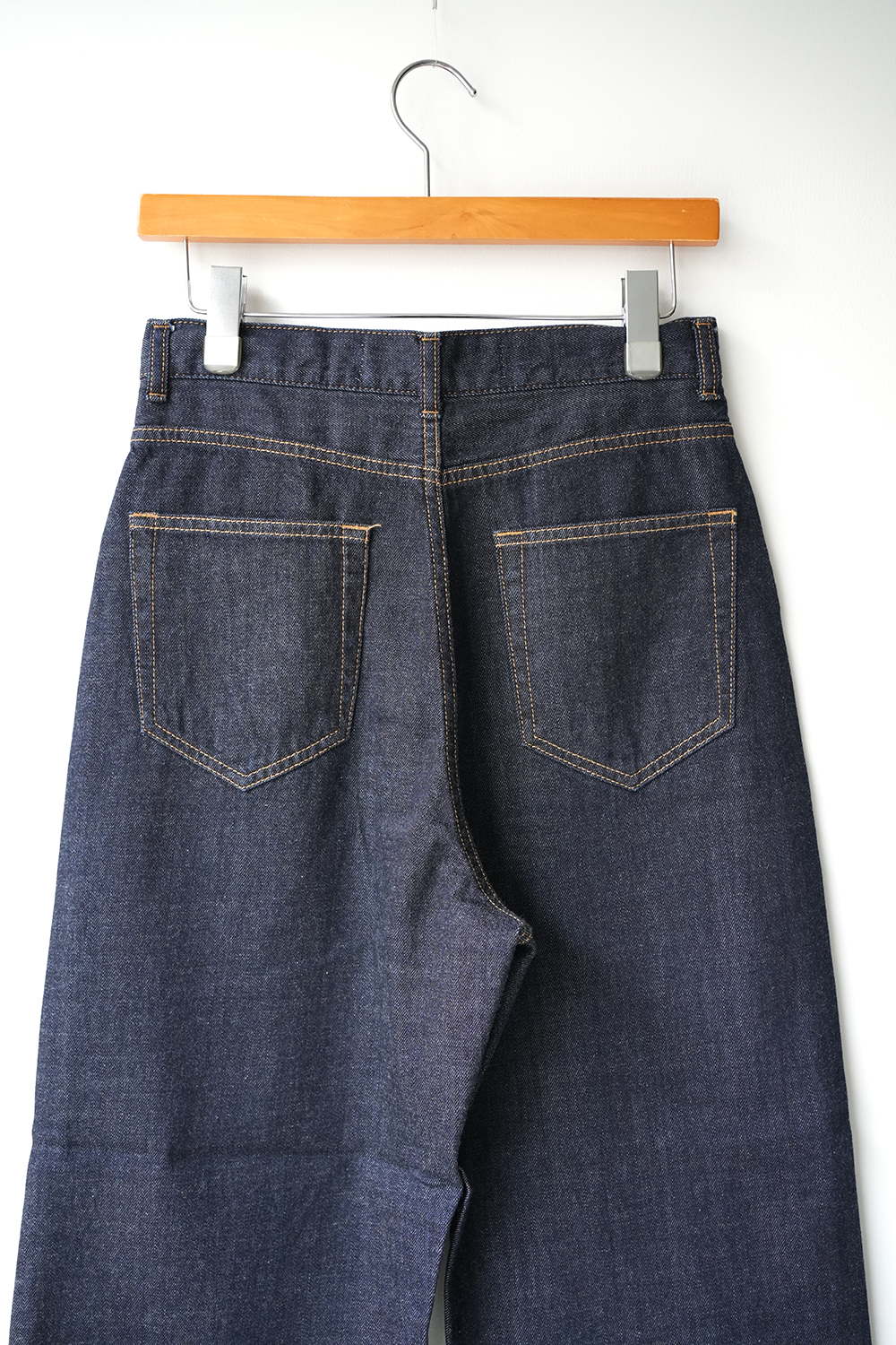 10ozの少し薄手のデニムを使用したハイウェストワイドストレートデニム。
