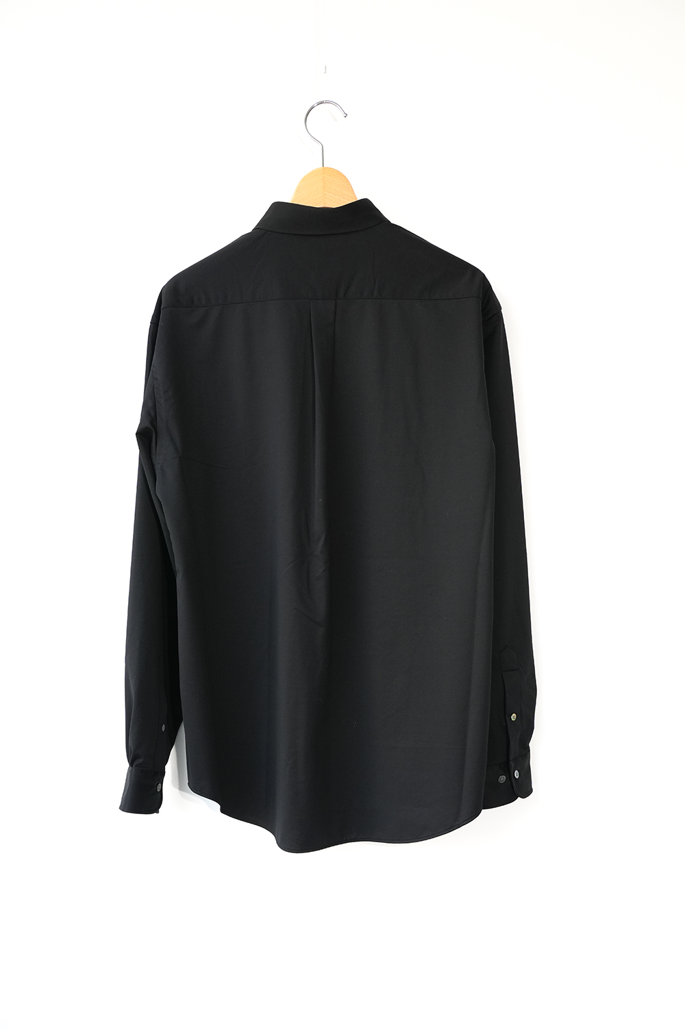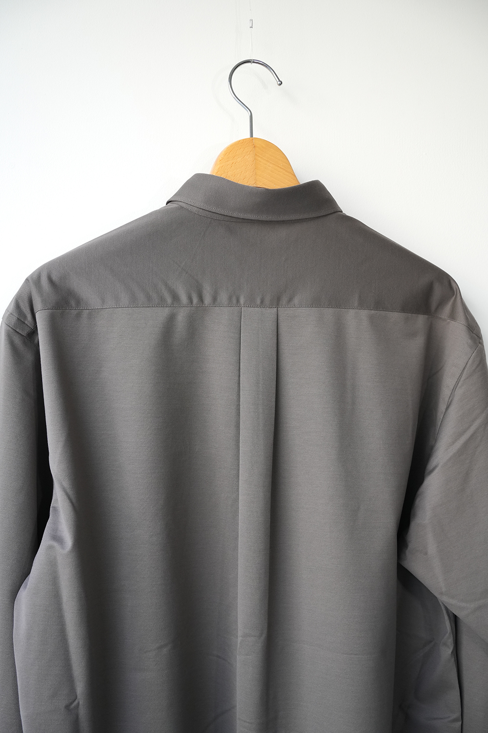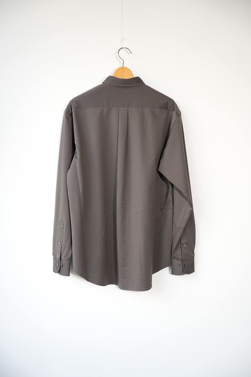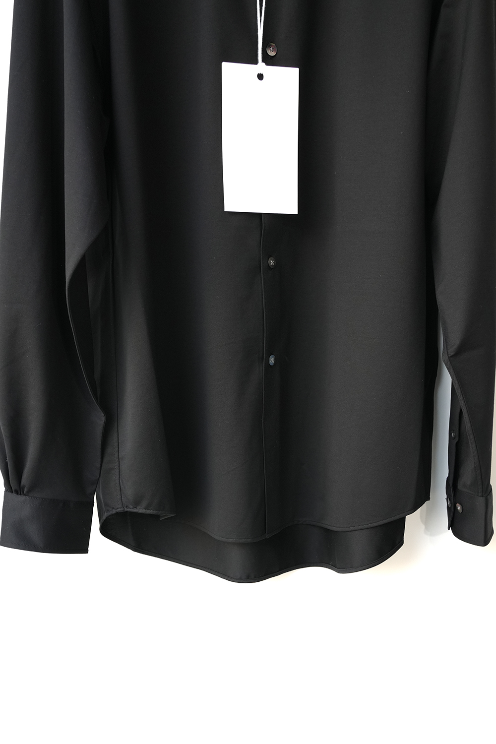 これぞ KANEMASA PHIL. 定番だからこその説得力。みんな知って欲しいど真ん中定番アイテム。“modest” 程よい肩幅から裾に向かってストンと落ちるシルエットは名前通り控え目なシルエットです。46G という、スーパーハイゲージで、タイプライターという織物の高密度平織組織を実現。 ストレッチ性が高く一度着ると止められない着心地、そして、着用時のしわなどの形態変化も少なく、イージーケア性も高い。 ハリ感、光沢感、イージーケアを持ち併せた我々にしかできないニュースタンダードシャツ地。ディティールは、ドレスシャツを採用し全て巻き伏せ本縫い仕様、貝蝶釦使いで。素材のハリ感、光沢感、そして塩梅の良いシルエット、生地が生み出すドレッシー感とパターンを融合させた、唯一無二のシャツ。袖のギャザーなどよりドレスなディティールに仕上げております。綿糸の原料は、120/1 という細番手リサイクルスビンコットンを双糸使い。糸もガス焼きしたものを使うことで、より光沢感と洗濯後の毛羽を抑えております。50D 高捲縮リサイクルナイロンを使用し、ストレッチ性を出しております。今シーズンから釦裏側にブランドロゴを入れております。KANEMASA PHIL.のスタンダードシャツ。※巻き伏せ本縫い-肌あたりが良くする為、生地の端が見えないように、一度ミシンをかけた後かぶせるように、もう一度ミシンをかける縫製方法。