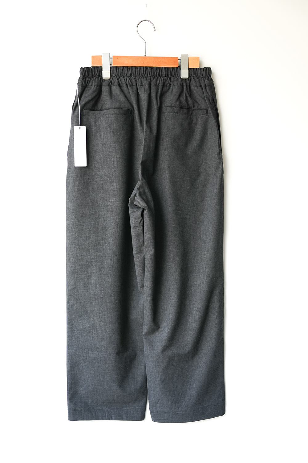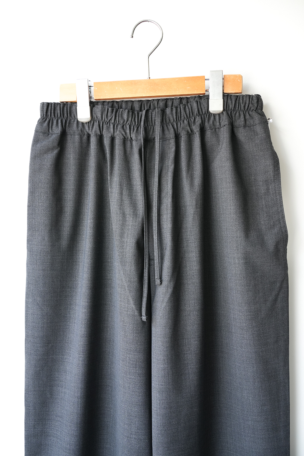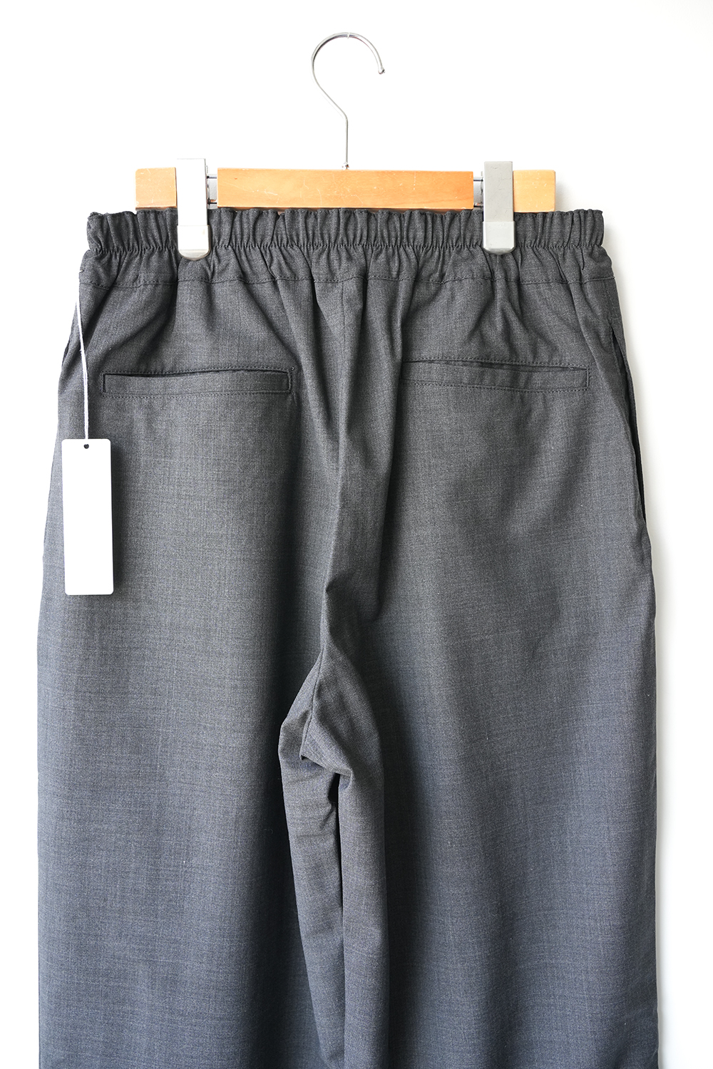 ポリエステルとウールの混紡で綺麗な印象のウィスとイージー仕様のワイドパンツ。ナチュラルストレッチ、なめらかで涼しいはき心地、家庭で洗えシワにならない万能パンツです。