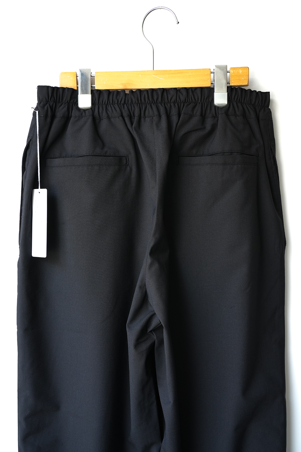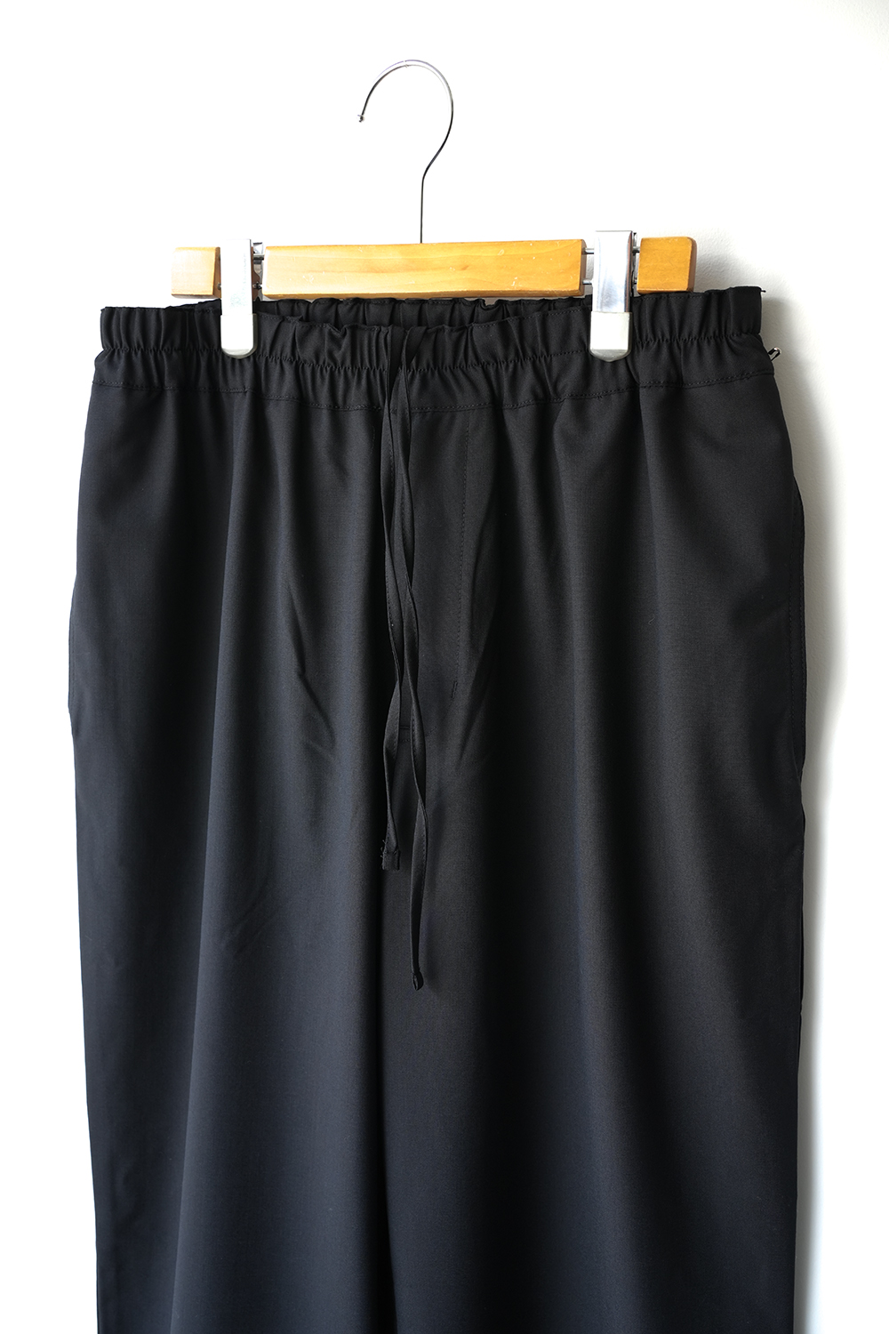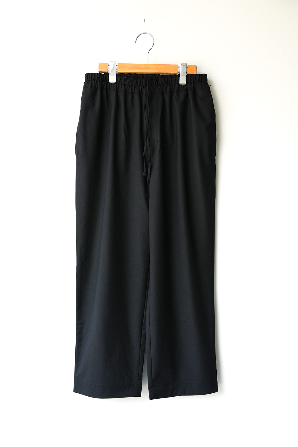 ポリエステルとウールの混紡で綺麗な印象のウィスとイージー仕様のワイドパンツ。ナチュラルストレッチ、なめらかで涼しいはき心地、家庭で洗えシワにならない万能パンツです。