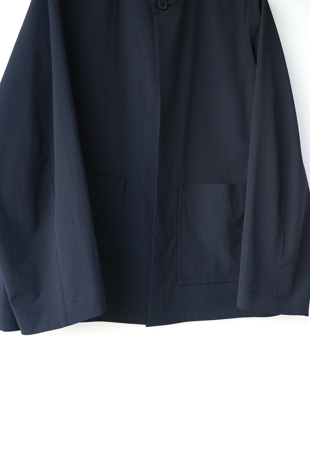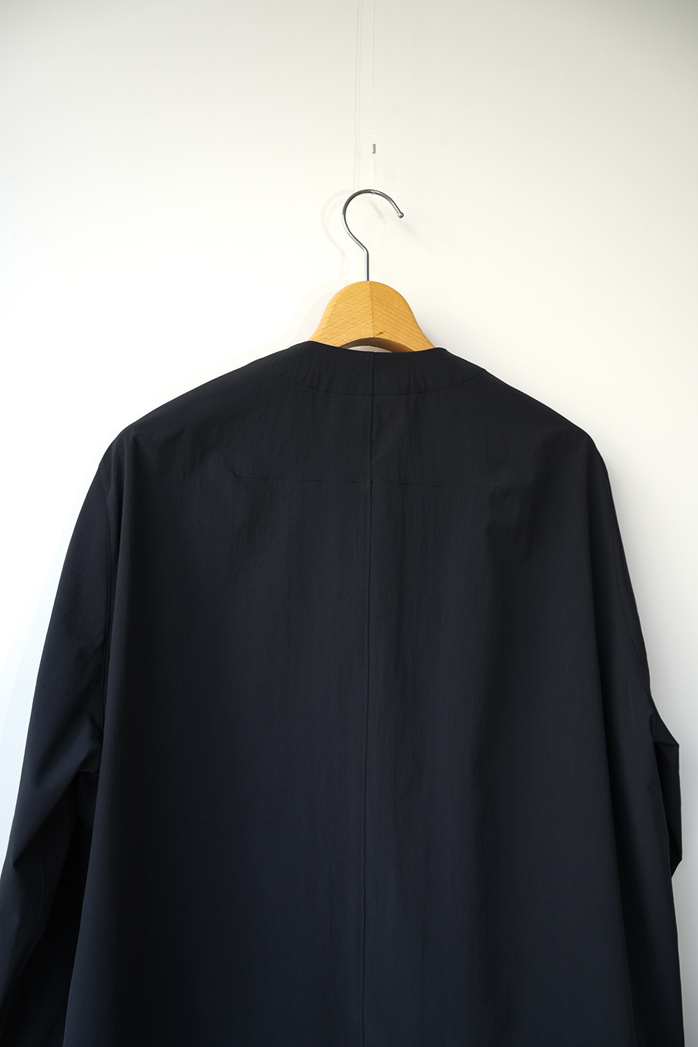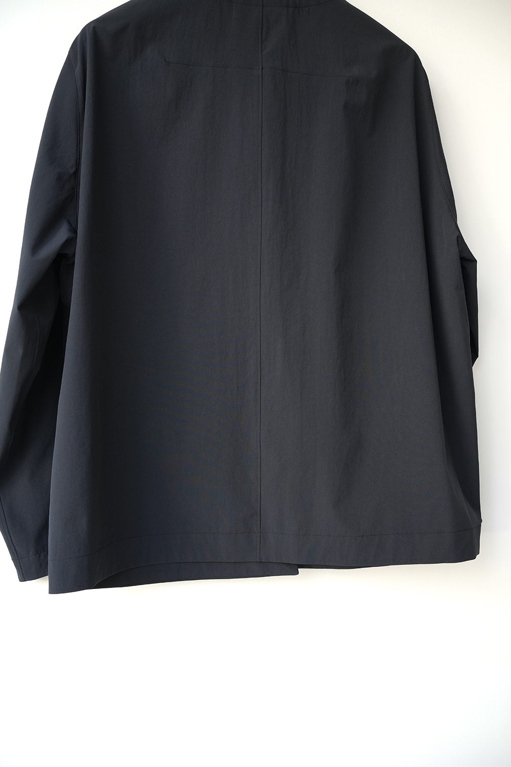 光沢のないストレッチ性のあるポリエステル糸を使用したタイプライター生地、透けにくく速乾性のある生地です。1つボタンのカーディガンシャツ。