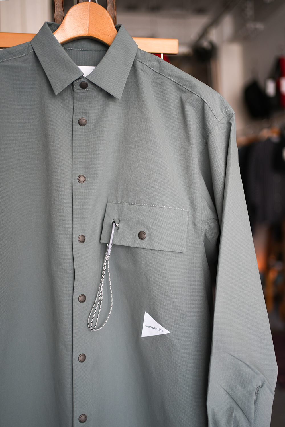 非常に細かい通気孔の組織をした、撥水、ストレッチ素材のシャツは、行動時の蒸れを防ぐ。アウトドアフィールドのみならず街スタイルでも素敵なシャツです、ポケットにカラビナ付き。