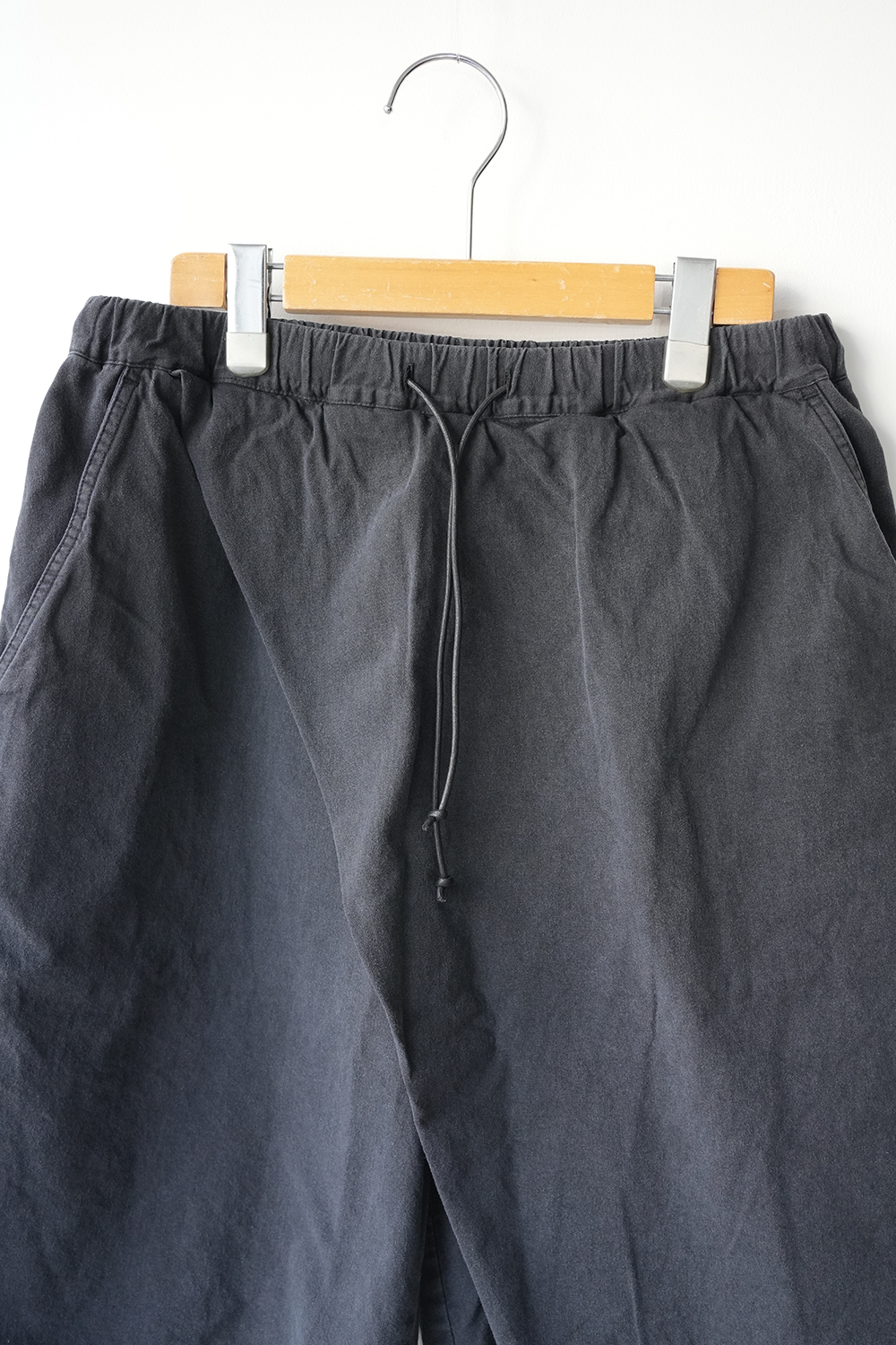 経糸にロープ染色を施したナチュラルなムラ糸を使用した6オンスライトデニム、ストーンバイオブリーチウォッシュ。