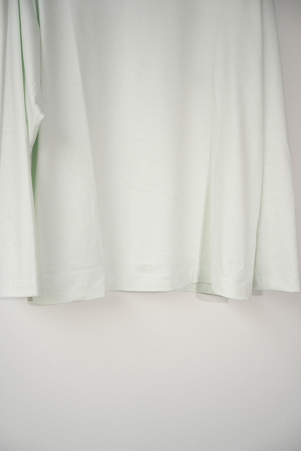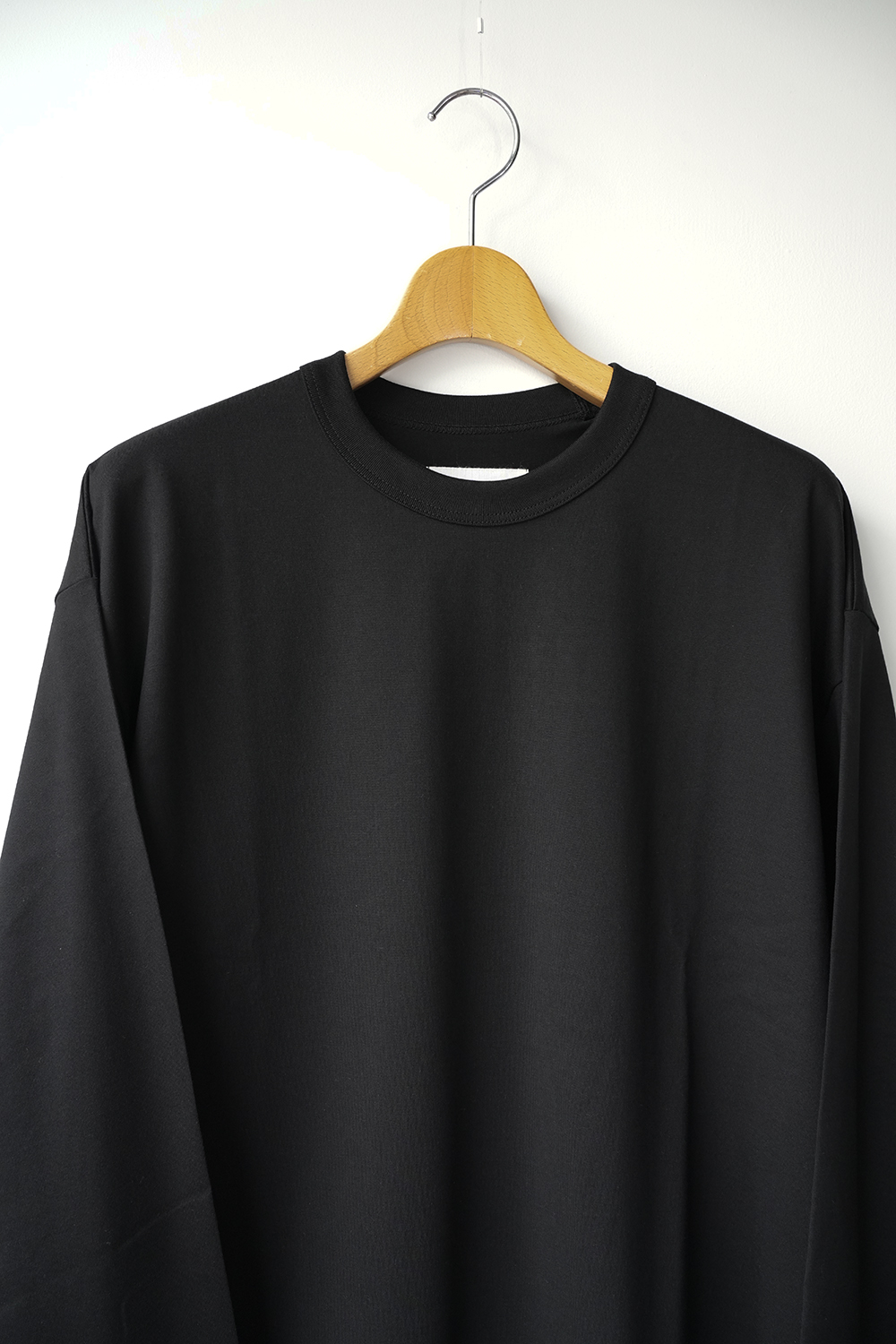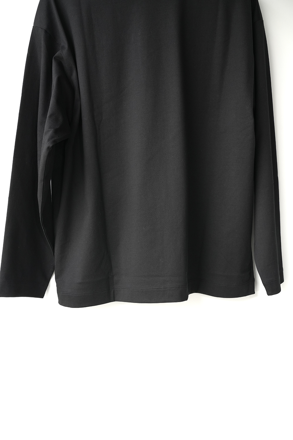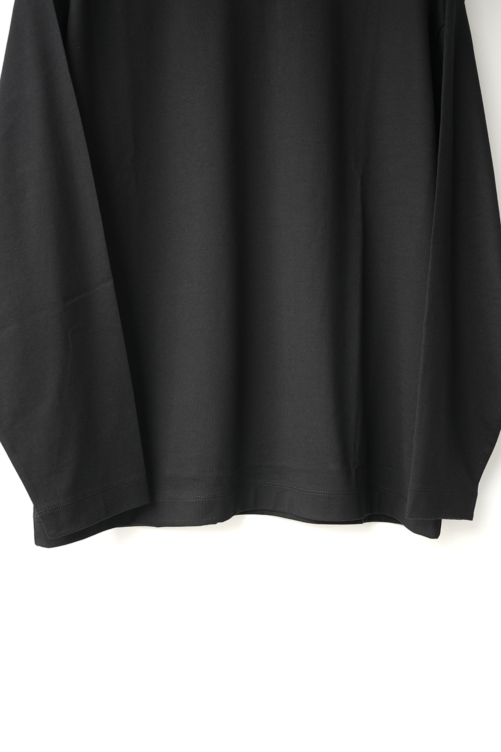 肩幅・身幅ともにゆとりを持たせた Comfort Fit Tee L/S & S/Sは、上質な素材のハリと光沢を活かし一枚で着ても存在感が際立つ設計。太めのバインダーネック仕様により首元の伸びを抑え、耐久性を高めながら端正な印象をキープします。裾には広めの折り返しを施すことで、素材の美しい表情を引き立てるモダンなアクセントを加えています。素材には、MARKAWARE独自の商標を持つ「Survival Cloth」を使用。この名称は、以前から同ブランドで展開されていた特定の組織の生地に新たに付けられたもので、現在はブランド専用の特別な生地名として位置付けられています。原料には、エジプト産の高品質なオーガニック超長綿「ギザコットン」の80番手糸を採用。この糸を贅沢に三子撚りにして織り上げることで、コットンでありながら優れた耐久性を実現するとともに、ギザコットン特有の上品で美しい表情を引き出しています。80番手ギザコットン三子撚りならではの、上品な光沢としなやかなドレープが際立つロングスリーブTシャツ。高密度に織り上げた生地は適度なハリと優れた耐久性を備え、毛羽立ちにくく、洗濯を重ねても美しいツヤを保ちます。ゆとりのあるシルエット、上質な素材を日常に取り入れたい方にふさわしい一着です。