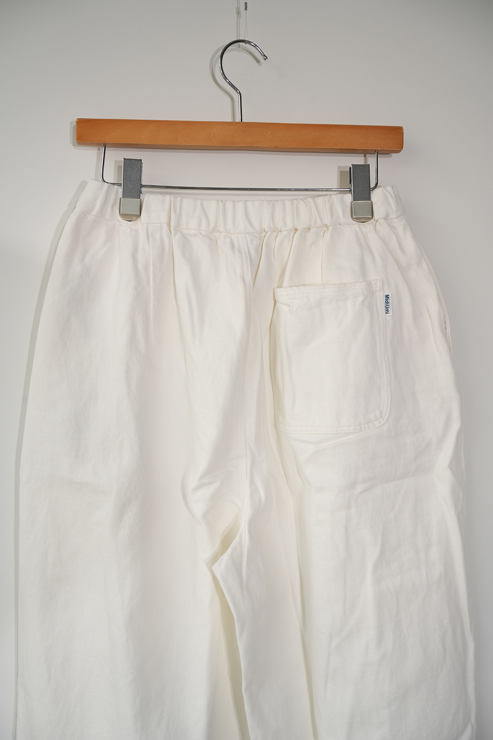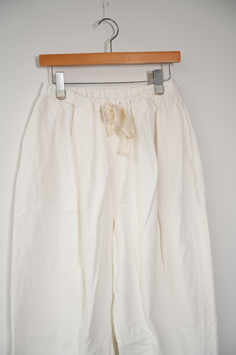 ウエストにはゆとりがたっぷり入り、裾は細めに仕上げたテーパードパンツ。股上は深めにとっており、ゆったりと履いていただけます。