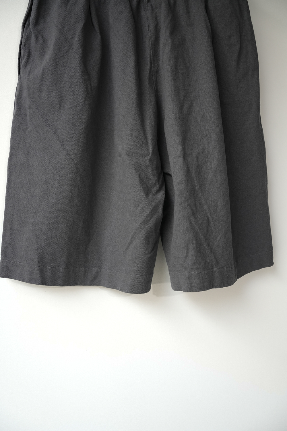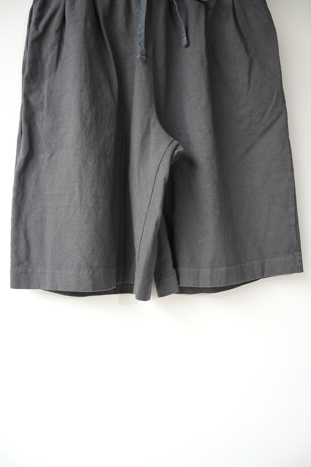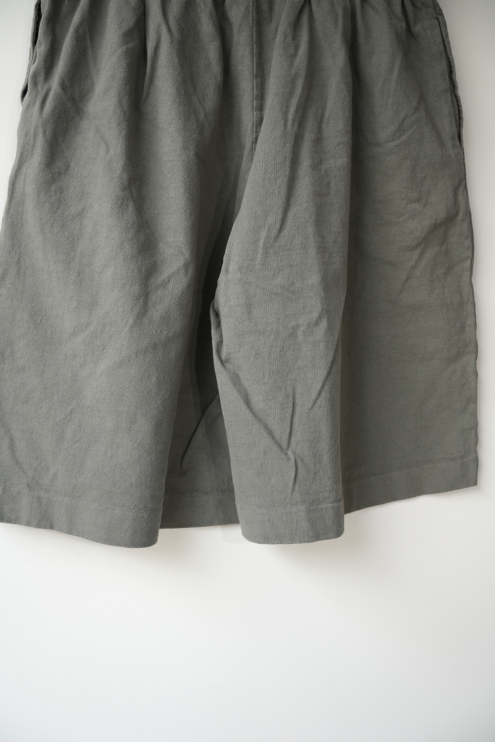 粗野でヘビーな肉感が特徴のUS天竺を製品染めしヴィンテージの風合いに洗い加工を加え仕上げられたロンTとショートパンツ。