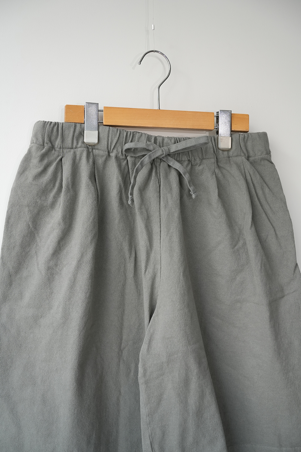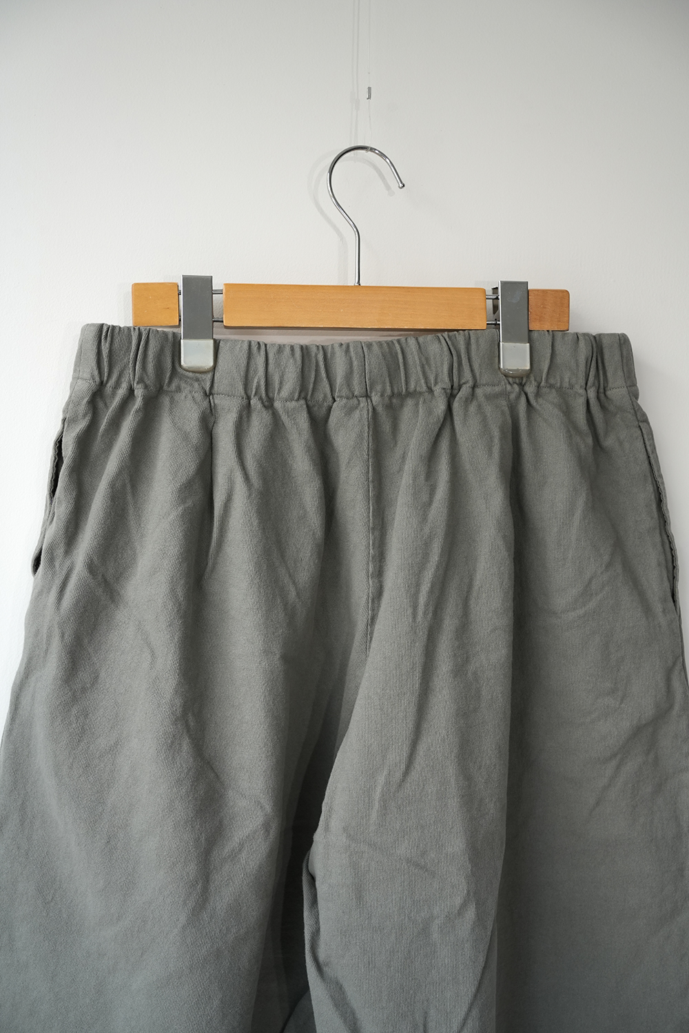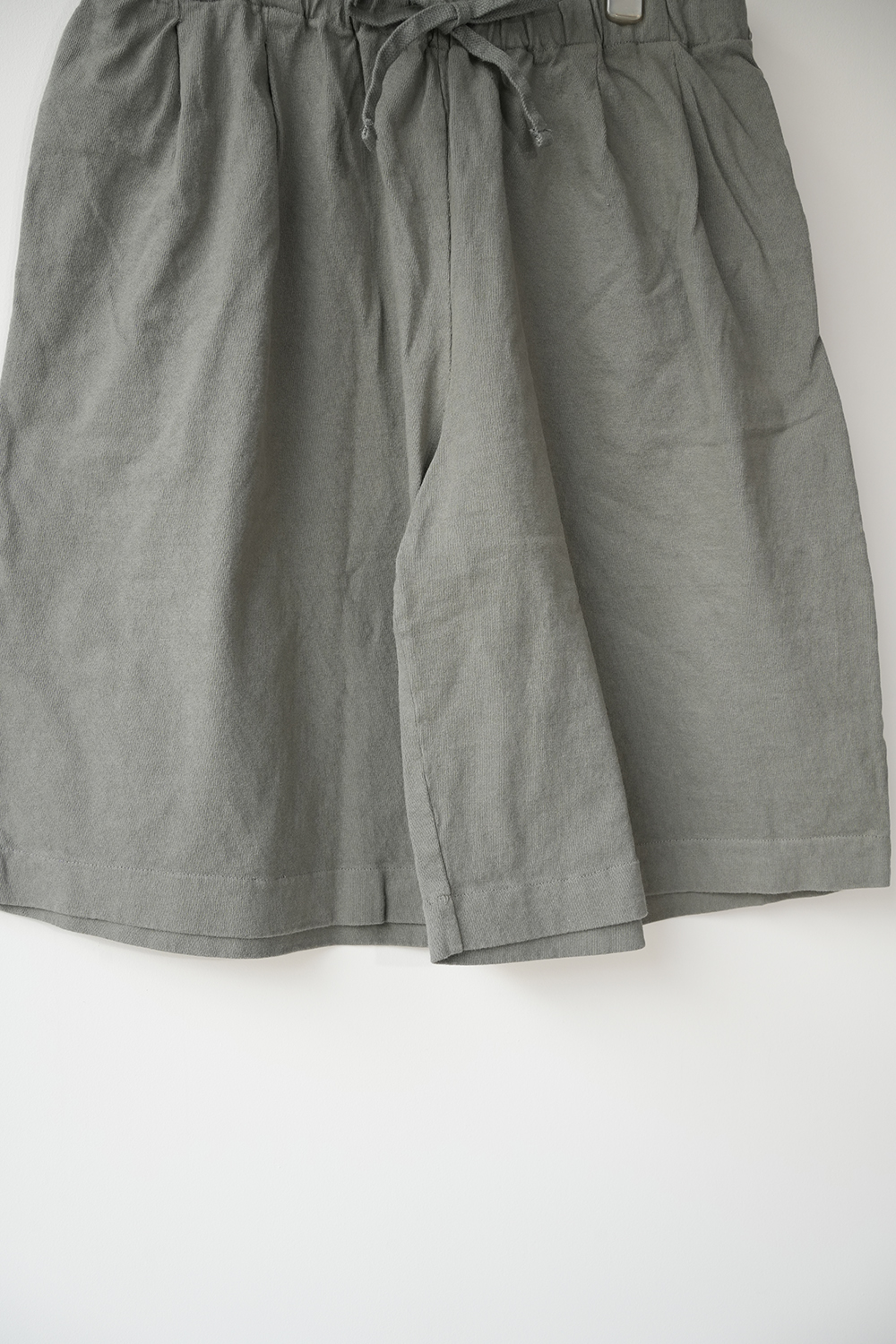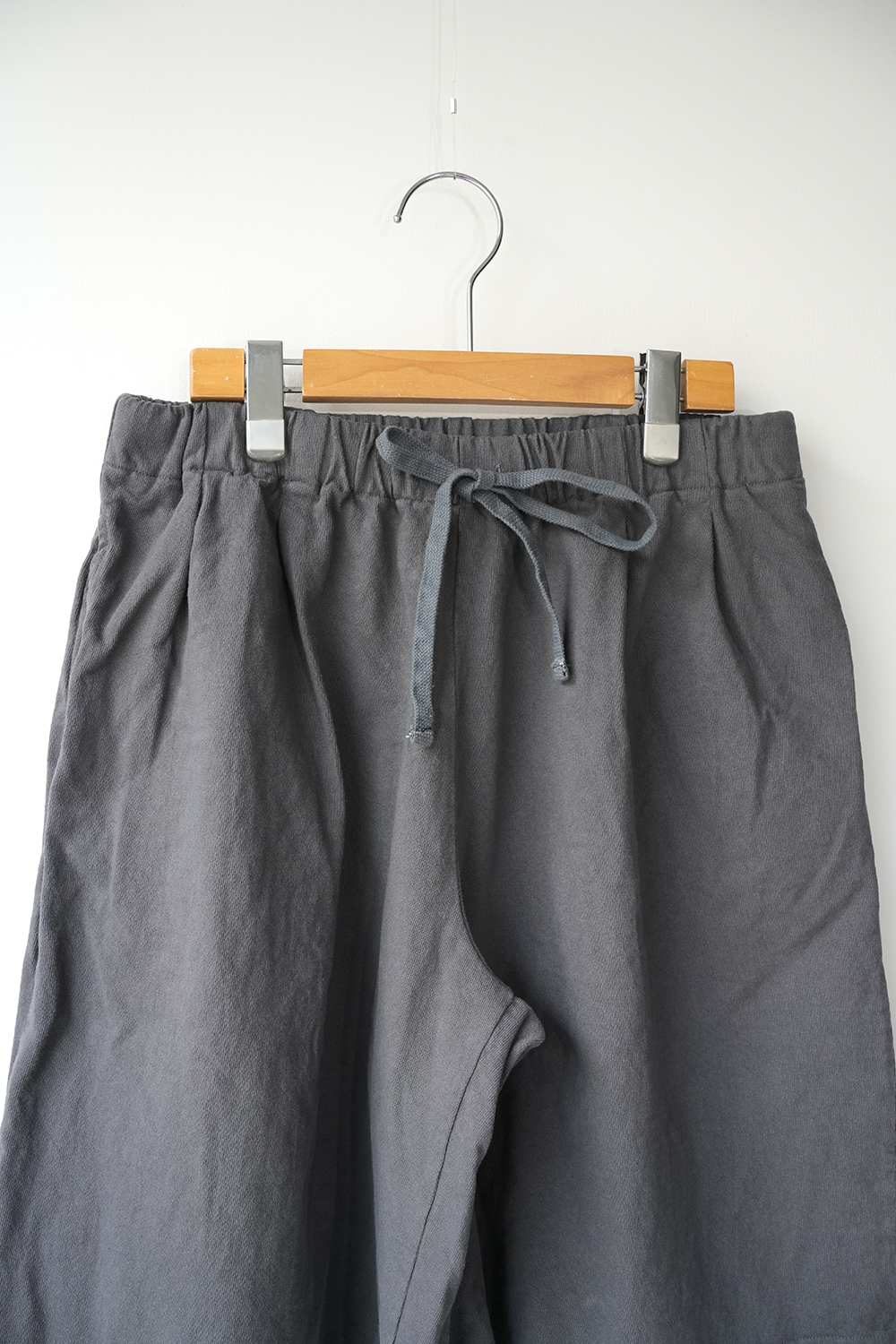 粗野でヘビーな肉感が特徴のUS天竺を製品染めしヴィンテージの風合いに洗い加工を加え仕上げられたロンTとショートパンツ。