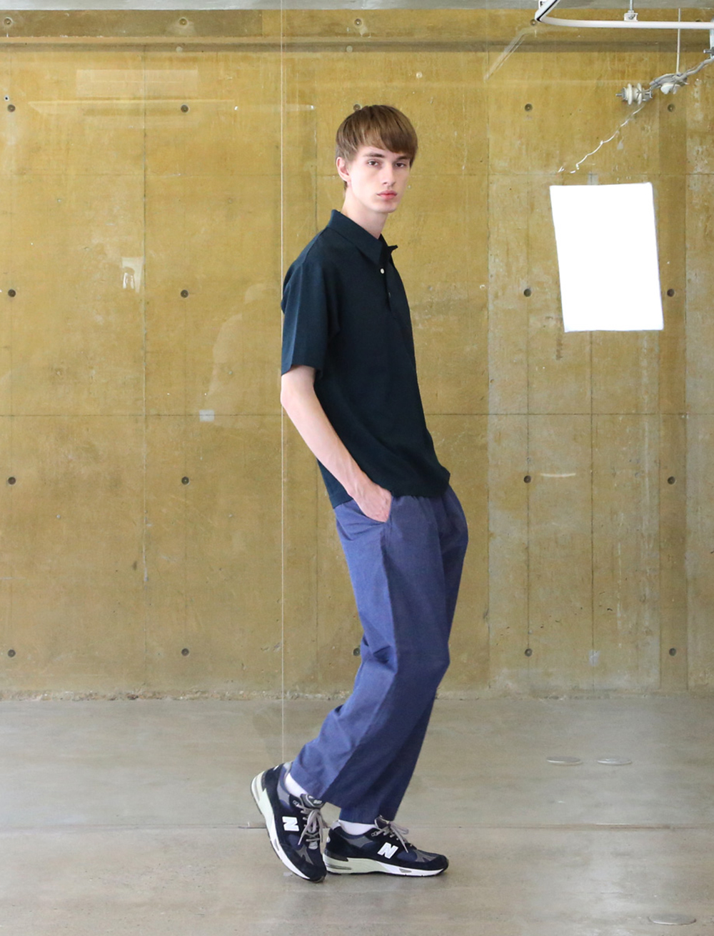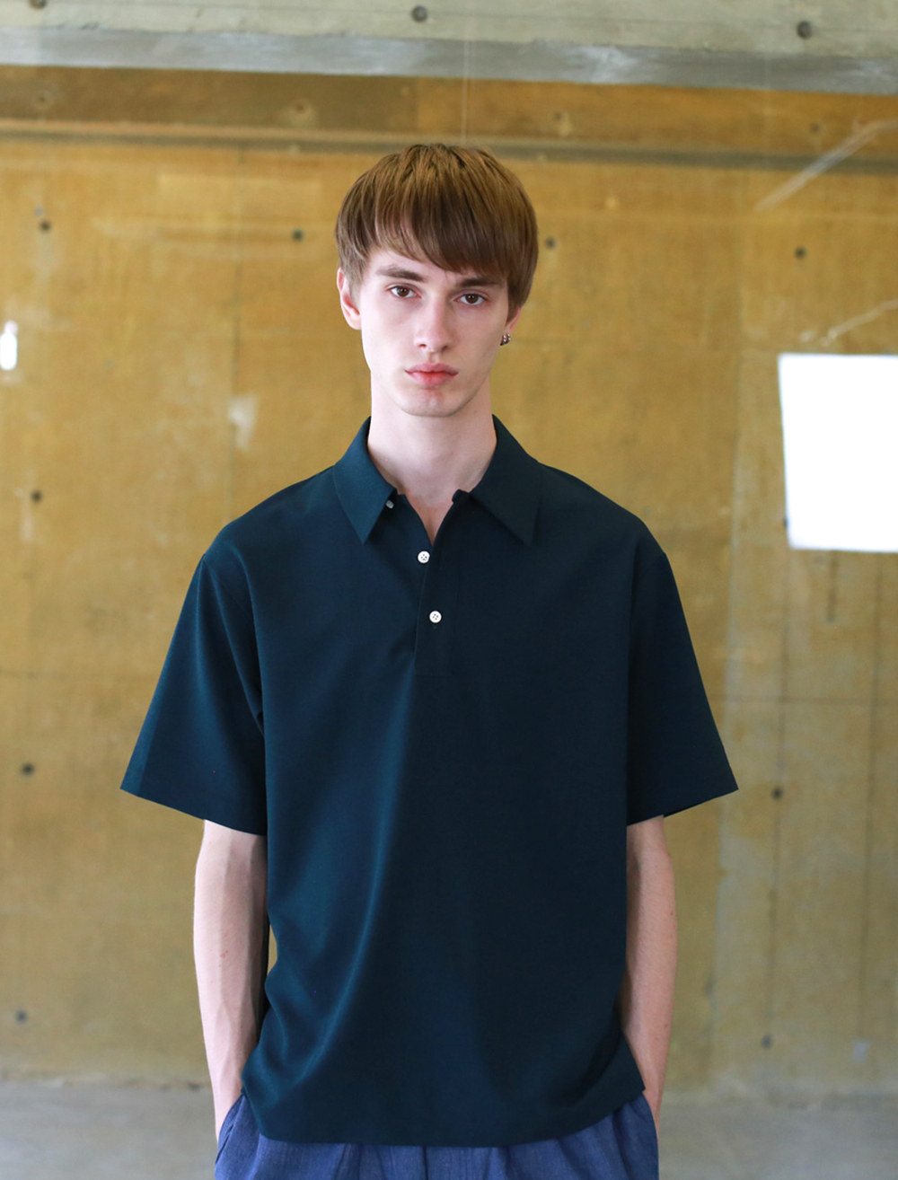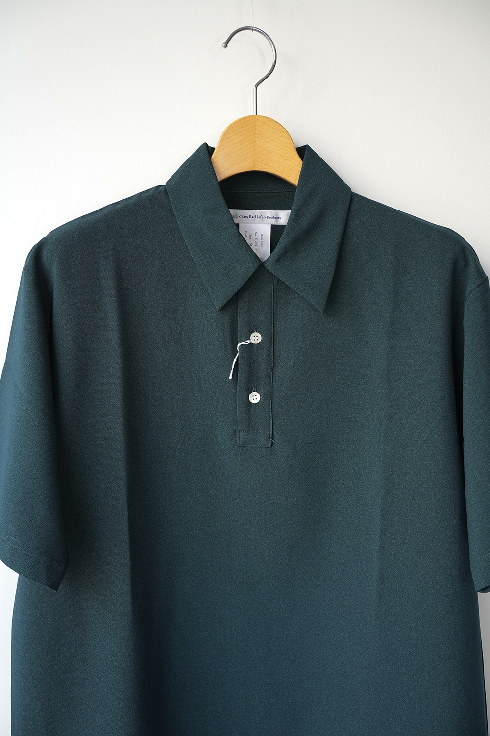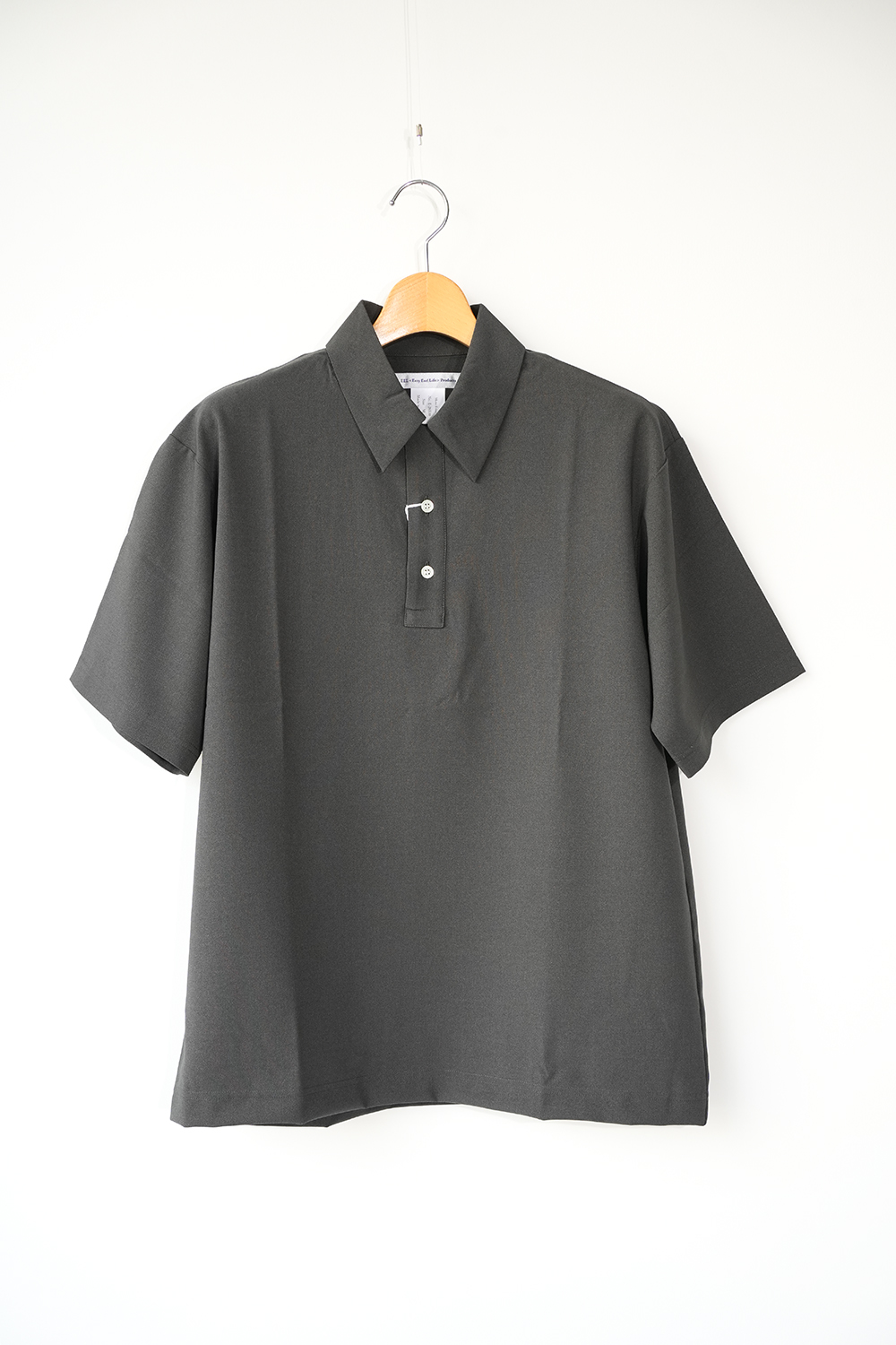 ドライタッチで速乾性に優れたEEL Prodcuts定番のポロシャツ。第一ボタンをループにした開襟デザイン、ポリエステル素材の快適さ。きめ細かな綺麗な表情と滑らかな肌触りのポリエステル生地、綺麗な襟、無駄のないシンプルなデザインはカジュアルで扱いやすいポリエステル素材でありつつも上品な印象。シルエットはオーバーサイズ過ぎないゆったりさ。ポロシャツでありながらカジュアルになりすぎない綺麗さ。