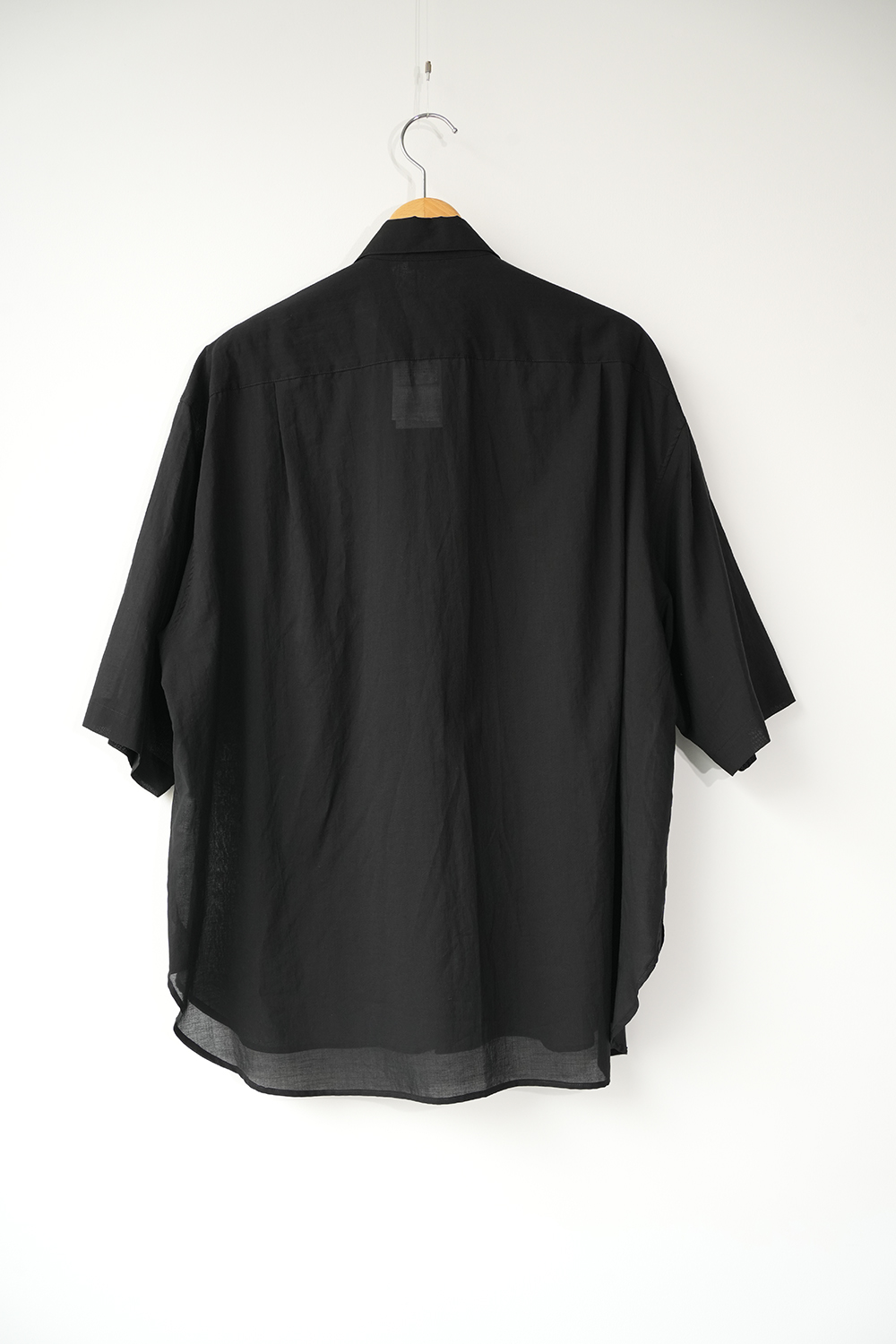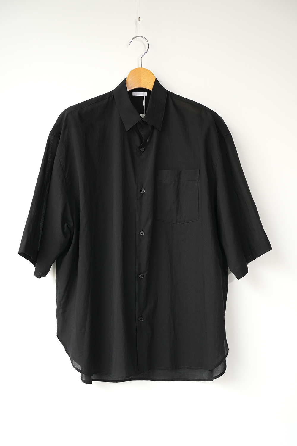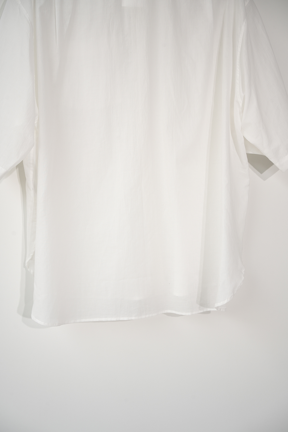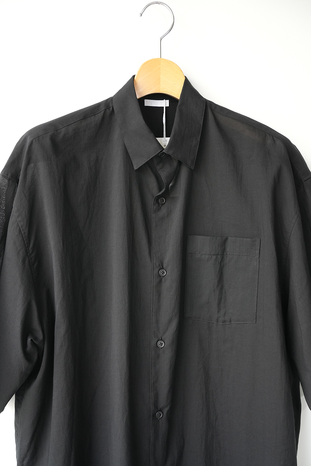 Blanc YMの定番のワイドシャツをハーフスリーブにてリリース。ゆったりとしたオーバーサイジングなシルエットを生かし袖筒幅も広く、肘丈程のゆったりとしたデザイン。また後ろ身頃は通常よりもやや大きめにとり、横、後ろ姿はシャツの範疇ながらライトアウターの 様な雰囲気もございます。静岡の遠州地方で織られた100%コットン生地を使用。糸はスーピマ超長綿。ほんの僅かに毛羽を残した柔らかな質感とスーピマコットン特有の光沢があり、光を通す様な適度な透け感があります。洗い晒しで着用しても馴染む程良いシワ感で着用できる素材です。またとても計量な素材でSSシーズンのレイヤードとしてはストレスフリーです。