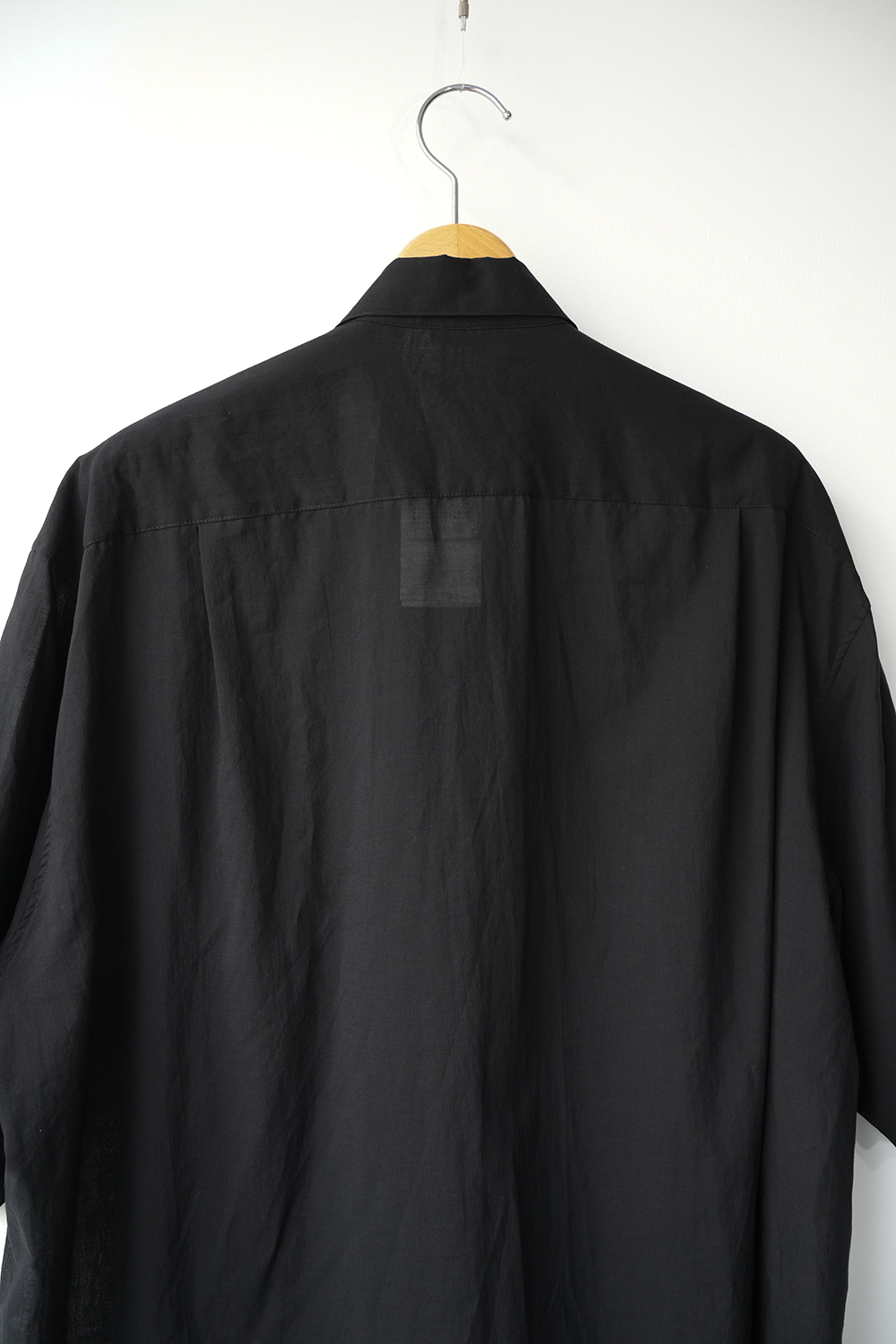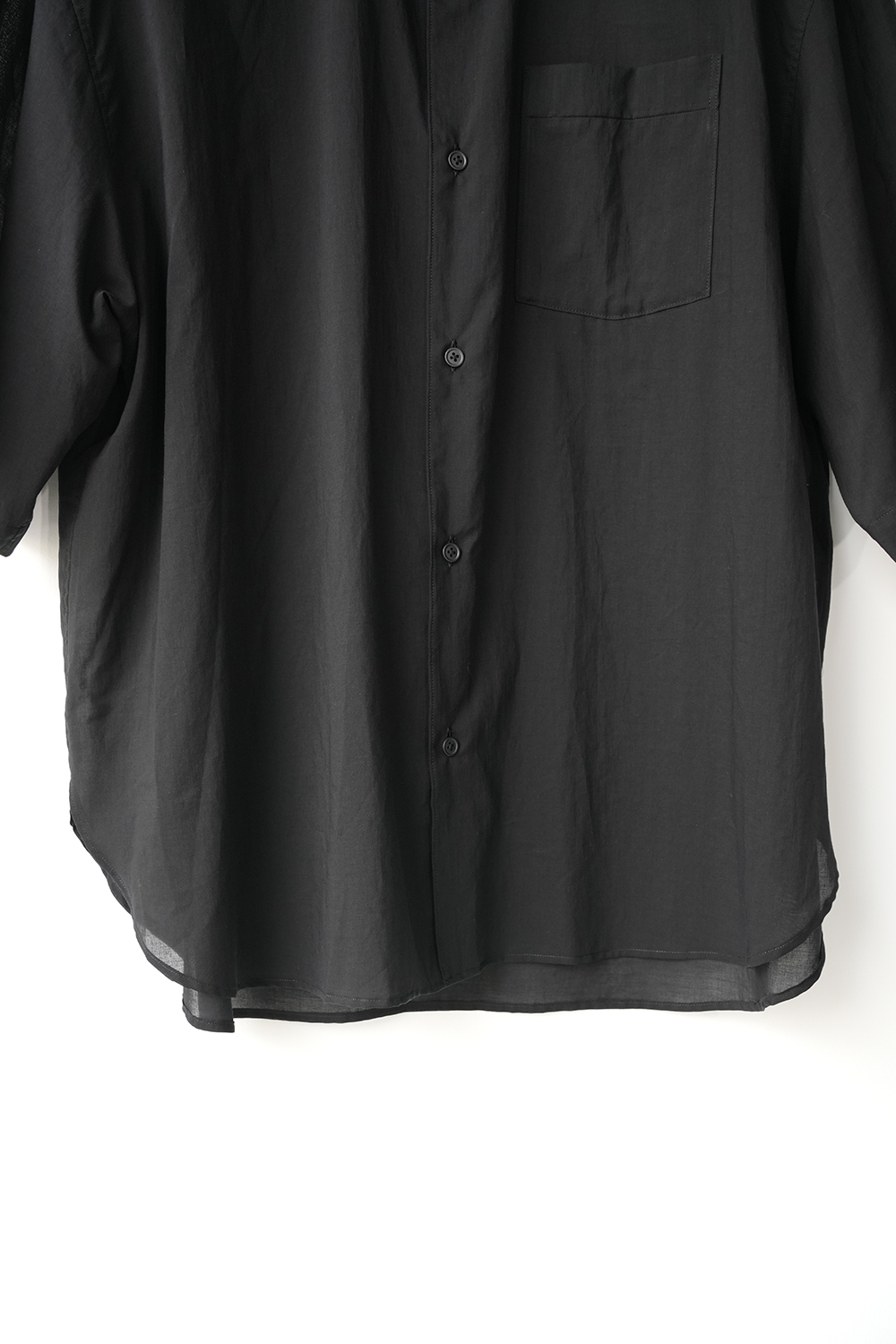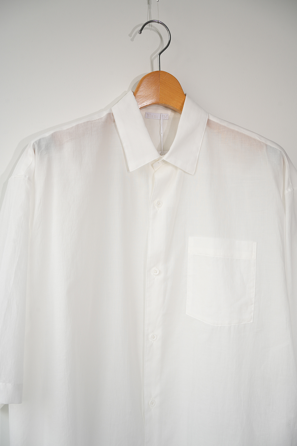 Blanc YMの定番のワイドシャツをハーフスリーブにてリリース。ゆったりとしたオーバーサイジングなシルエットを生かし袖筒幅も広く、肘丈程のゆったりとしたデザイン。また後ろ身頃は通常よりもやや大きめにとり、横、後ろ姿はシャツの範疇ながらライトアウターの 様な雰囲気もございます。静岡の遠州地方で織られた100%コットン生地を使用。糸はスーピマ超長綿。ほんの僅かに毛羽を残した柔らかな質感とスーピマコットン特有の光沢があり、光を通す様な適度な透け感があります。洗い晒しで着用しても馴染む程良いシワ感で着用できる素材です。またとても計量な素材でSSシーズンのレイヤードとしてはストレスフリーです。