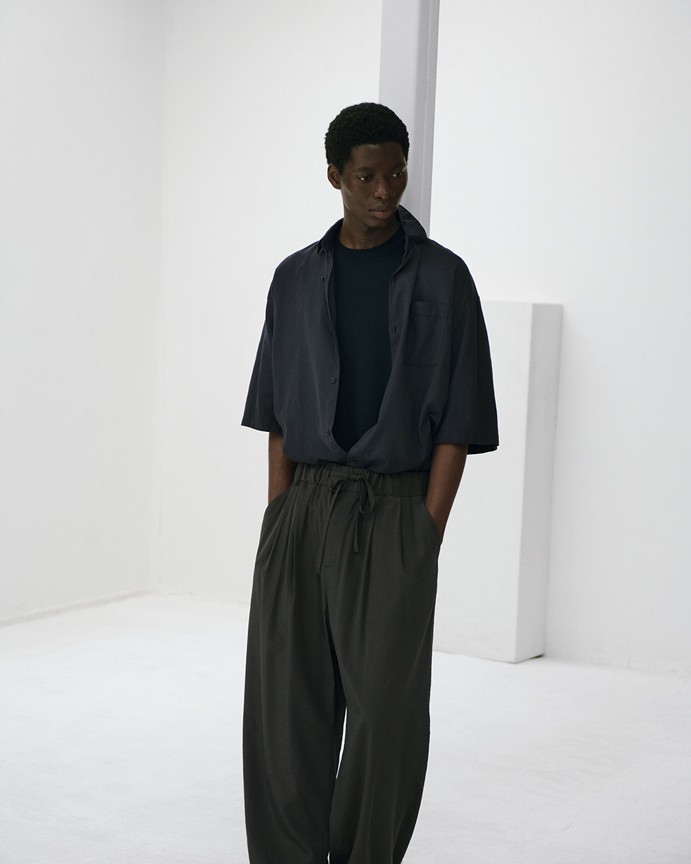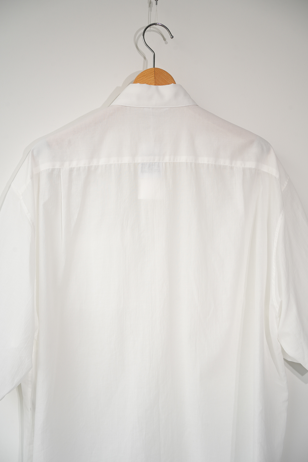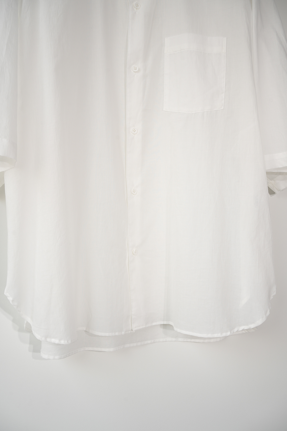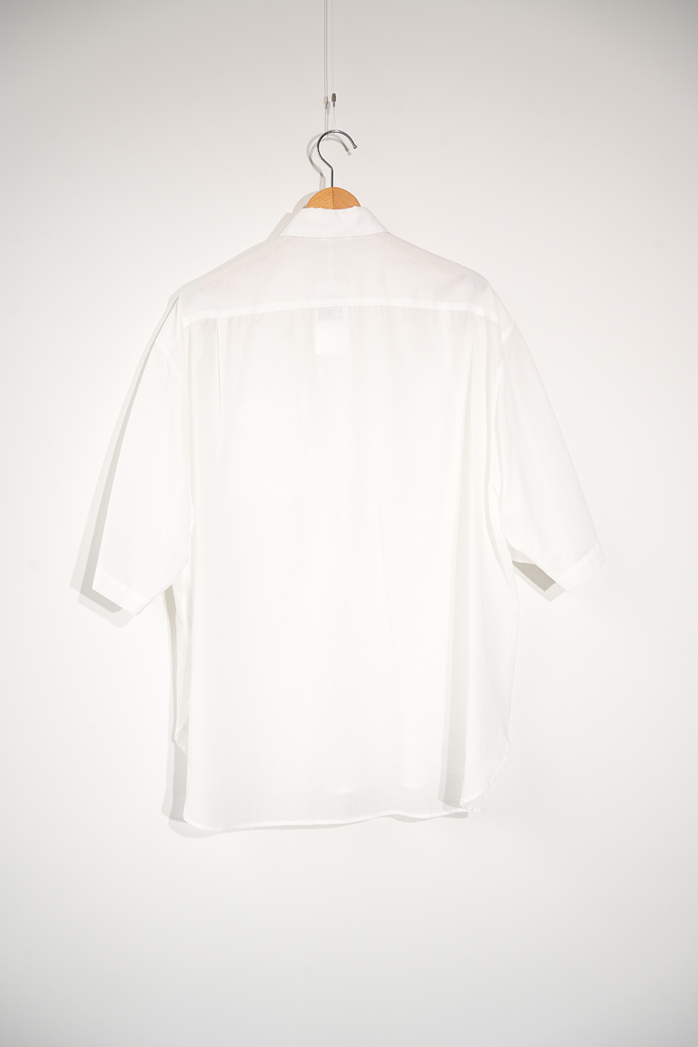 Blanc YMの定番のワイドシャツをハーフスリーブにてリリース。ゆったりとしたオーバーサイジングなシルエットを生かし袖筒幅も広く、肘丈程のゆったりとしたデザイン。また後ろ身頃は通常よりもやや大きめにとり、横、後ろ姿はシャツの範疇ながらライトアウターの 様な雰囲気もございます。静岡の遠州地方で織られた100%コットン生地を使用。糸はスーピマ超長綿。ほんの僅かに毛羽を残した柔らかな質感とスーピマコットン特有の光沢があり、光を通す様な適度な透け感があります。洗い晒しで着用しても馴染む程良いシワ感で着用できる素材です。またとても計量な素材でSSシーズンのレイヤードとしてはストレスフリーです。