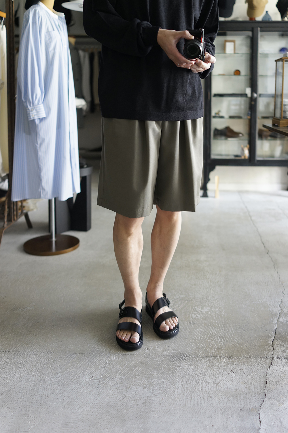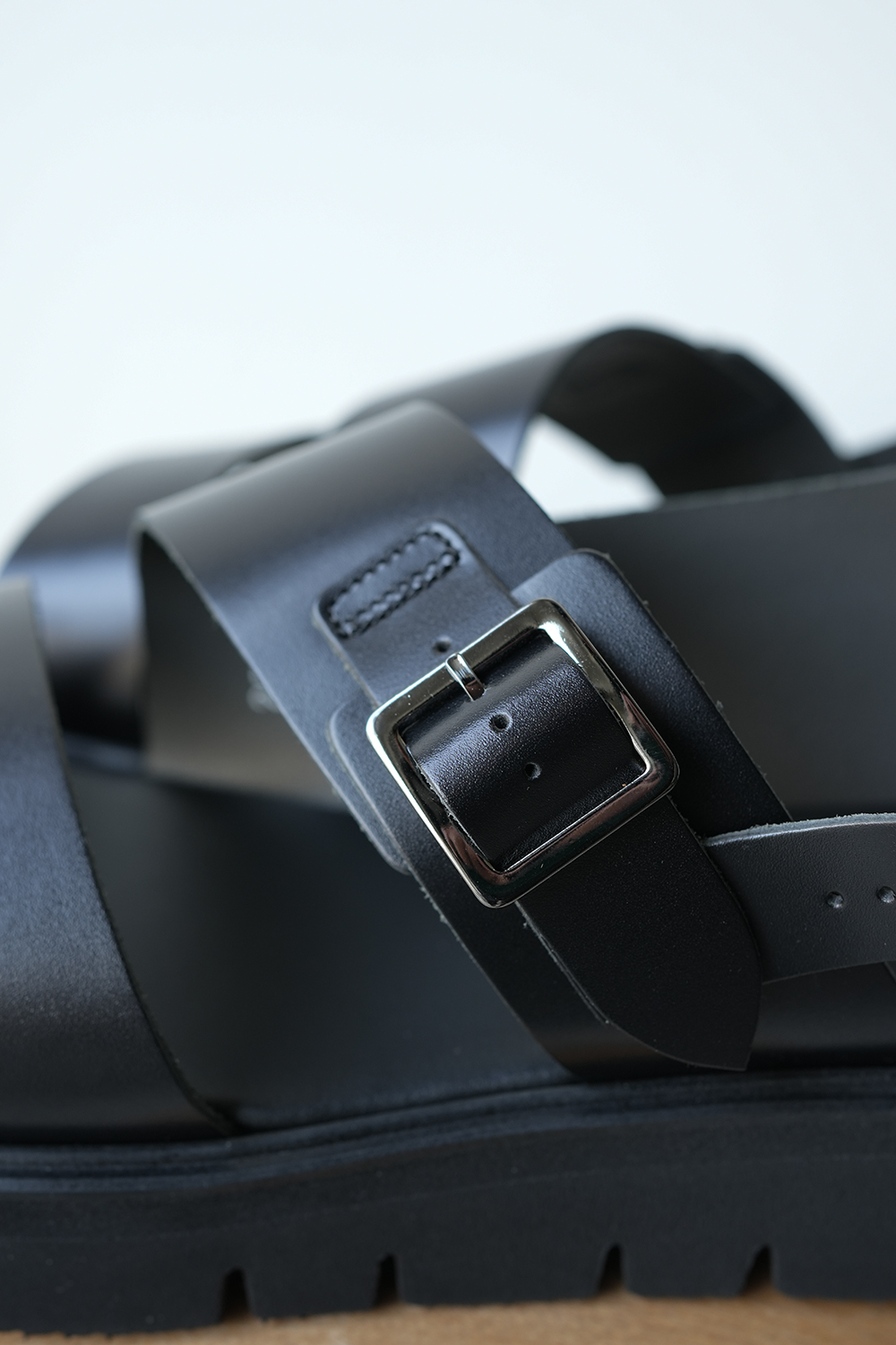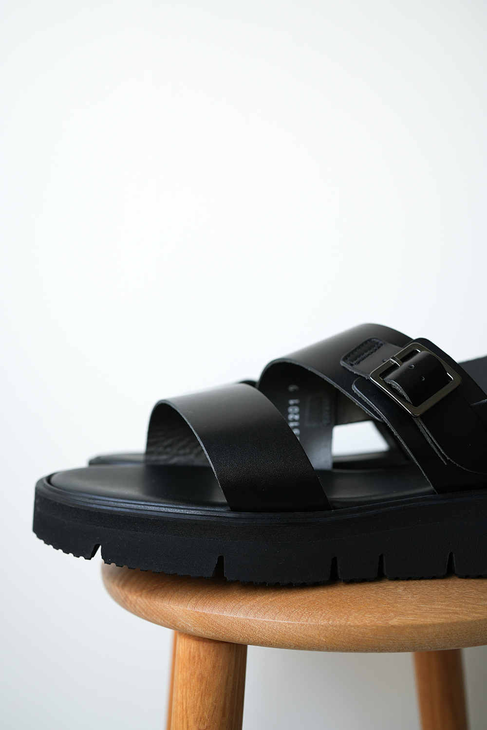 シューズデザイナー竹ケ原敏之介氏によるシューズブランド「foot the coacher(フットザコーチャー)」。過度な装飾を排し、上質なレザーを用いシンプル仕上げたバックベルトサンダル。ソールにVIBRAM社の”GLOXI CUT”を使用、軽量で柔らかな履き心地。アッパー部分には滑らかで柔らかいステアハイドを採用、足に馴染みが良く、耐久性にも優れています。シンプルなデザインで、フィッティングに欠かせない箇所にのみ革のベルトを配し、甲周りとかかとのバックルでアジャストする事で、より自分のサイズにフィットさせることができるサンダルです。ブラックレザーに馴染むクロームブラックの金具も、トレンドに流されすぎない適度なソールの厚みも良い。耐久性と質感高きレザー、作り込み・質の高さ、フットベットとヴィブラムソール、ベルト配置の相乗による歩きやすさ。