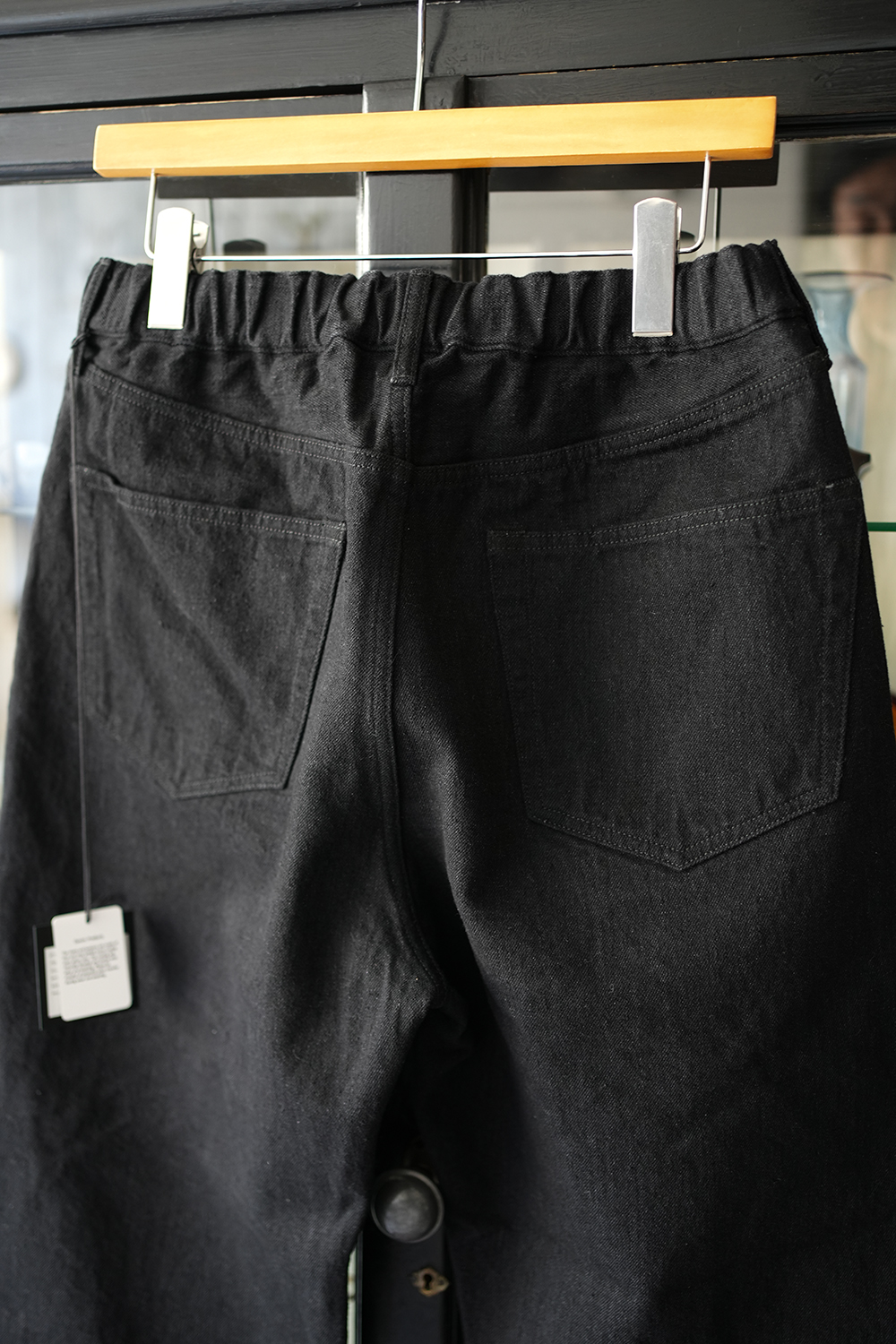岡山県の機屋にてゆっくりと丁寧に織り上げた独自の風合いが特徴のセルビッチデニム。製織後、水洗いや防縮加工を含めた仕上げ加工が一切施されて いない生機デニムを使用しております。旧式織機を用いる為生産効率は非常に低く、1時間にわずか数メートルしか織る事が出来ません。しかし、この丁寧な製法により経糸に無理な 張力を掛ける事無く、シャリ感と膨らみを併せ持つ他には無い風合いの生地に仕上がりました。厳選した綿花を使用し繊維の質感や長さを吟味。さらにシャリ感のある手触りを実現する為、撚り回数や形状にも細部まで拘っています。