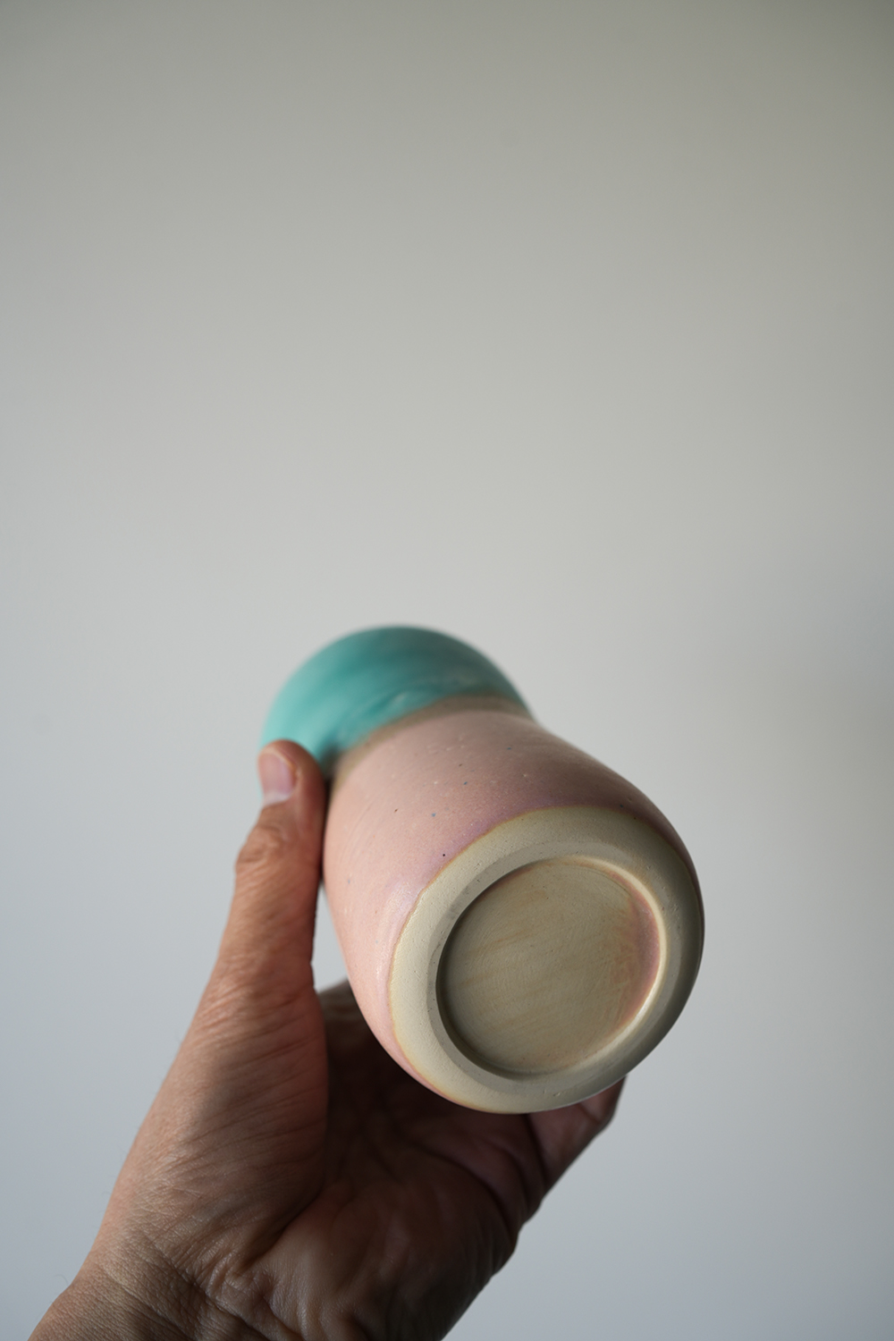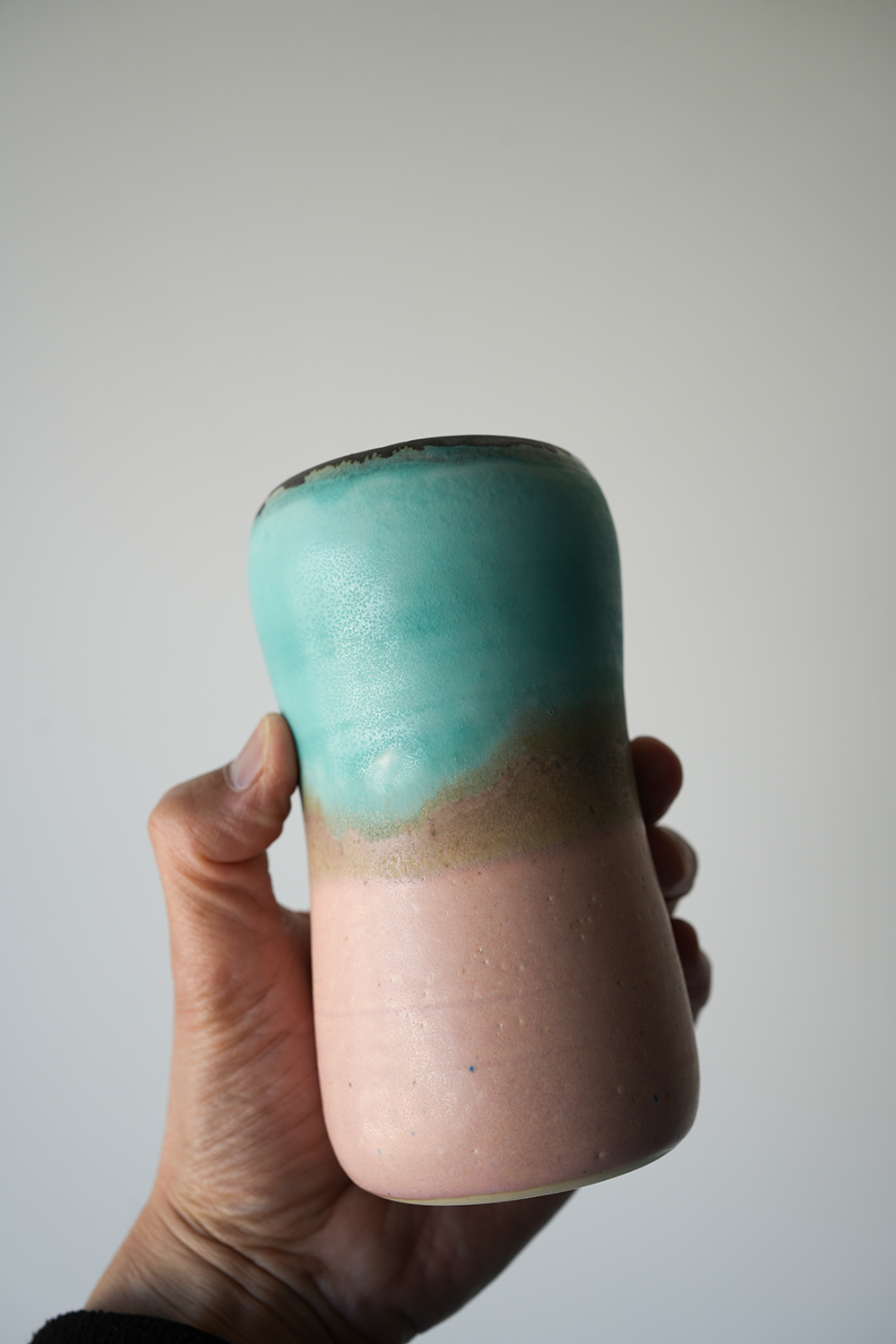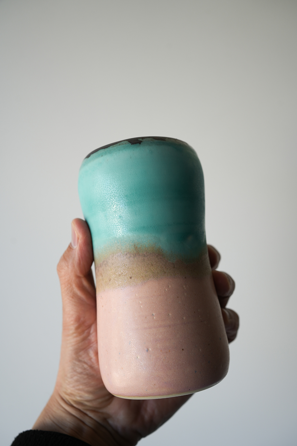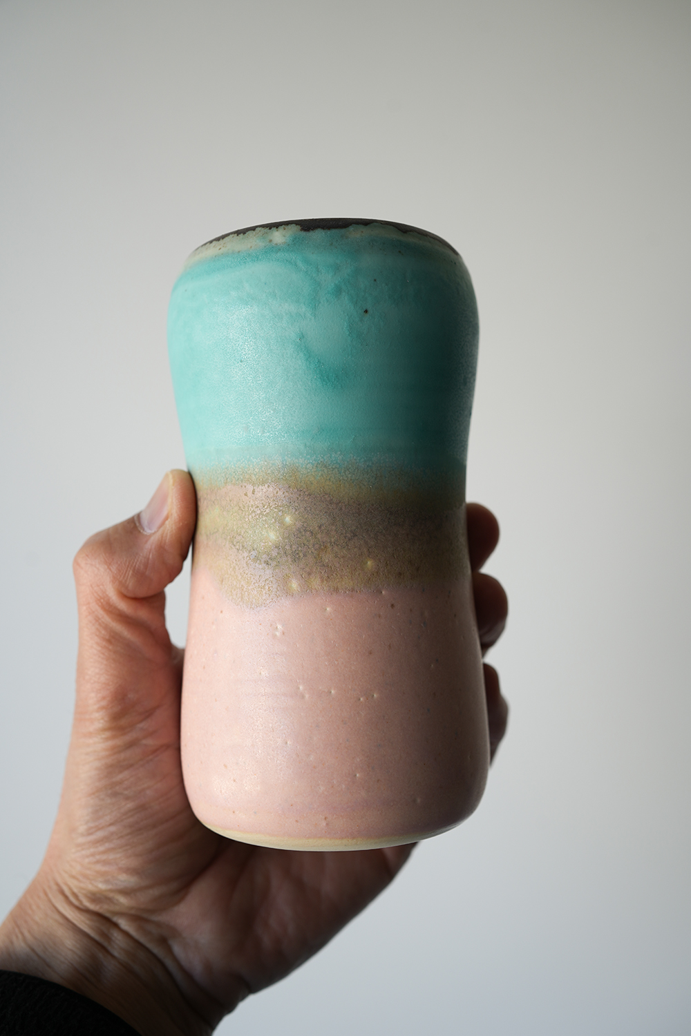 円柱花器 水桃色釉