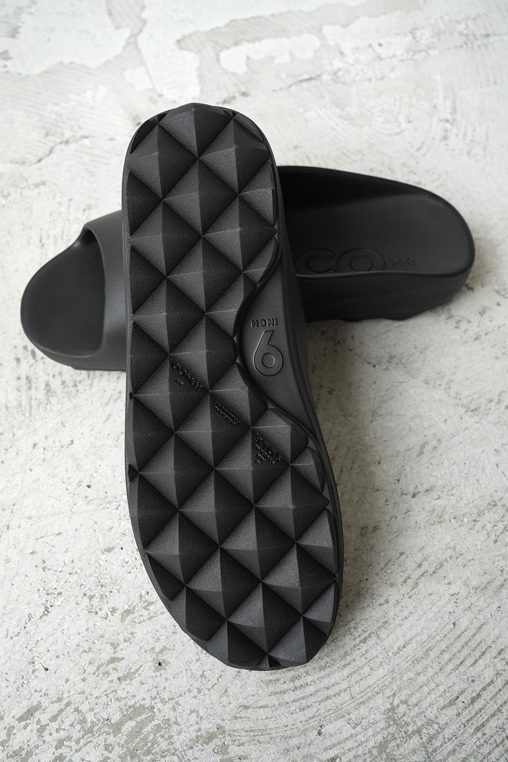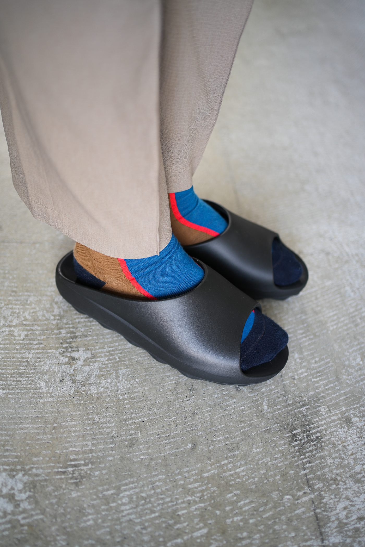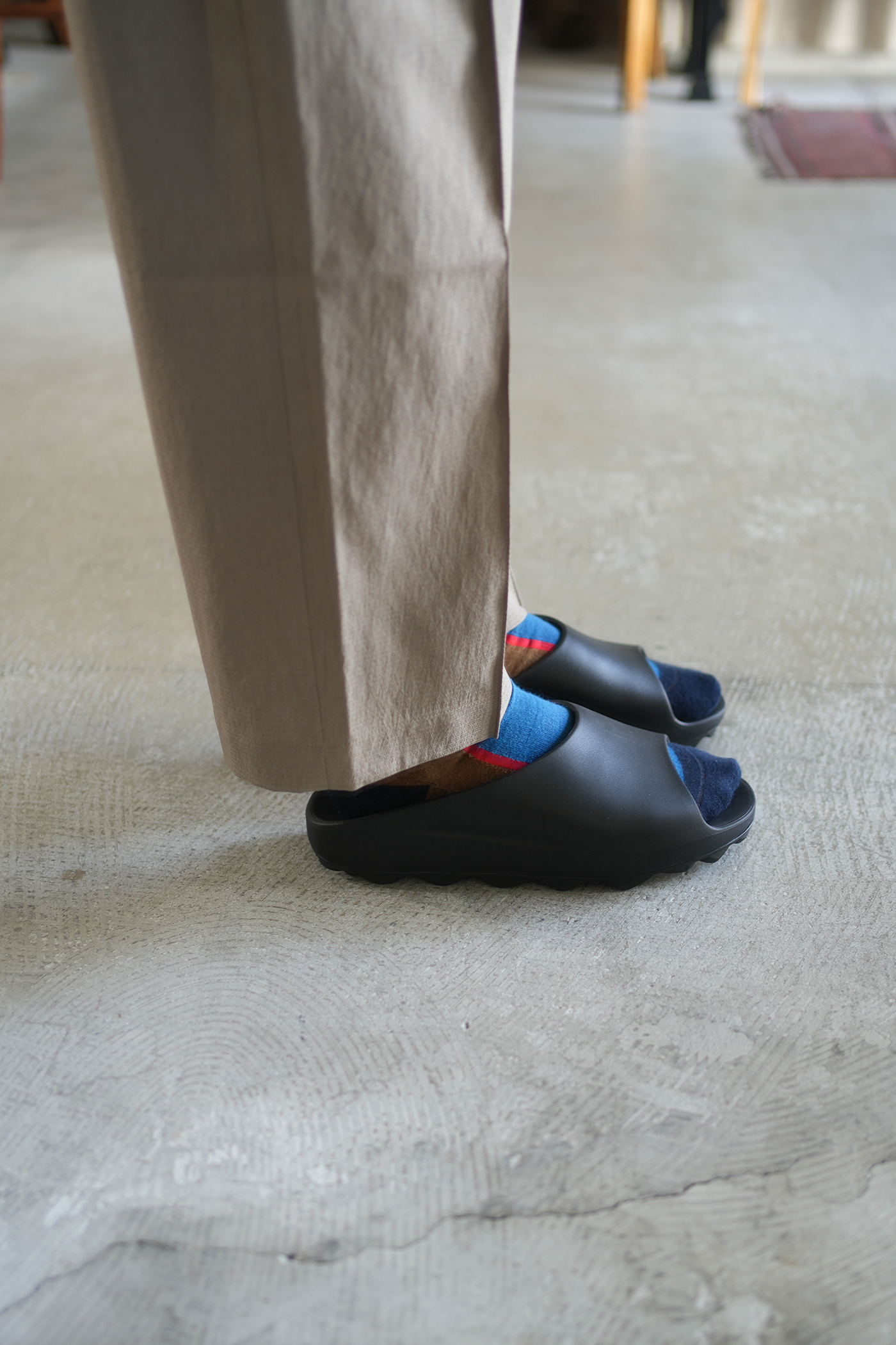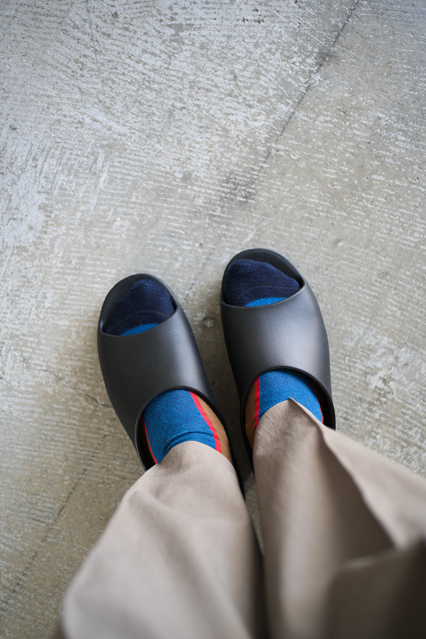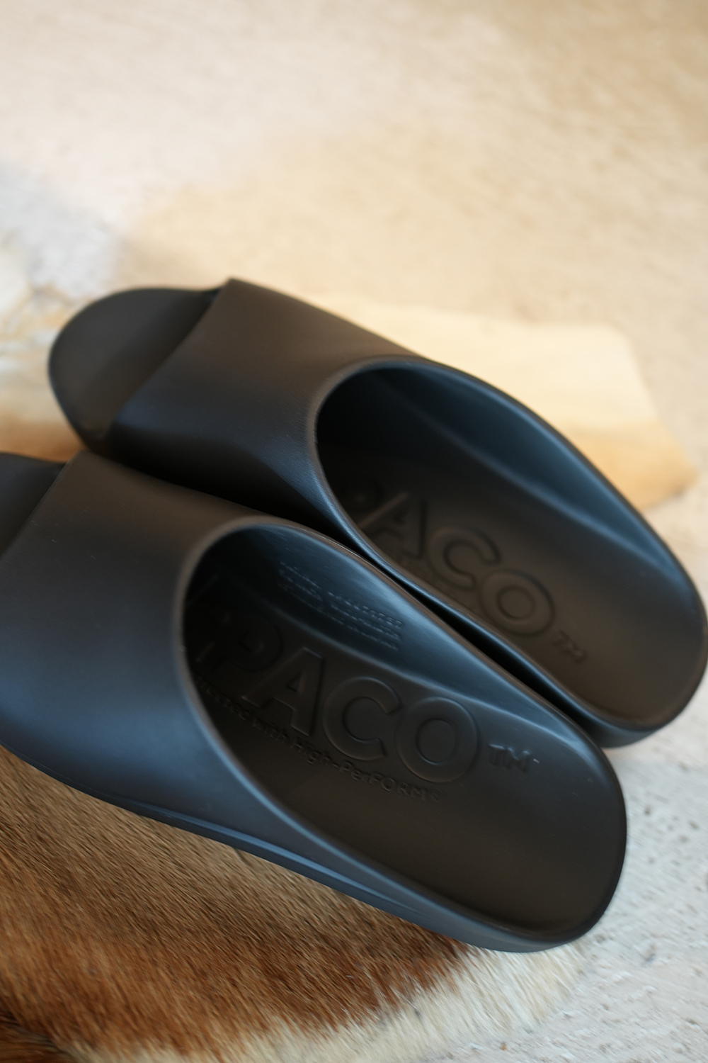 シューズデザイナー・竹ヶ原敏之介がディレクションするブランド「PPACO|パコ」。天然ゴムを配合し微発泡させた中反発性のHigh-PerFORMは軽量さと程よい弾力性を併せ持つ環境にも優しい新素材。軽量さと程よい弾力性を併せ持つもっちりとした履き心地の新素材で仕上げたシューズです。LUX-2は、通気性を促し足先に自由をもたらすオープントウタイプ、適度なクッション性が快適な履き心地を実現します。お手入れの際は、水で手洗い、タオルドライまたは陰干ししてください。温水ですと、変形の恐れがあるので、避けてください。素材の特性上、高温になる場所や直射日光の当たる屋外などでの使用・保管は変形の恐れがあるので、避けてください。